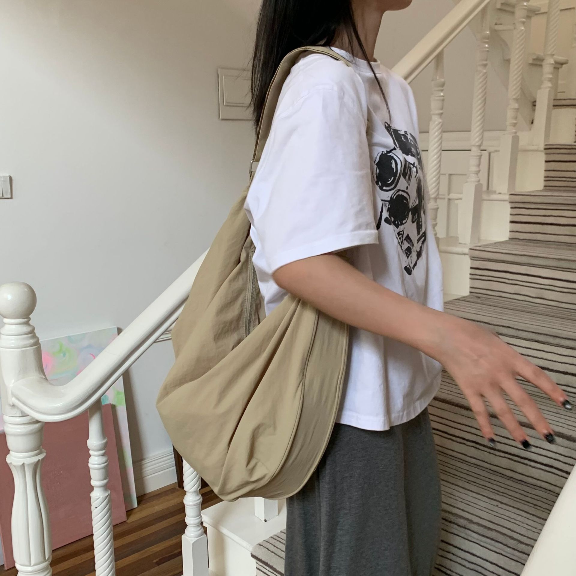 가방 대용량 여성용 어깨 크로스 바디 만두 백 나일론 가방 캐주얼 토트 백 학생 가방 패션 패션 가방 여성용스토어 가기