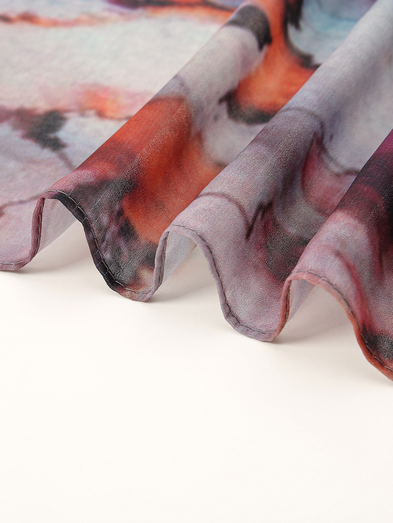 국경 간 뜨거운 판매 가을과 여름 대외 무역 새로운 잉크 그림 시리즈 헤드 스카프 고급 감각 수채화 디지털 인쇄 긴 스카프
