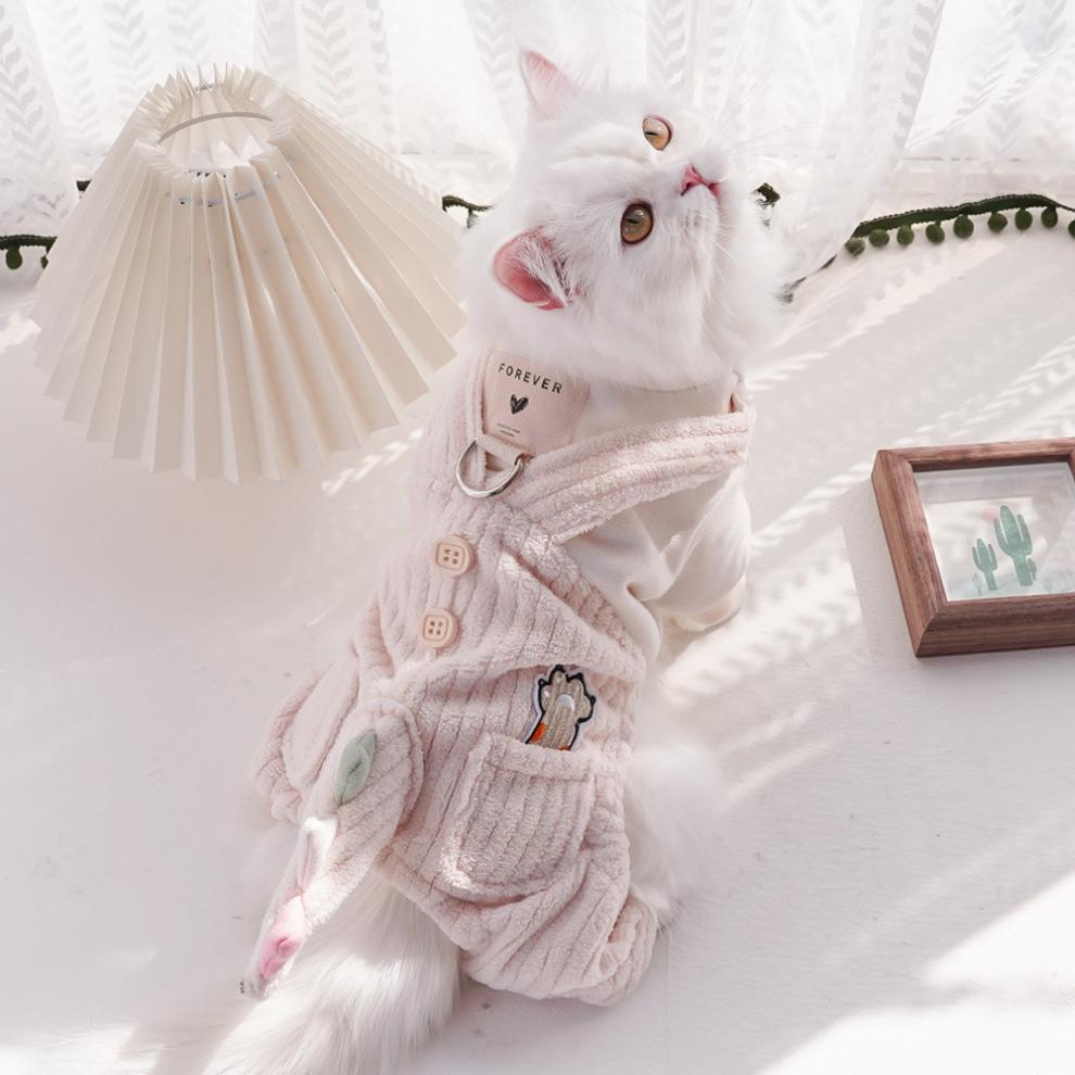 애완 동물 가을과 겨울 귀여운 변형 의류 견인 버클 따뜻한 네 다리 의류 테디 베어 개 고양이 의류 용품