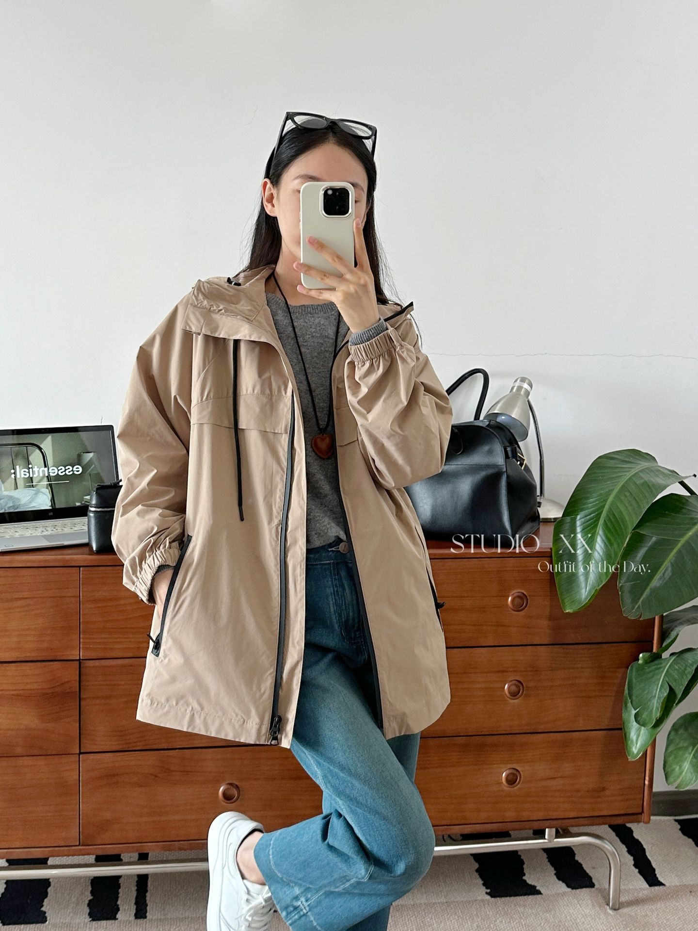 谁穿谁好看~B宝家束腰显瘦休闲宽松连帽夹克风衣,