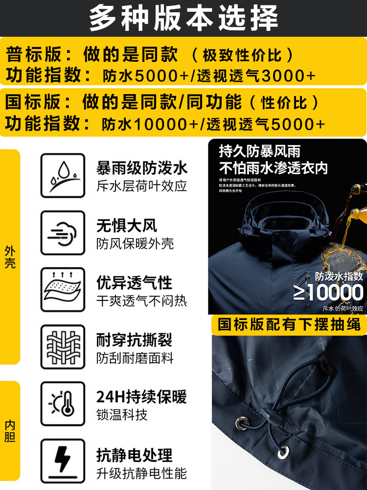 Tmall 여성용 재킷 2025 가을 겨울 새로운 3-in-one 방풍 및 방수 티베트 등산 재킷 남성용