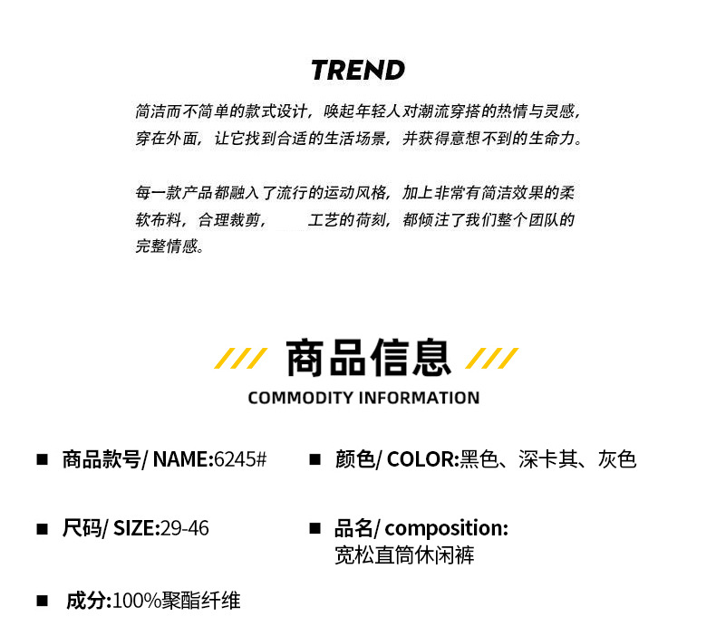 6245 | 플러스 사이즈 남자의 가을/겨울 새로운 느슨한 직선 바지 남자의 간단한 조커 플러스 사이즈 캐주얼 바지스토어 가기