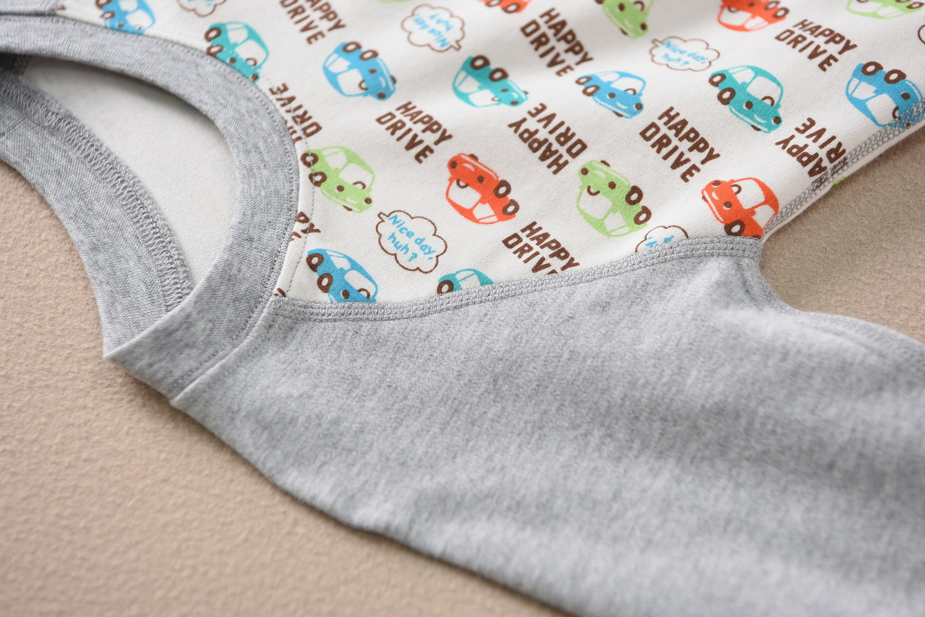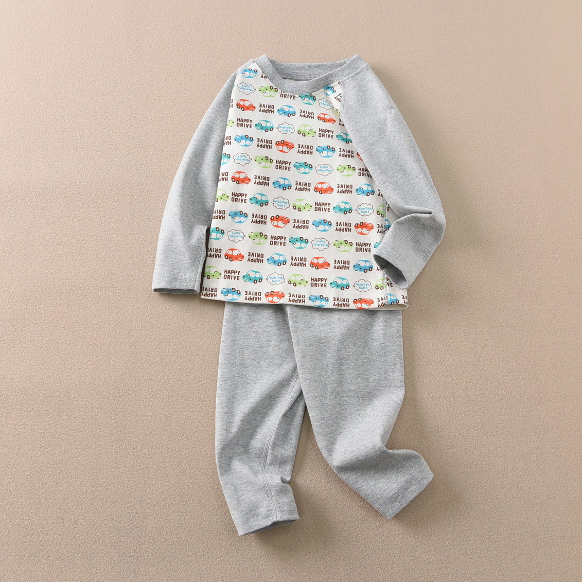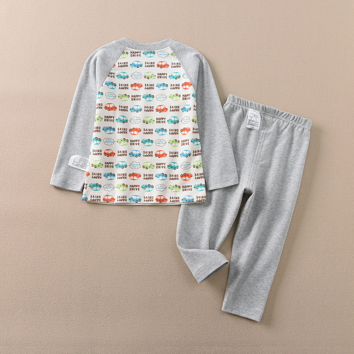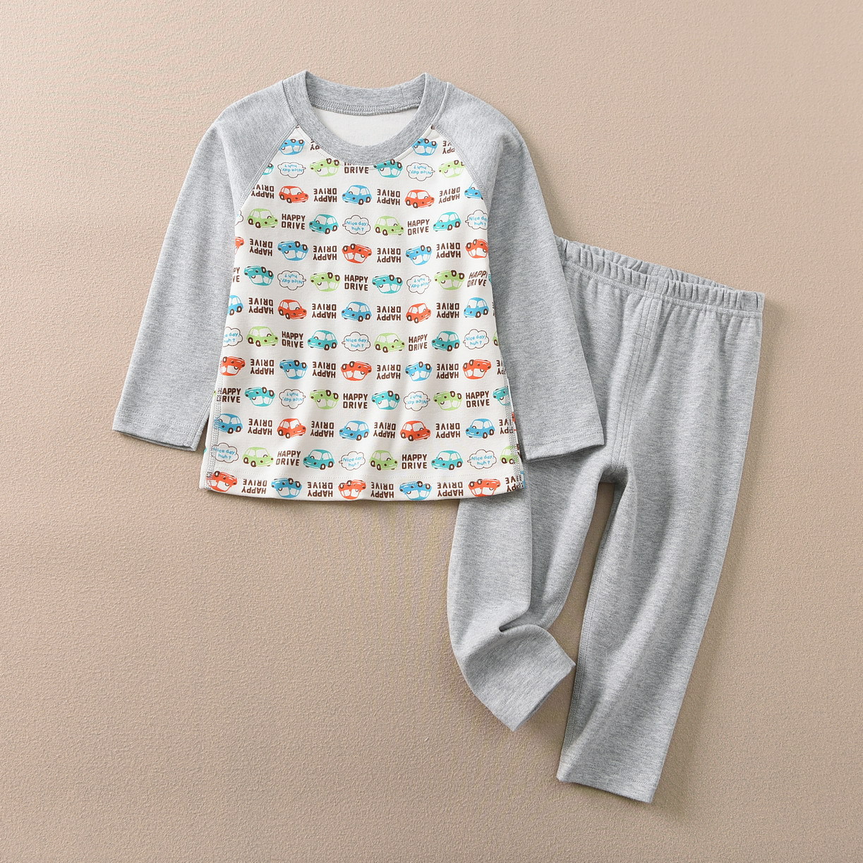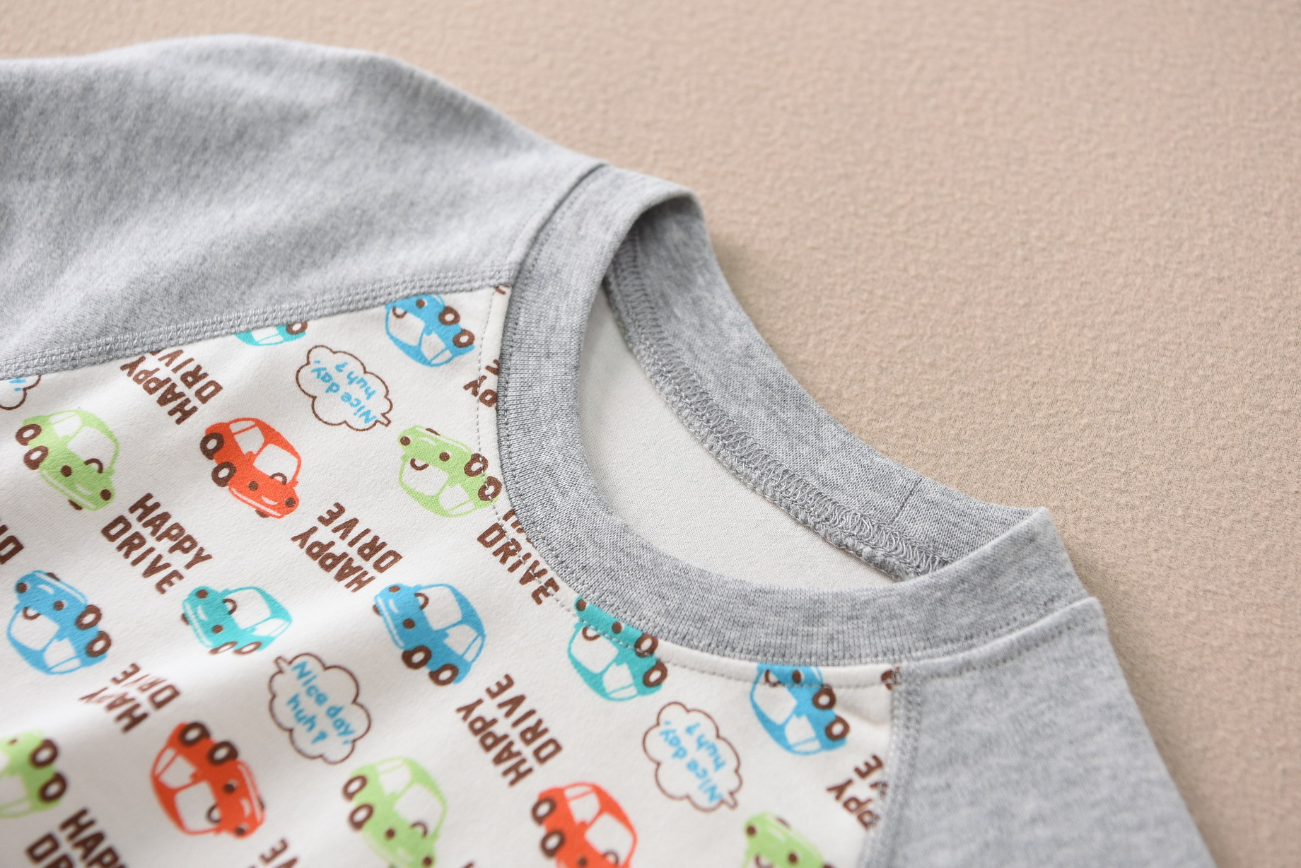 • TZ2072 브러시드 본리스 슈트 래글런 슬리브 문자 만화 자동차(1세트)