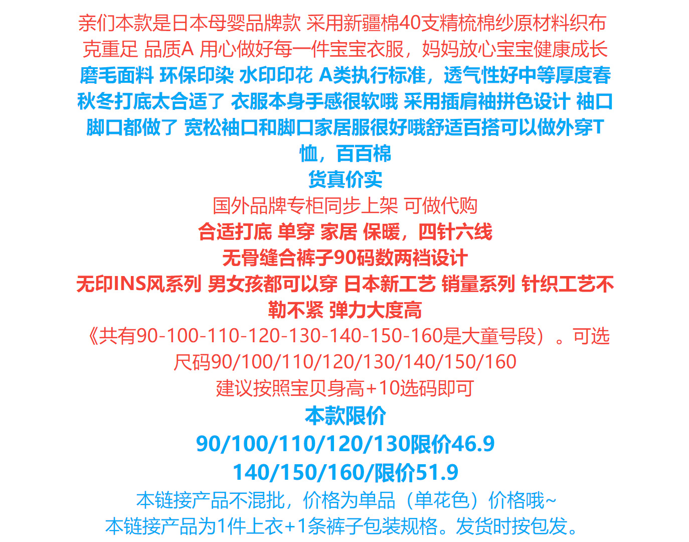 어린이 소년 티셔츠 세트 가을 옷 긴 바지 홈 의류 샌딩 통기성 라글란 긴 소매 수출 일본 국경스토어 가기