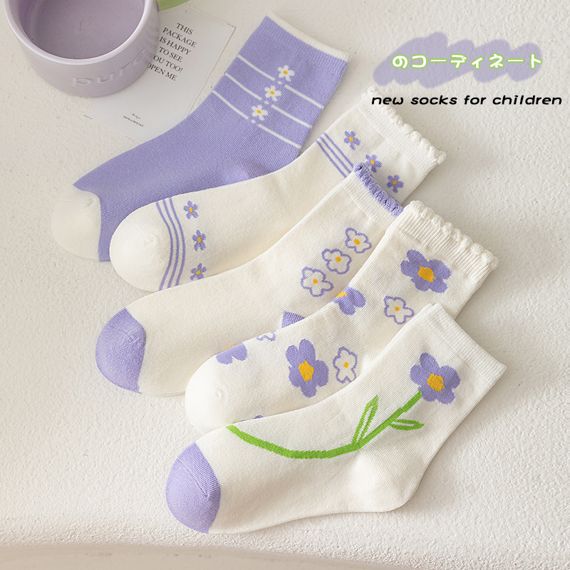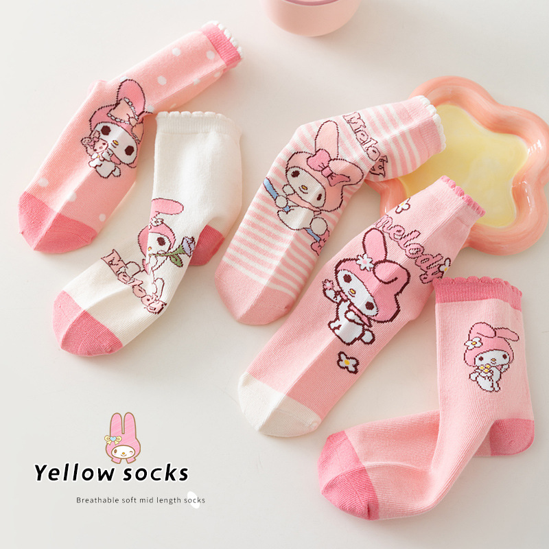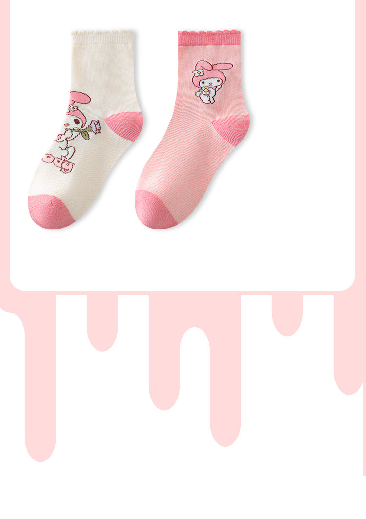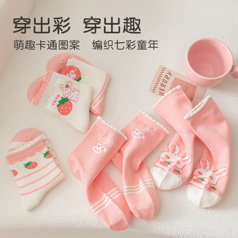 가을 겨울 신상 여아 양말 핑크색 만화 아기 양말 중간 길이 여아 양말 초등학생 면 양말