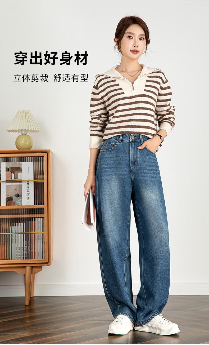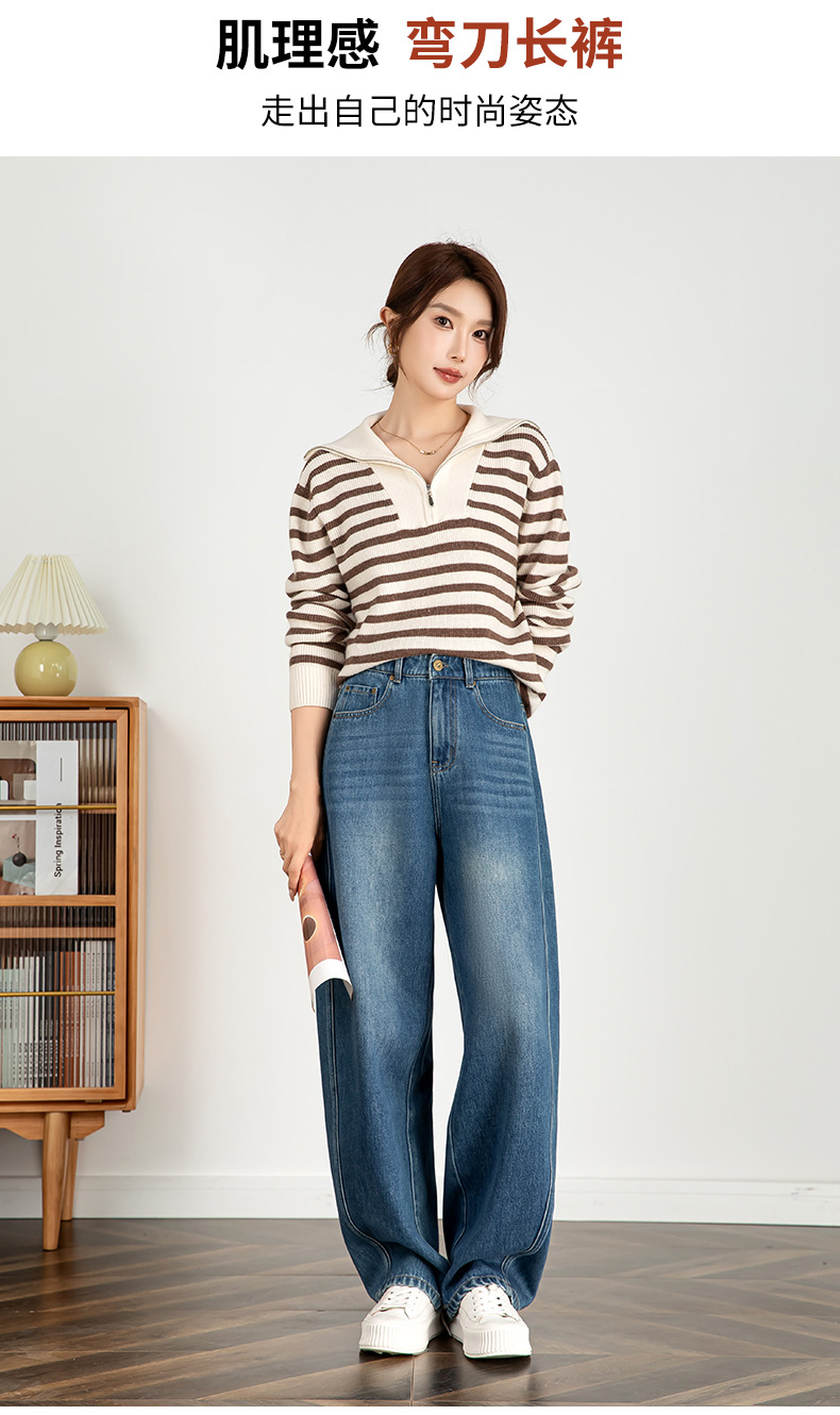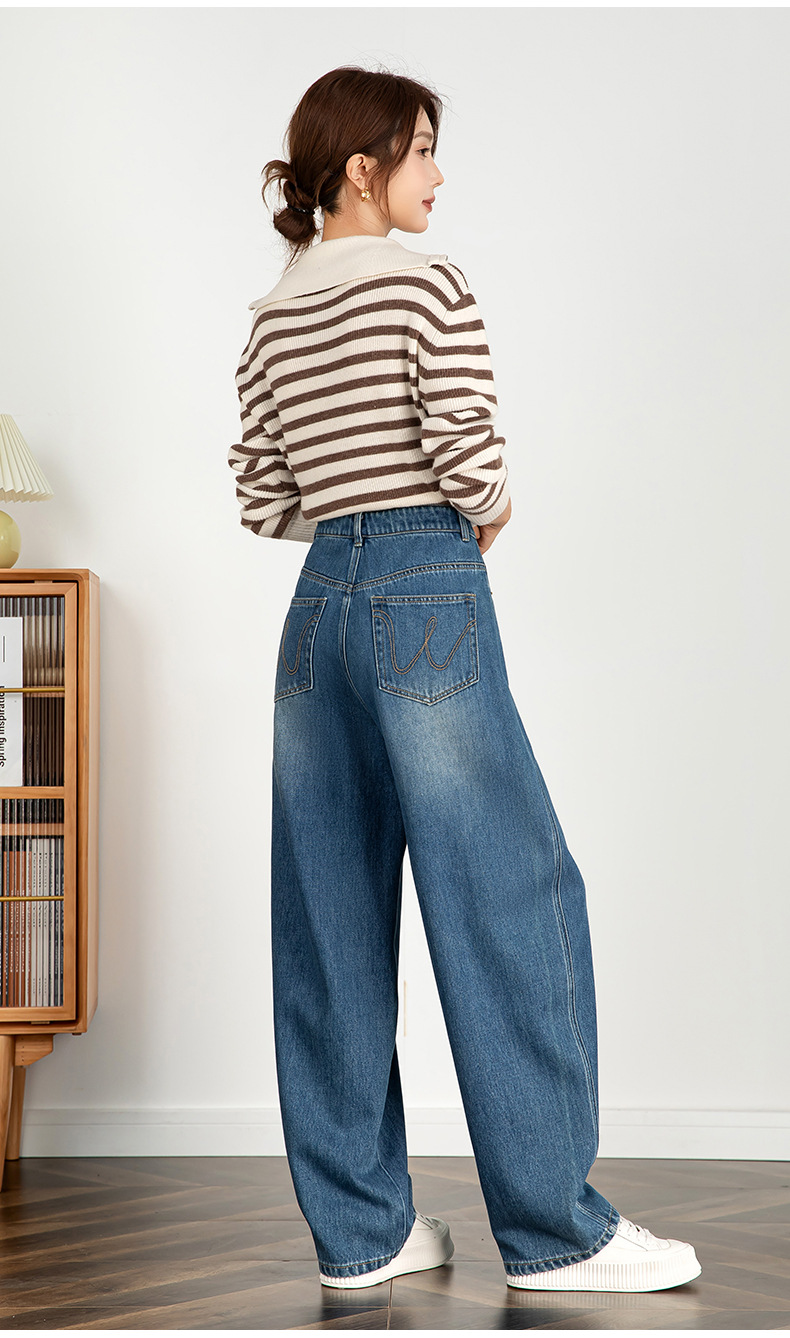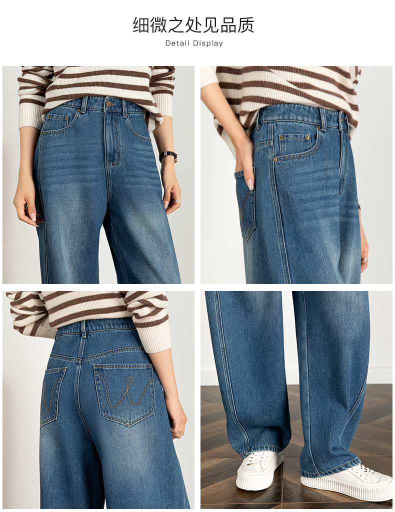 대형 의류 도매업체에서 자수된 2025년 가을 신상 데님 팬츠, 슬림하고 패셔너블한 헐렁한 바지, 커브드 바지, 바닥까지 닿는 바지 8152스토어 가기