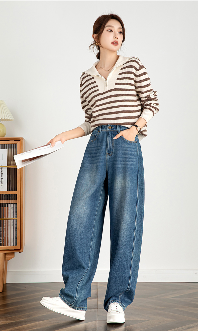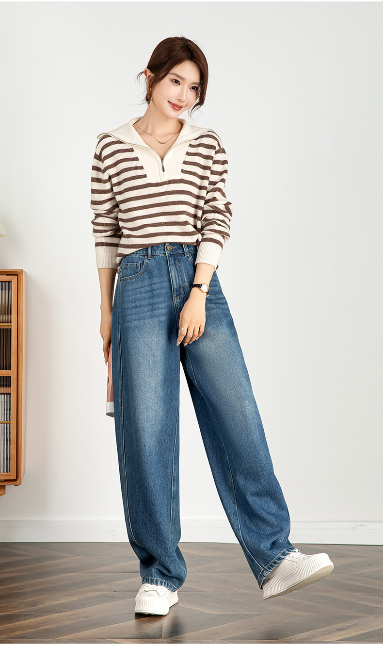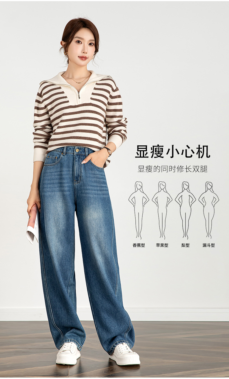 대형 의류 도매업체에서 자수된 2025년 가을 신상 데님 팬츠, 슬림하고 패셔너블한 헐렁한 바지, 커브드 바지, 바닥까지 닿는 바지 8152스토어 가기