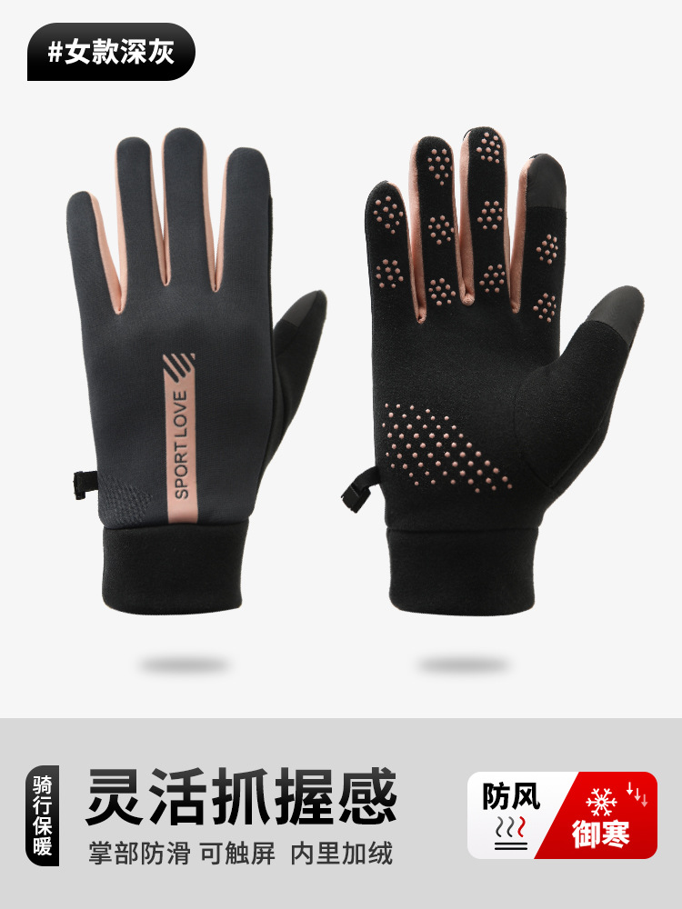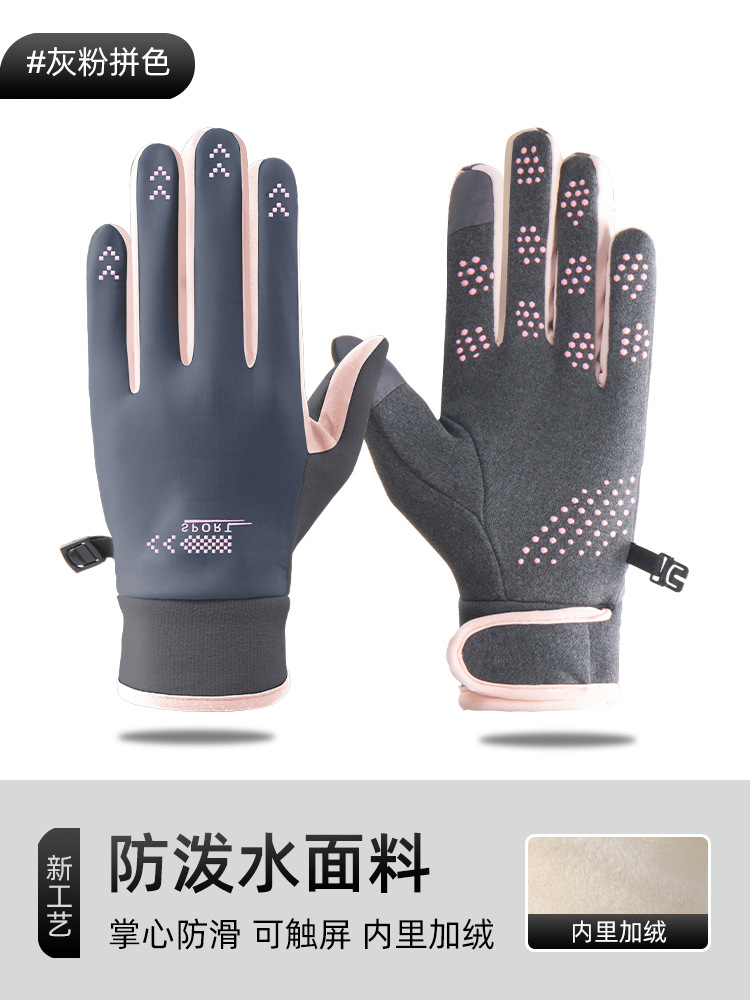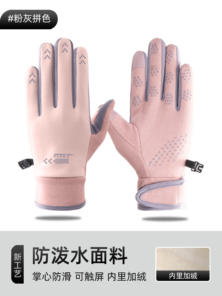 따뜻하고 벨벳 두꺼운 여성 야외 스포츠 운전 전기 자동차 방한 미끄럼 방지 터치 스크린 방수 겨울 사이클링 장갑