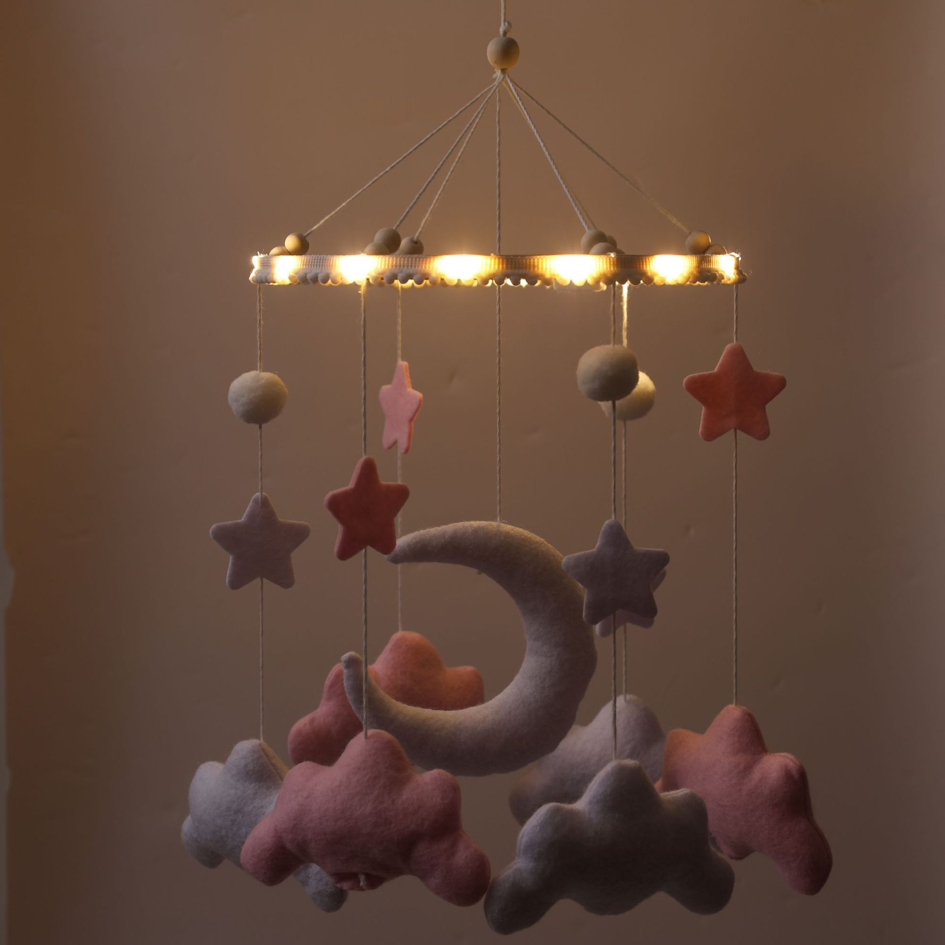 • 핑크 구름 조명 + 플라스틱 스탠드 + 오르골