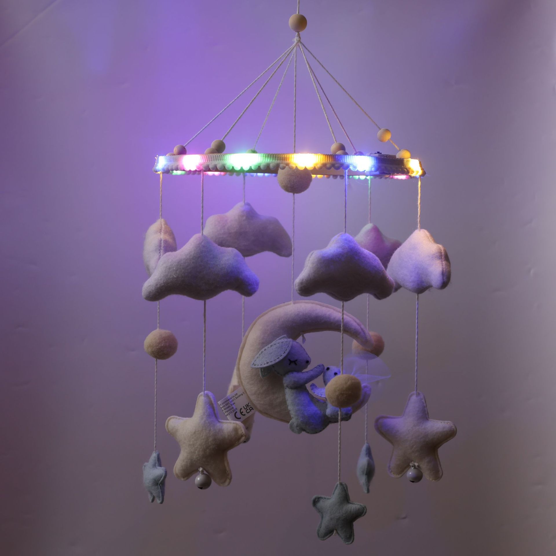 • 컬러 조명 + 플라스틱 스탠드 + 뮤직 박스가 포함된 구름 토끼