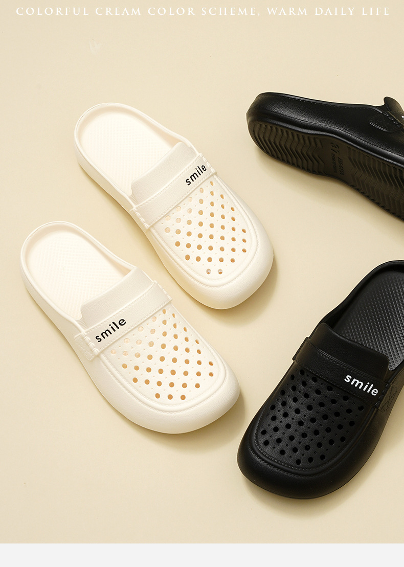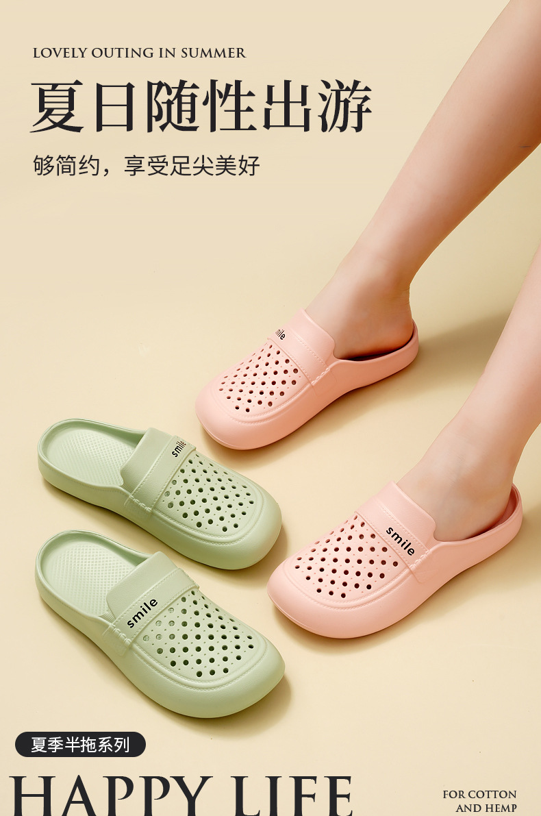여름 샌들과 슬리퍼 EVA 여성용 Baotou 레이스 업 아우터 할로우 비치 슈즈 홀 슈즈 스위트 플랫 슬리퍼