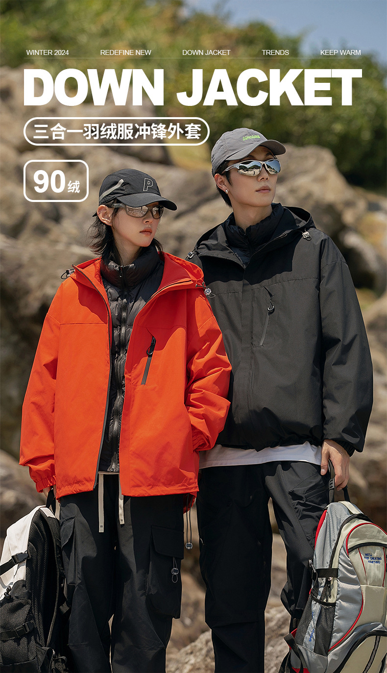 IZEXX 패션 브랜드 가을과 겨울 3 대 1 충전 남성 조류 홈 분리 가능한 극지 양털 방수 커플 재킷스토어 가기