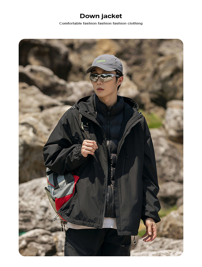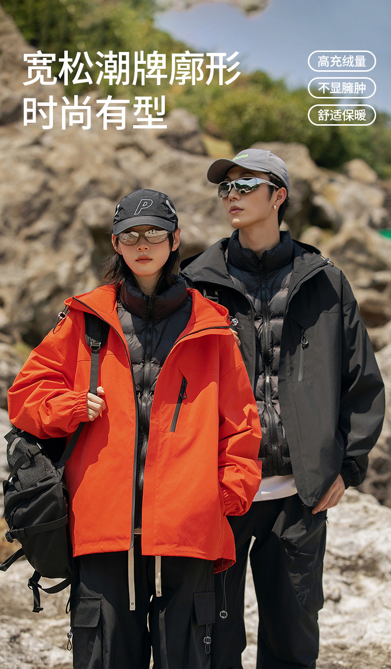 IZEXX 패션 브랜드 가을과 겨울 3 대 1 충전 남성 조류 홈 분리 가능한 극지 양털 방수 커플 재킷