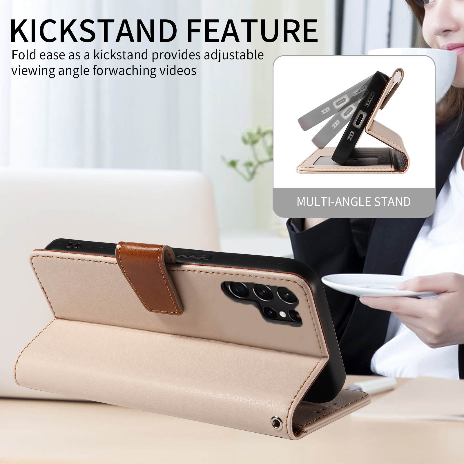 삼성 A25 일본판 휴대폰 가죽 케이스, 항자성 천 S24 휴대폰 케이스, S23 플립형 자석 휴대폰 보호 케이스에 적합스토어 가기