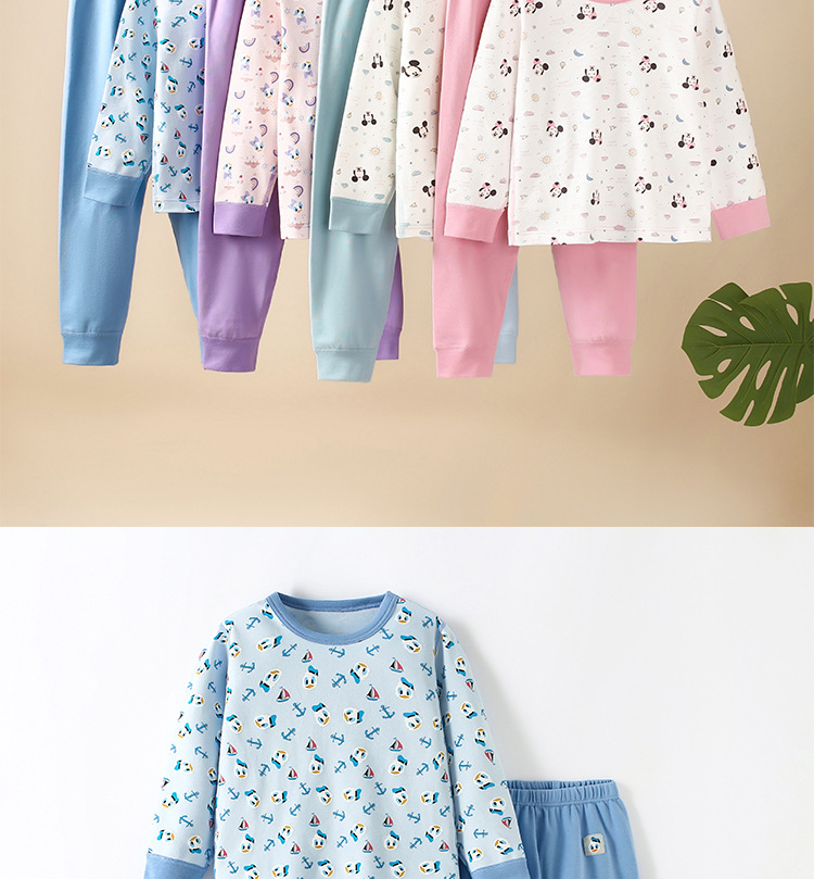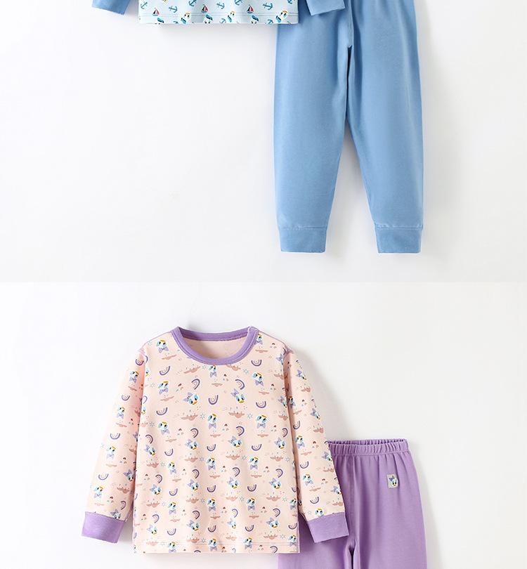 DSN 어린이 홈 의류 세트 봄과 가을 얇은 소년과 소녀 가을 옷과 바지 2 피스 면화 기본 옷