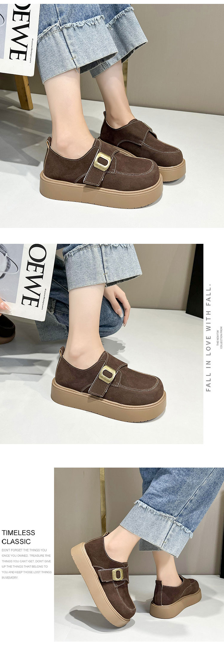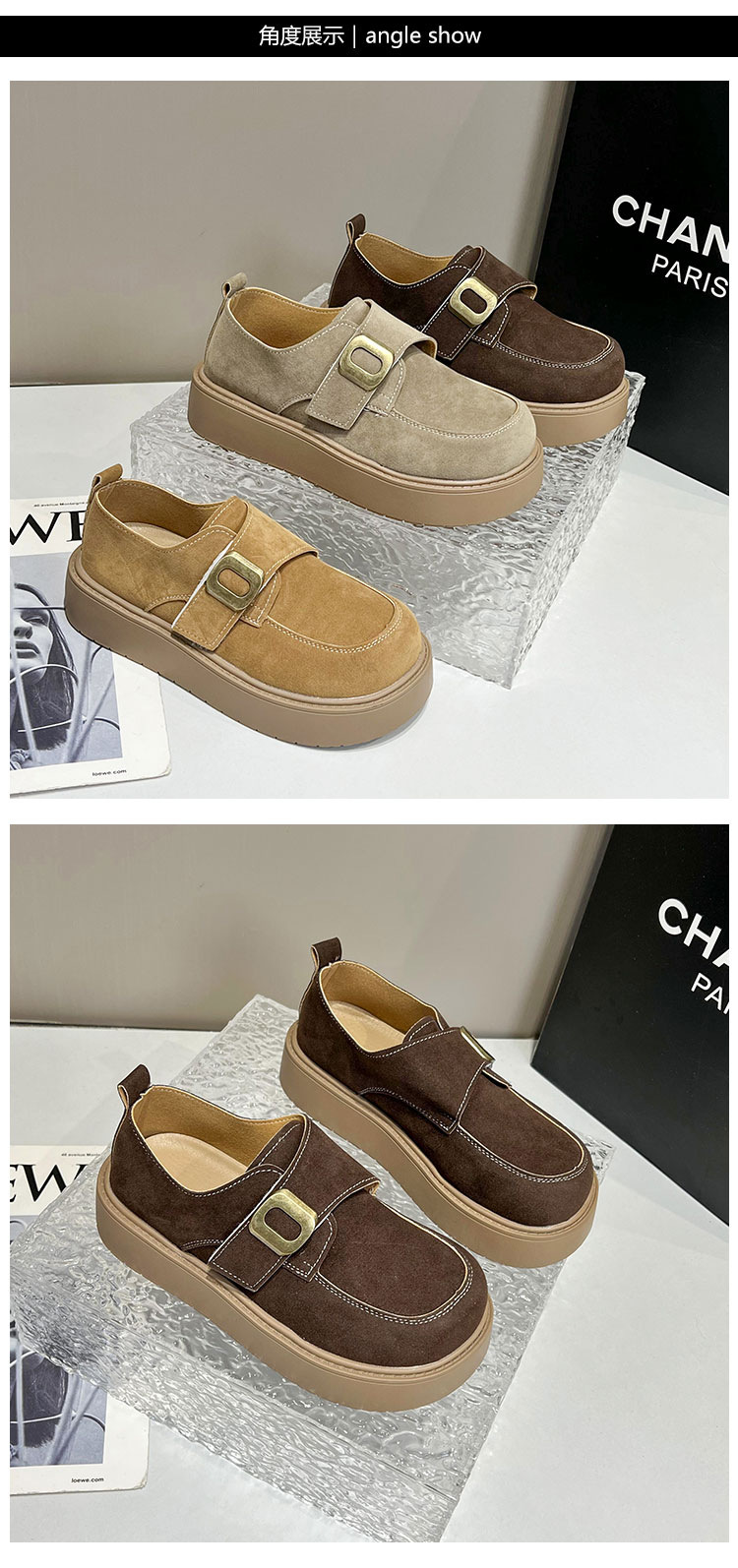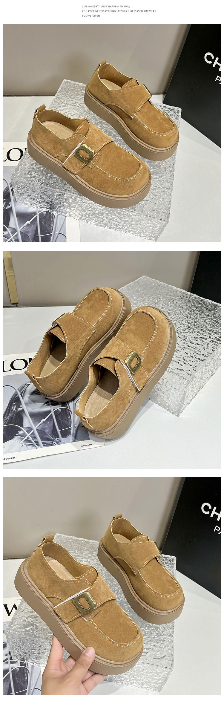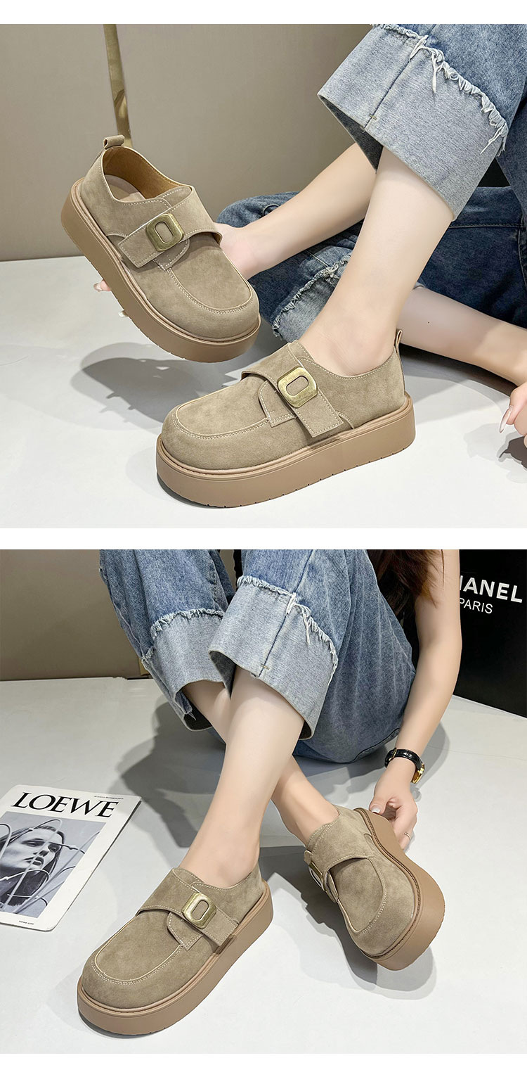 프로스트 가죽 플랫폼 버칸 신발 여성의 2024 봄 새로운 레트로 슬립 온 벨트 버클 캐주얼 편안한 로퍼스토어 가기