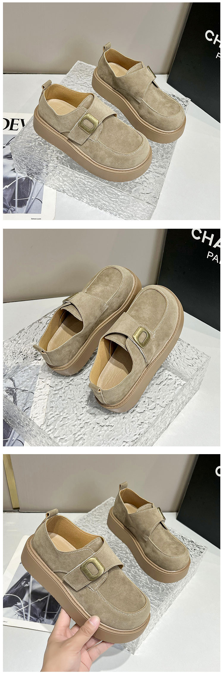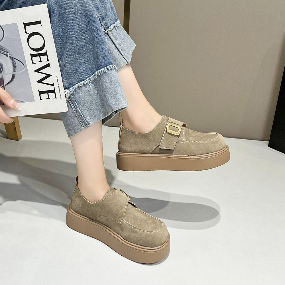 프로스트 가죽 플랫폼 버칸 신발 여성의 2024 봄 새로운 레트로 슬립 온 벨트 버클 캐주얼 편안한 로퍼