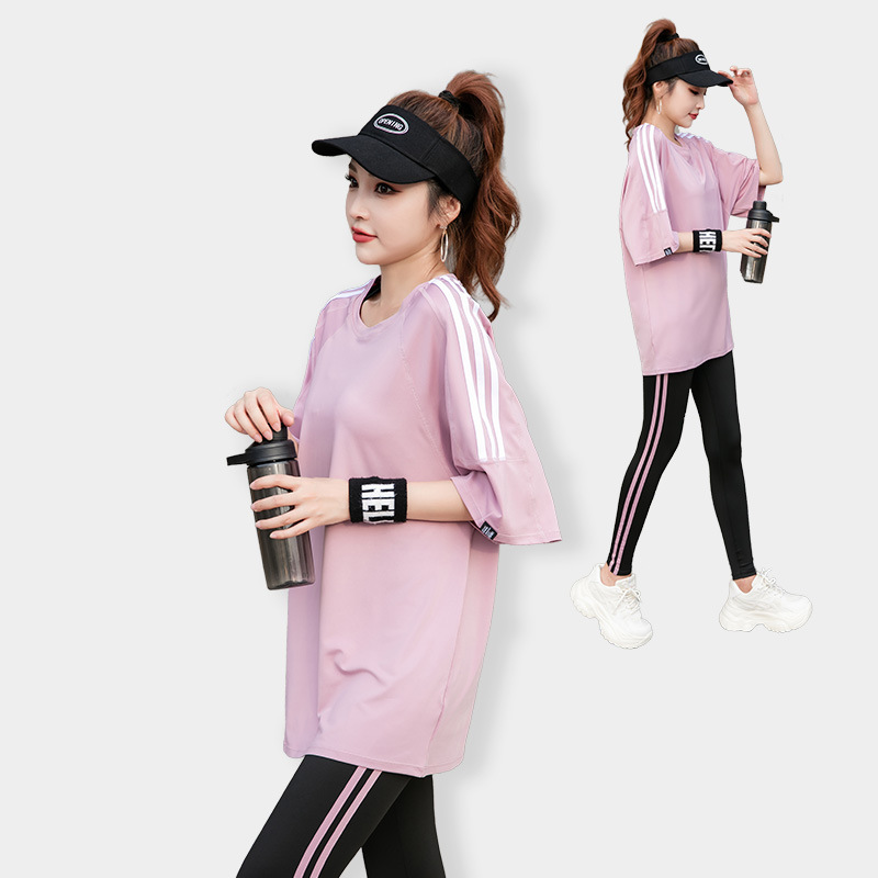 스포츠 요가 반팔 티셔츠 달리기 아침 달리기 스포츠 2024 새로운 세트 느슨한 슬림 적합스토어 가기