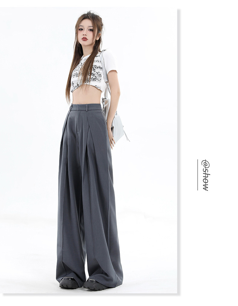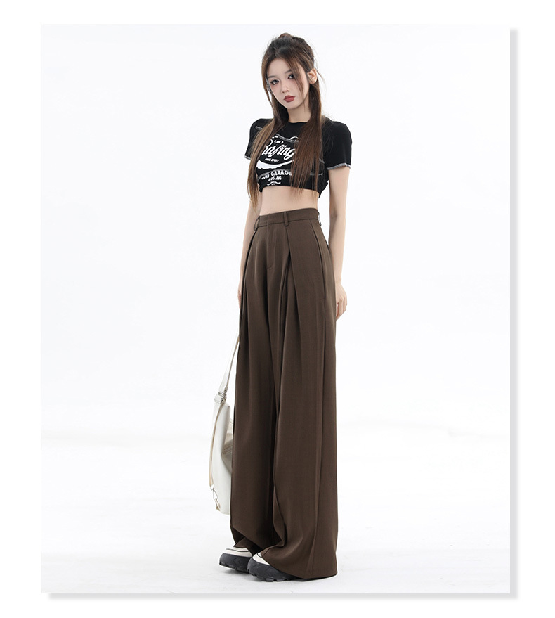 여자 다크 브라운 2024 봄 높은 허리 느슨한 슬리밍 캐주얼 바지스토어 가기