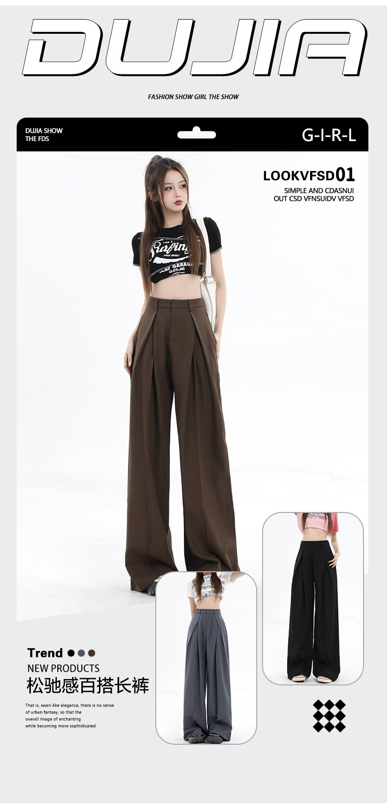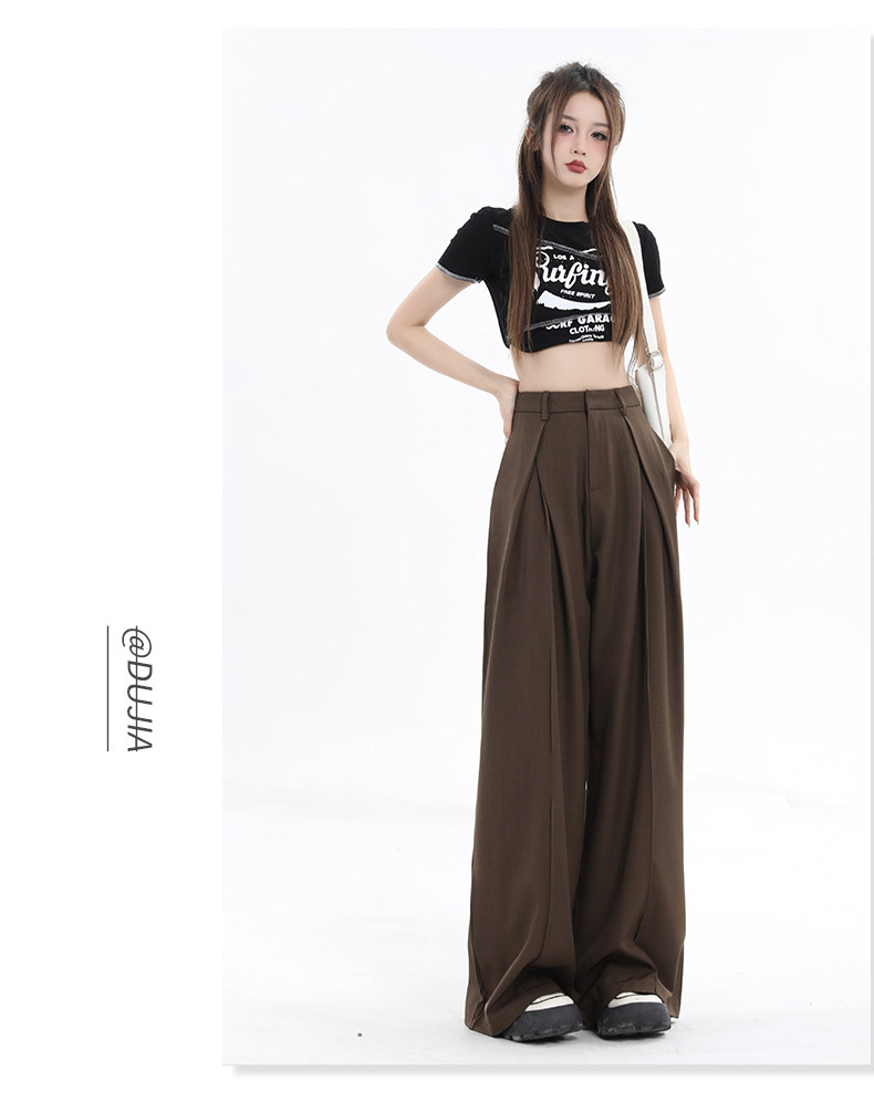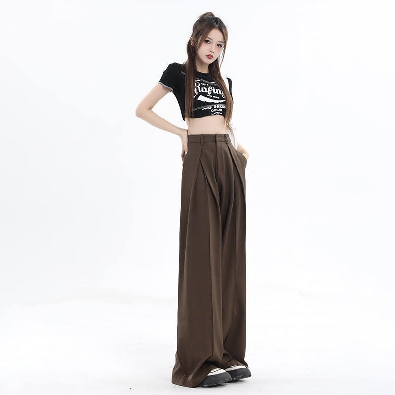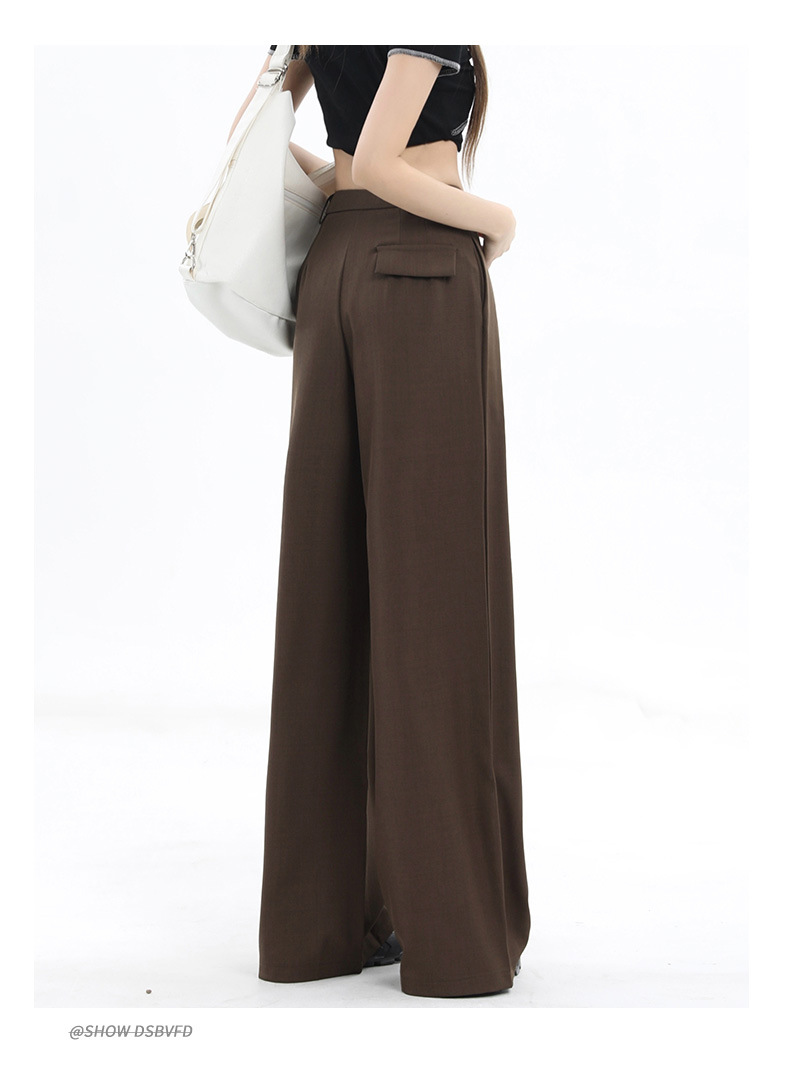 여자 다크 브라운 2024 봄 높은 허리 느슨한 슬리밍 캐주얼 바지