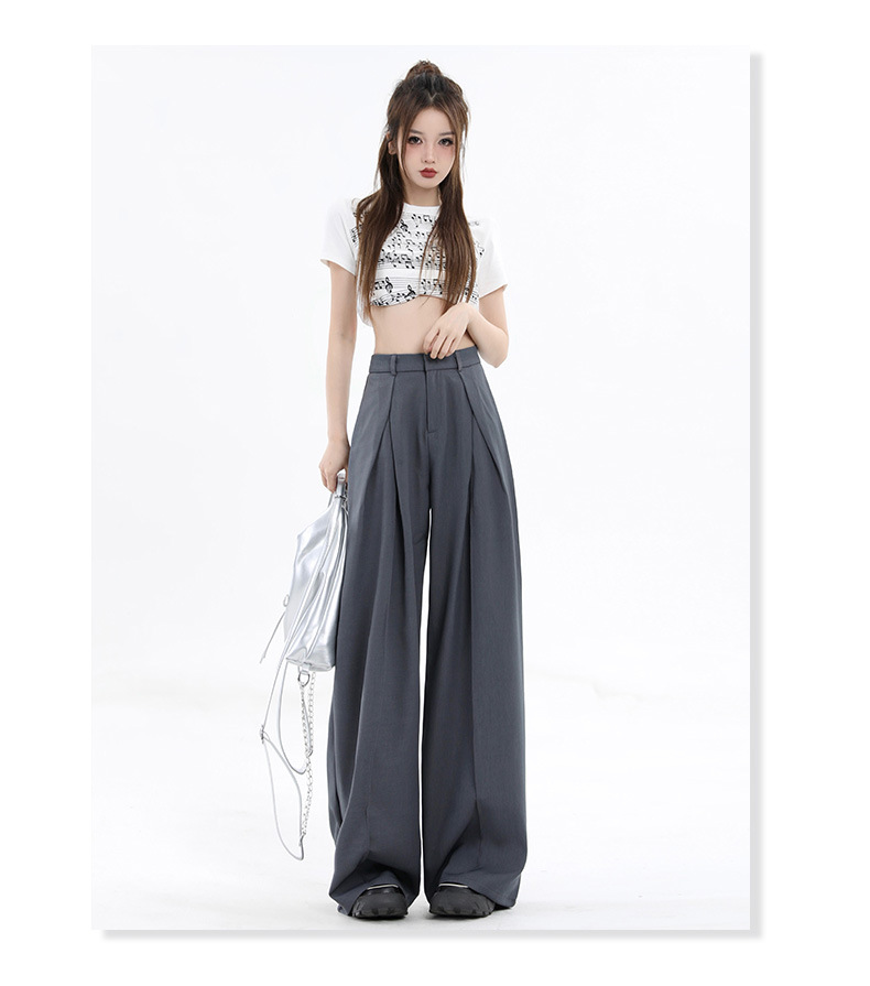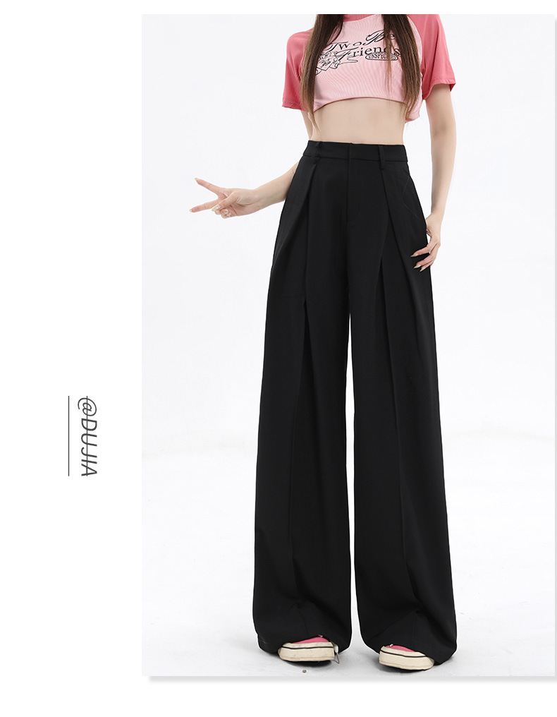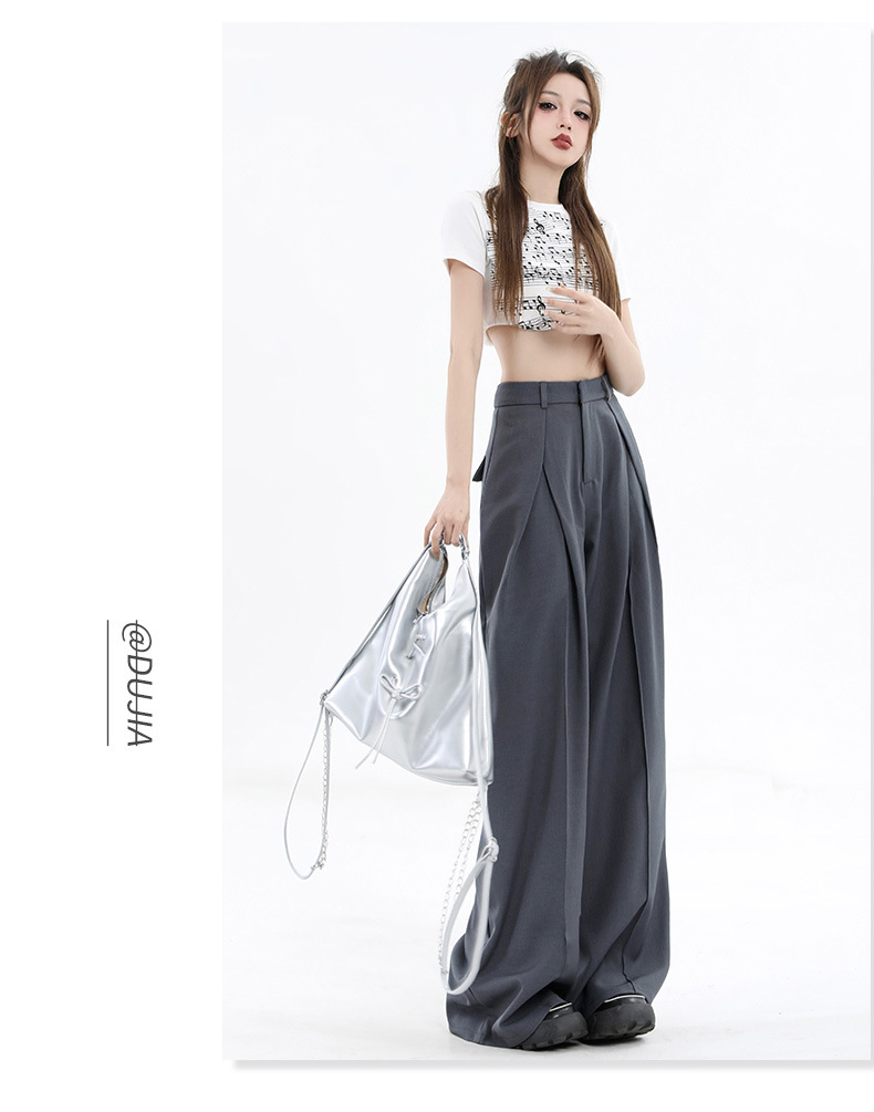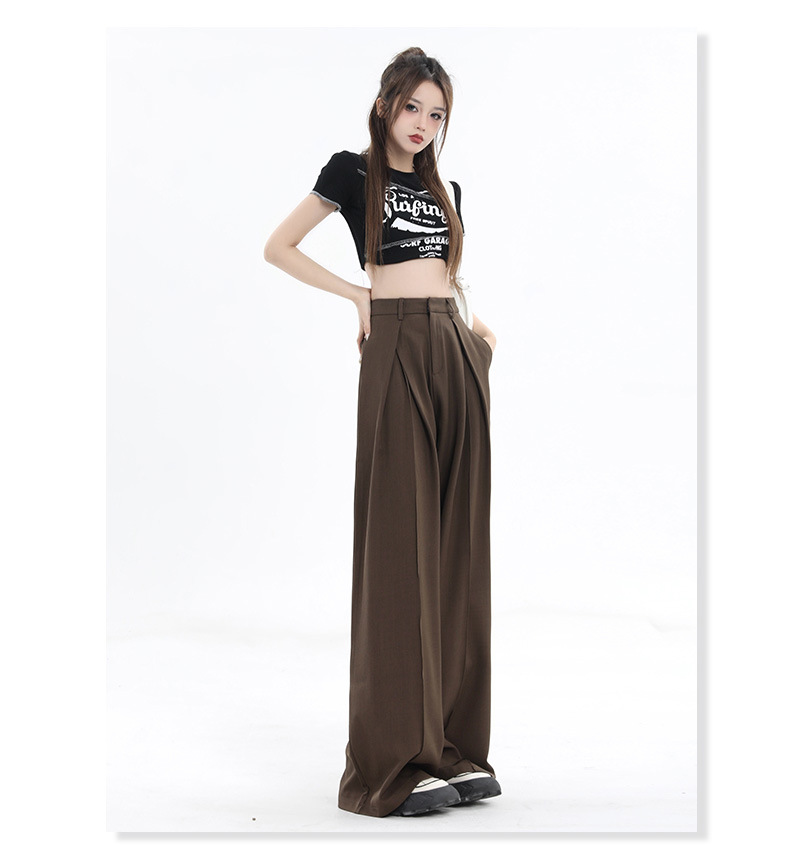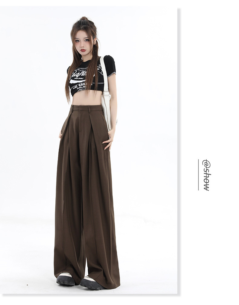 여자 다크 브라운 2024 봄 높은 허리 느슨한 슬리밍 캐주얼 바지