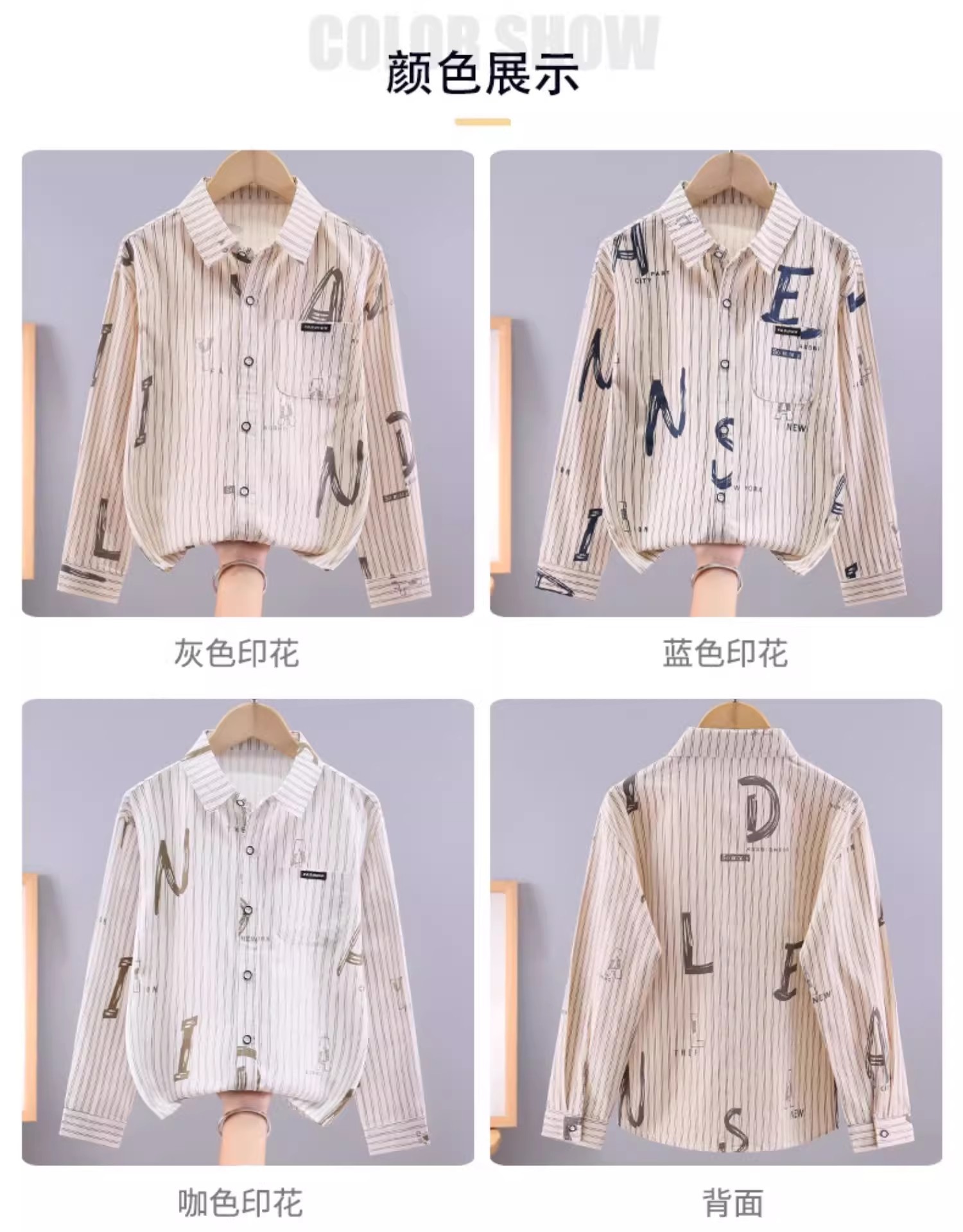 소년 셔츠 줄무늬 긴 소매 봄 및 가을 어린이 순면 최고 중대형 어린이 의류 소년 초가을 셔츠 재킷