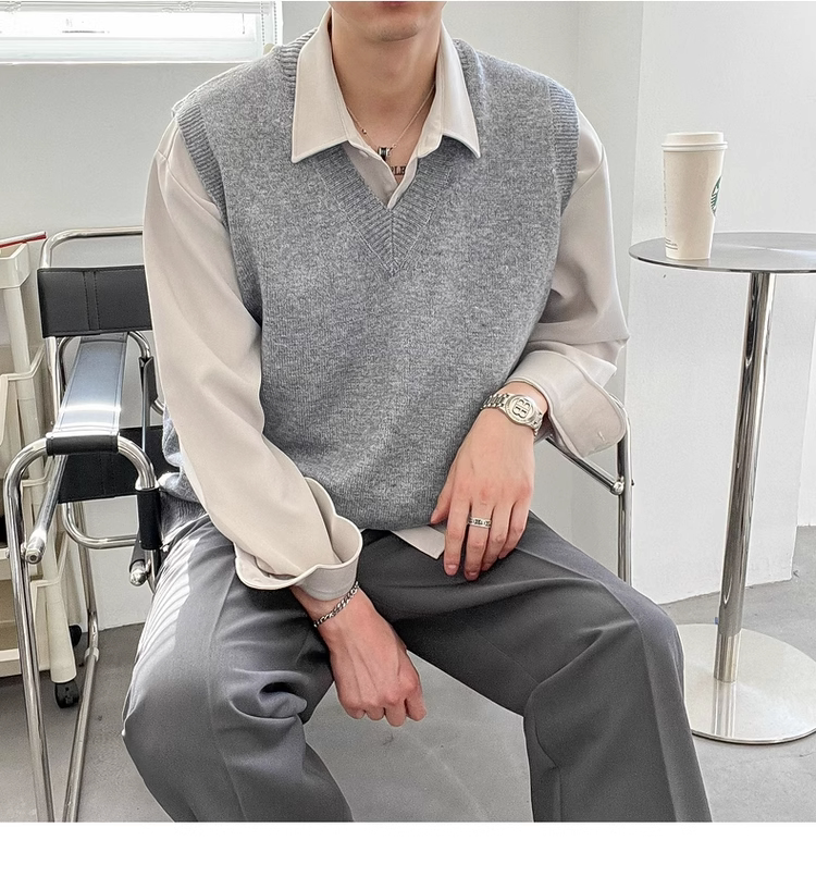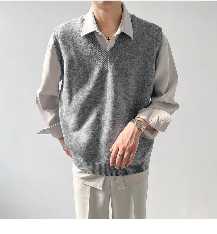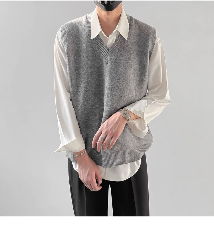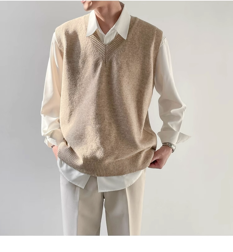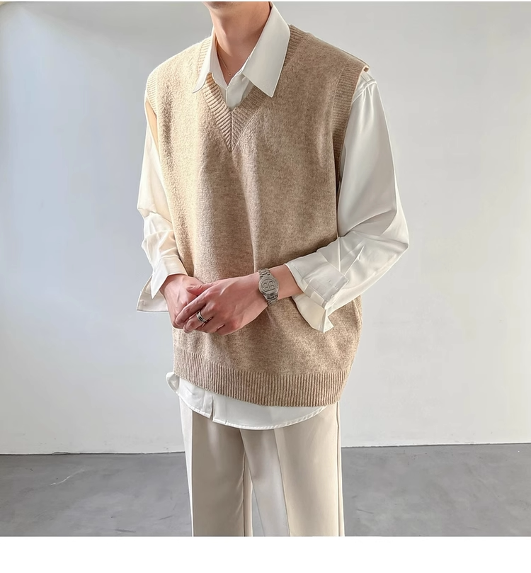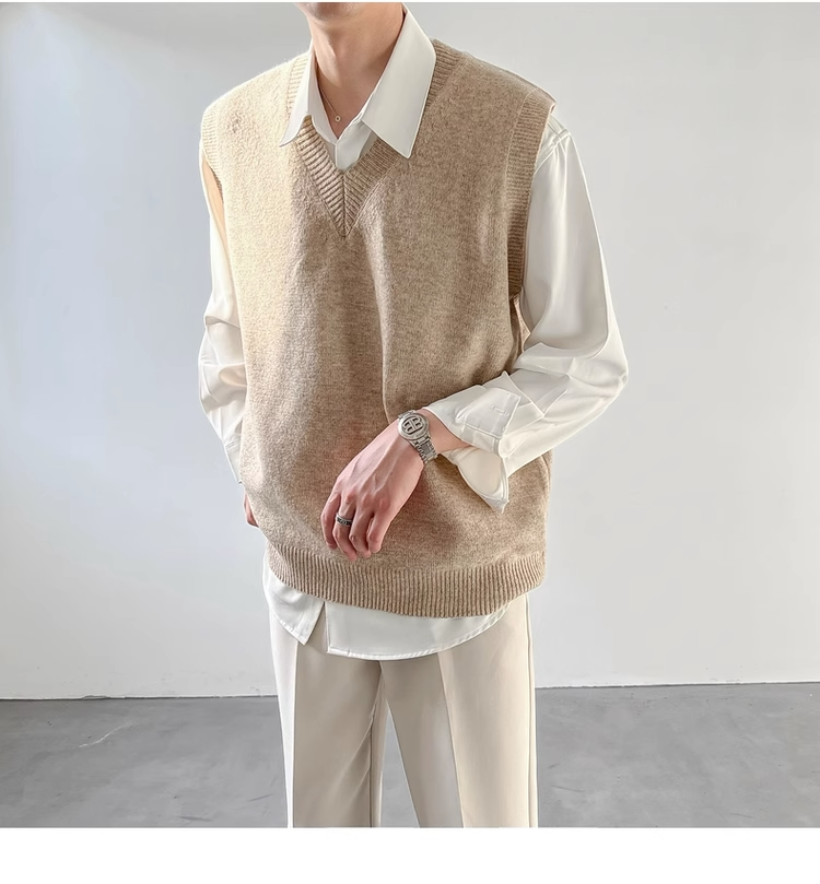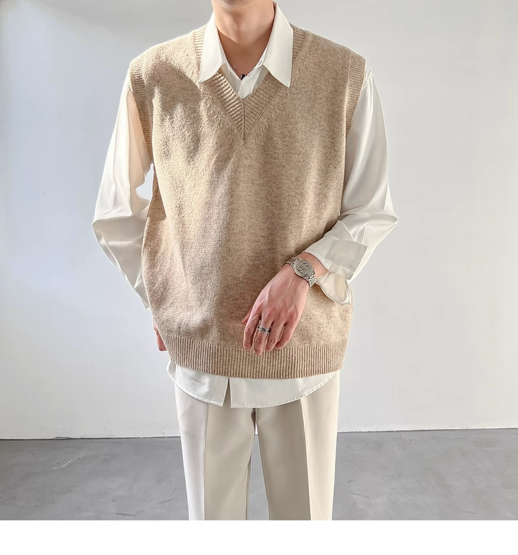 봄과 가을 한국식 느슨한베이스 스웨터 민소매 조끼 남성용 트렌디 한 풀오버 V 넥 스웨터 조끼 재킷스토어 가기