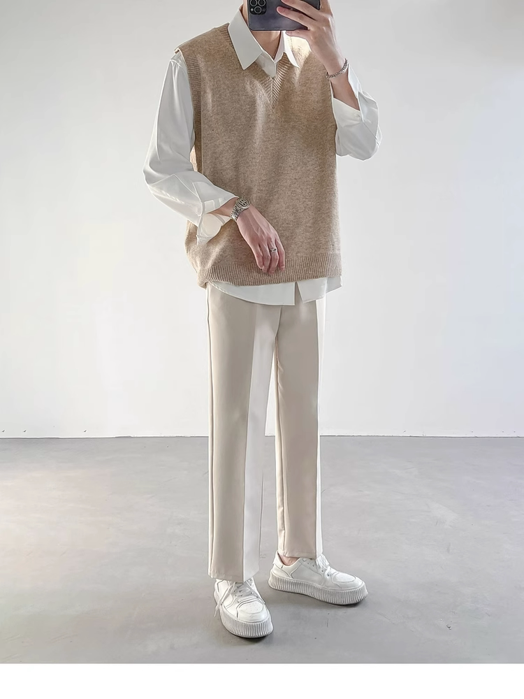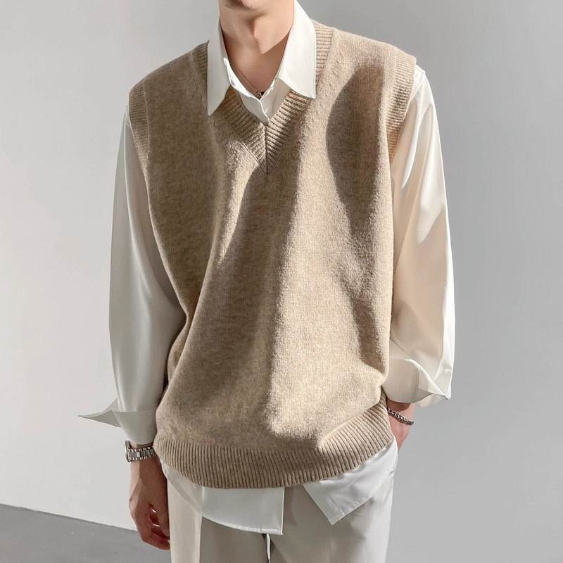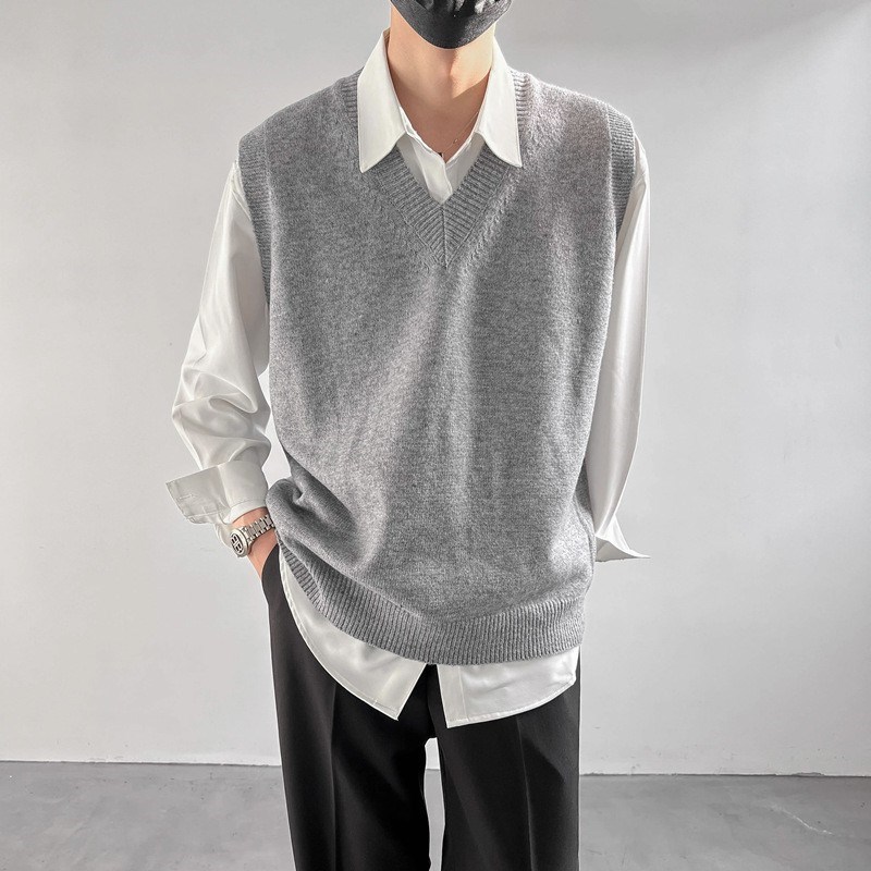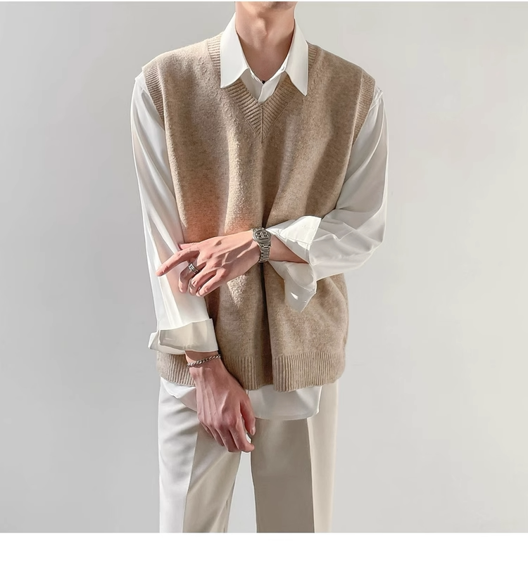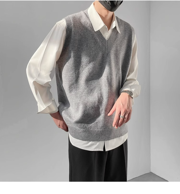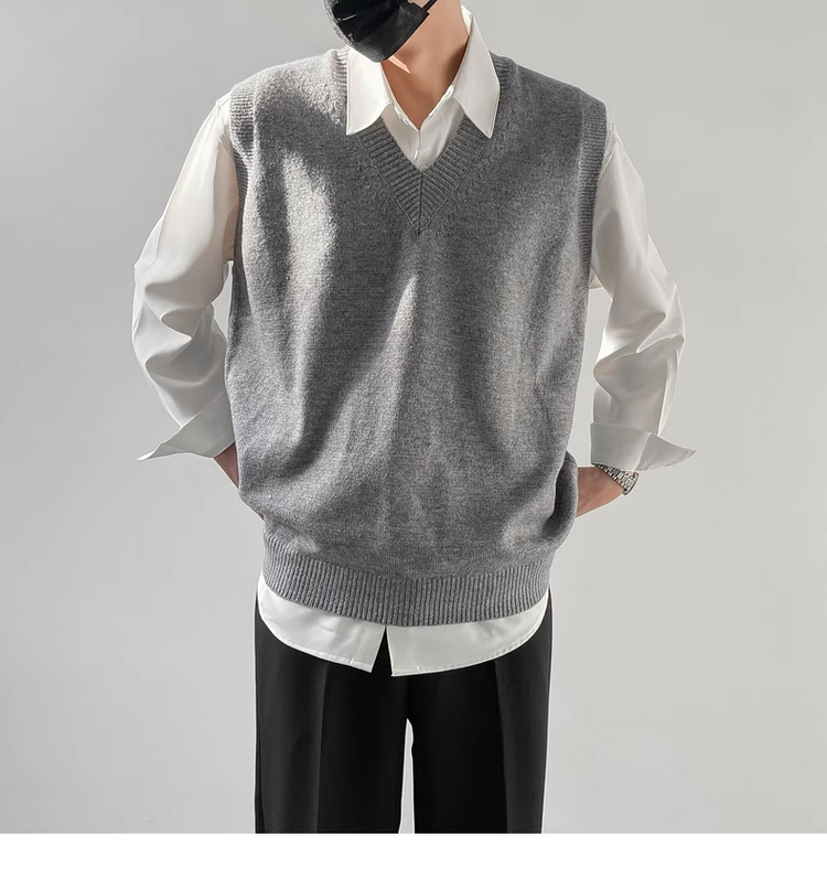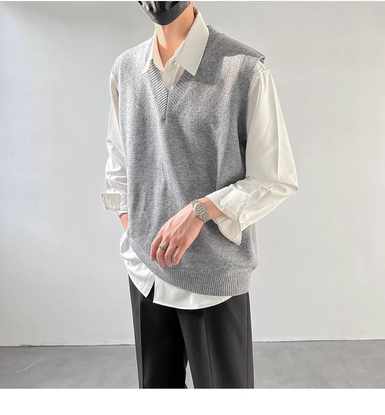 봄과 가을 한국식 느슨한베이스 스웨터 민소매 조끼 남성용 트렌디 한 풀오버 V 넥 스웨터 조끼 재킷스토어 가기
