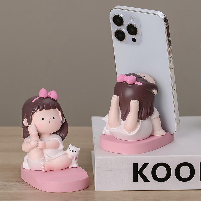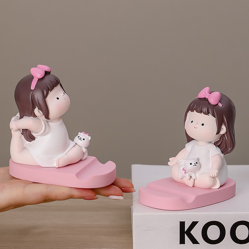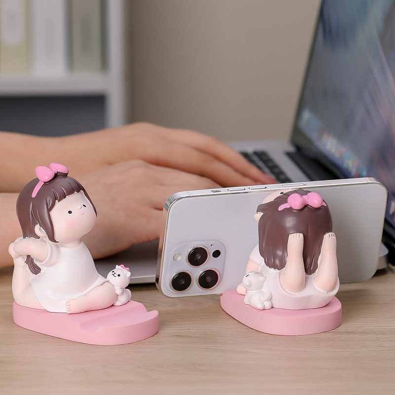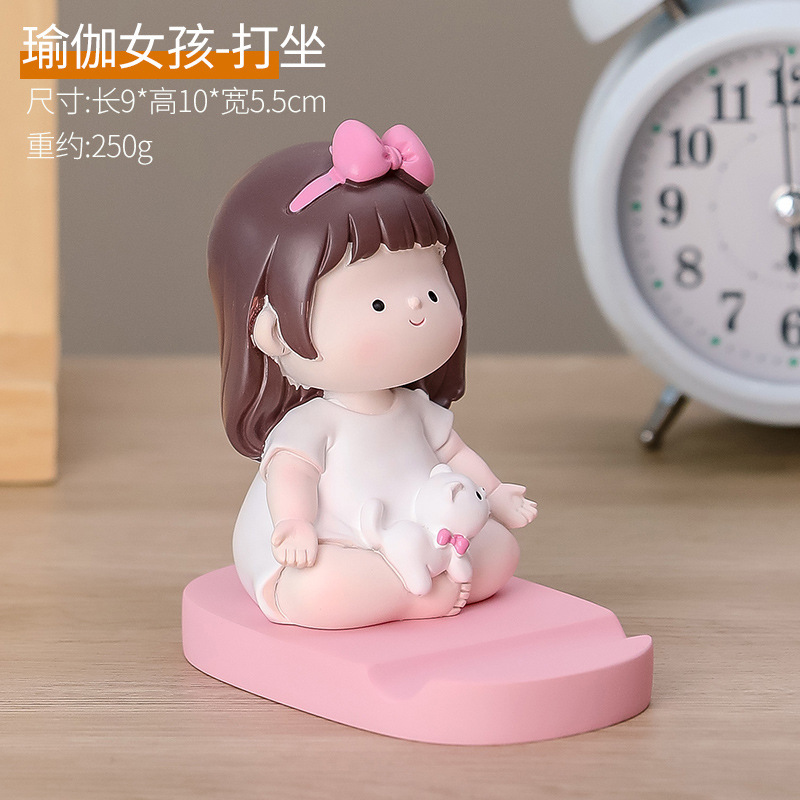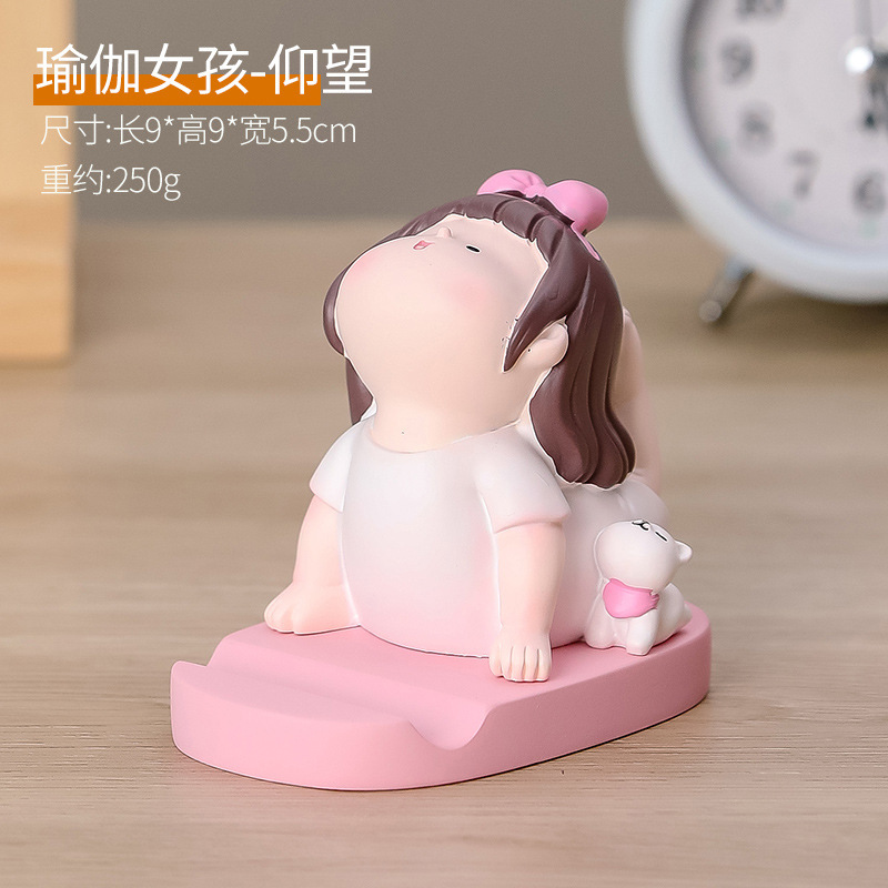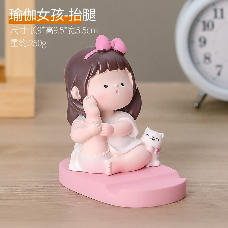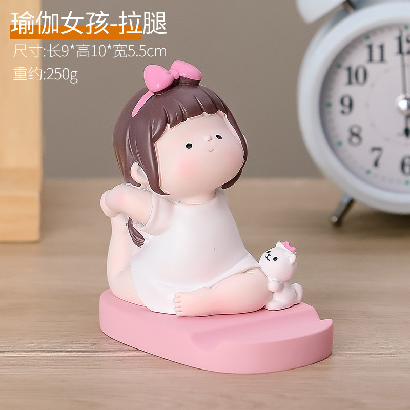 만화 귀여운 요가 소녀 휴대 전화 홀더 크리 에이 티브 데스크탑 장식품 장식 병 게으른 드라마 휴대 전화 홀더스토어 가기