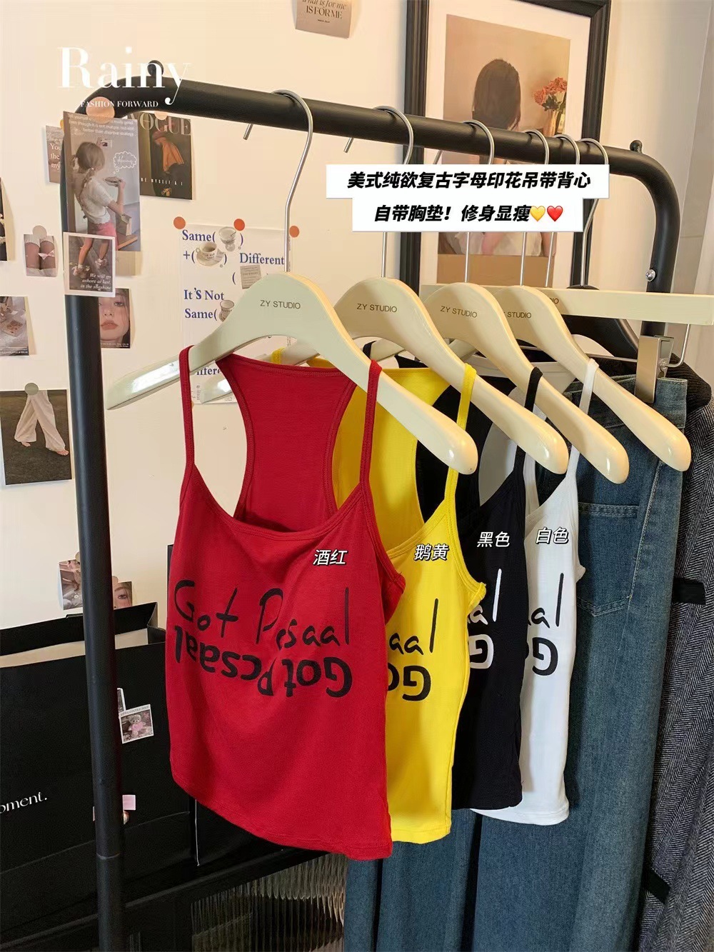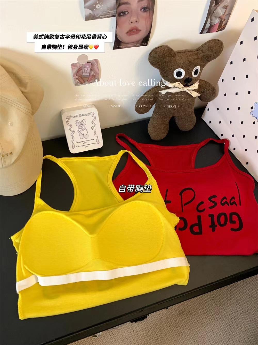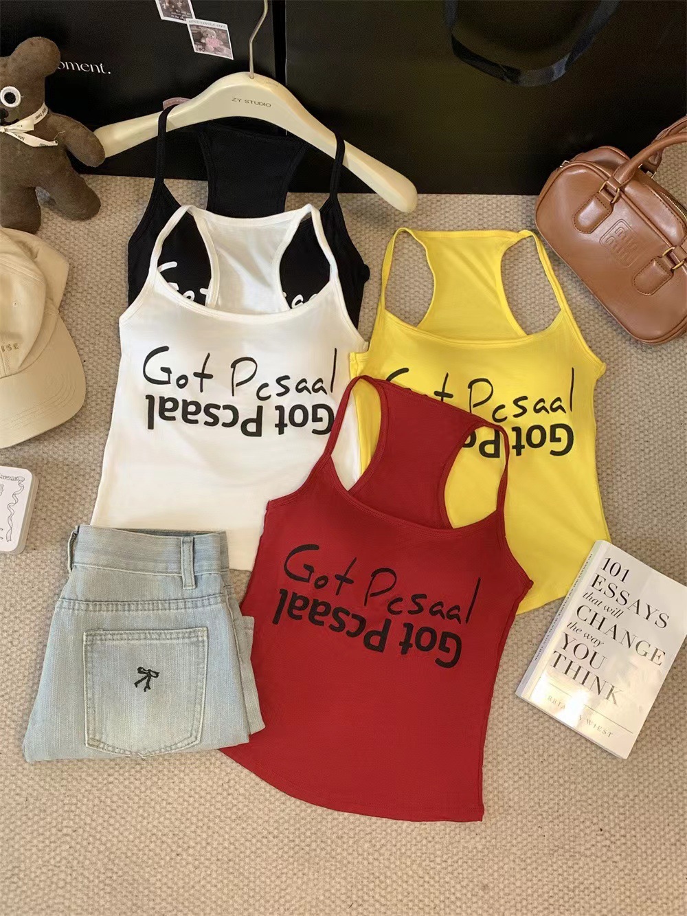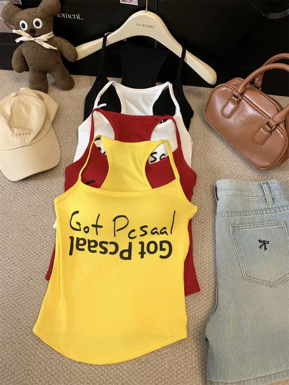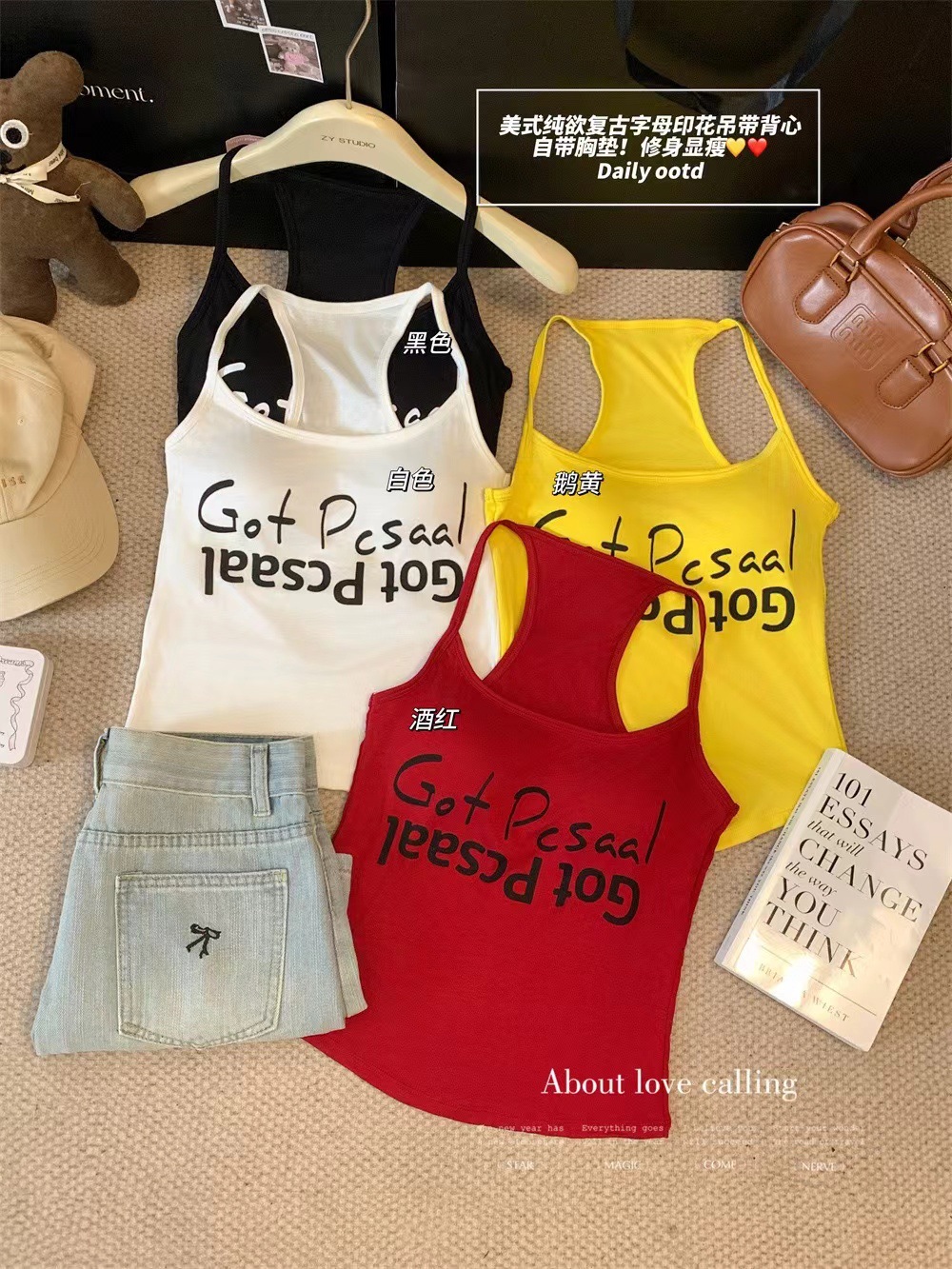 도파민 아메리칸 스타일 핫 소녀 가슴 패드 편지 인쇄 카미 솔 여성의 여름 슬림 핏 내면베이스 탑 아우터웨어