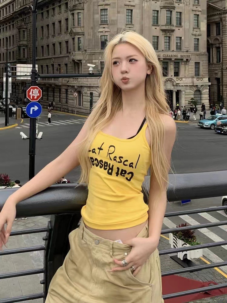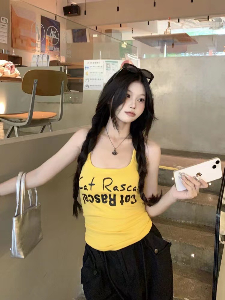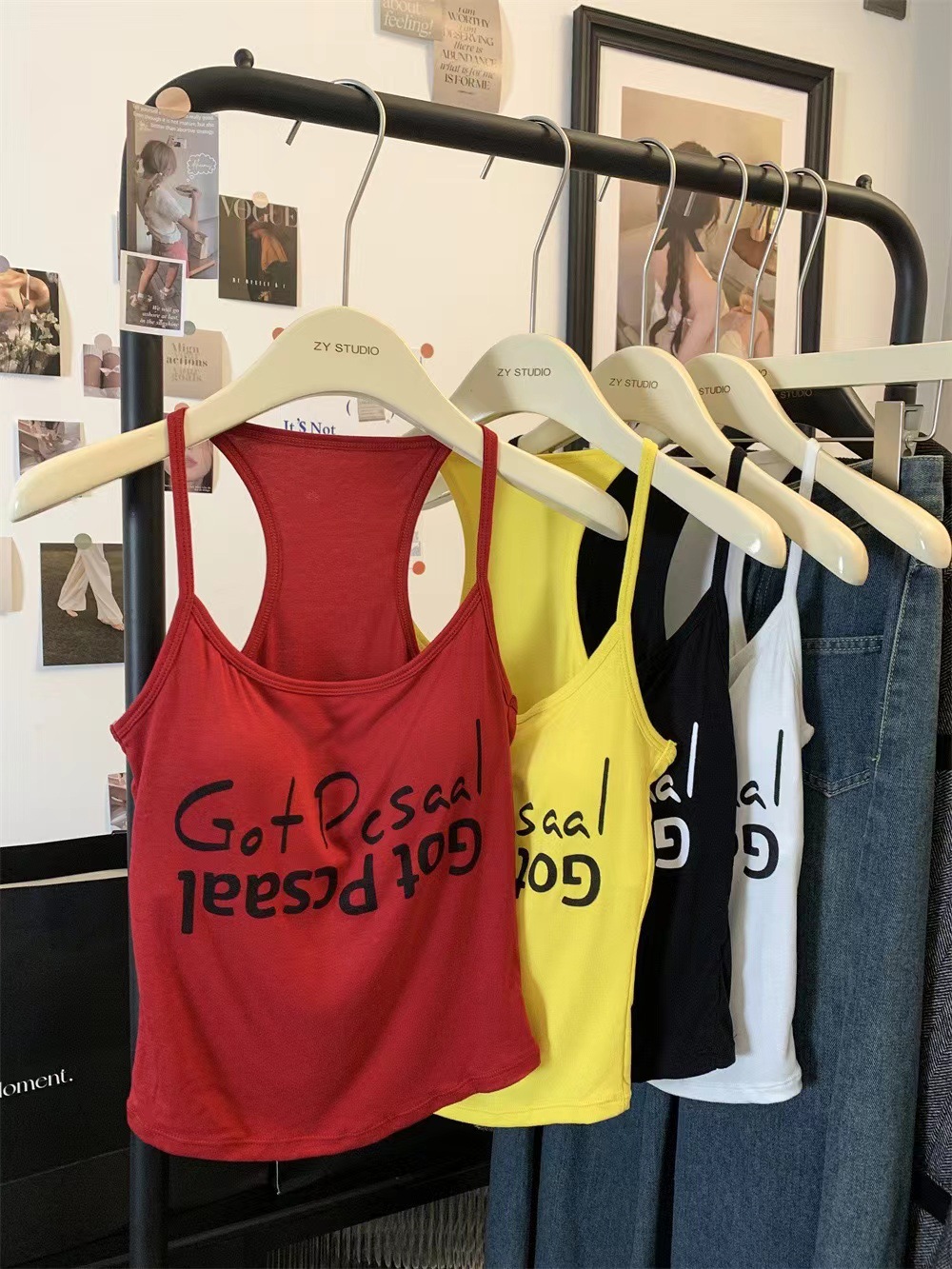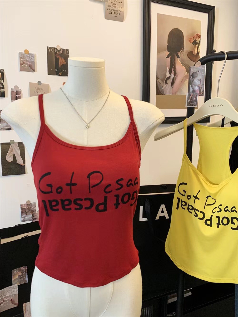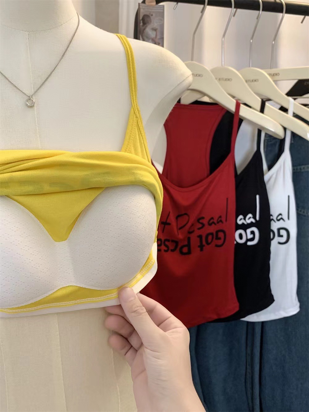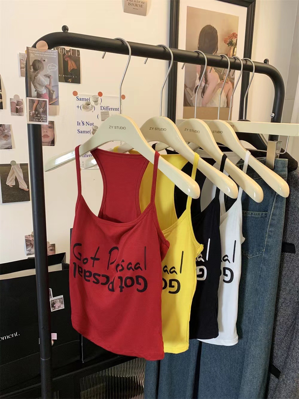 도파민 아메리칸 스타일 핫 소녀 가슴 패드 편지 인쇄 카미 솔 여성의 여름 슬림 핏 내면베이스 탑 아우터웨어