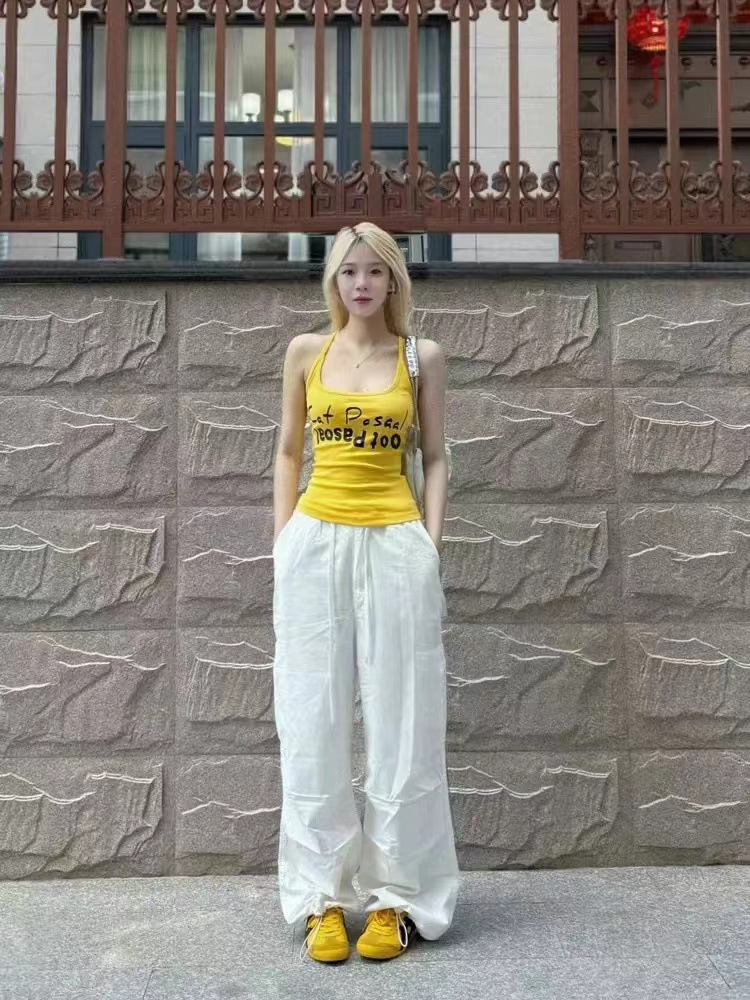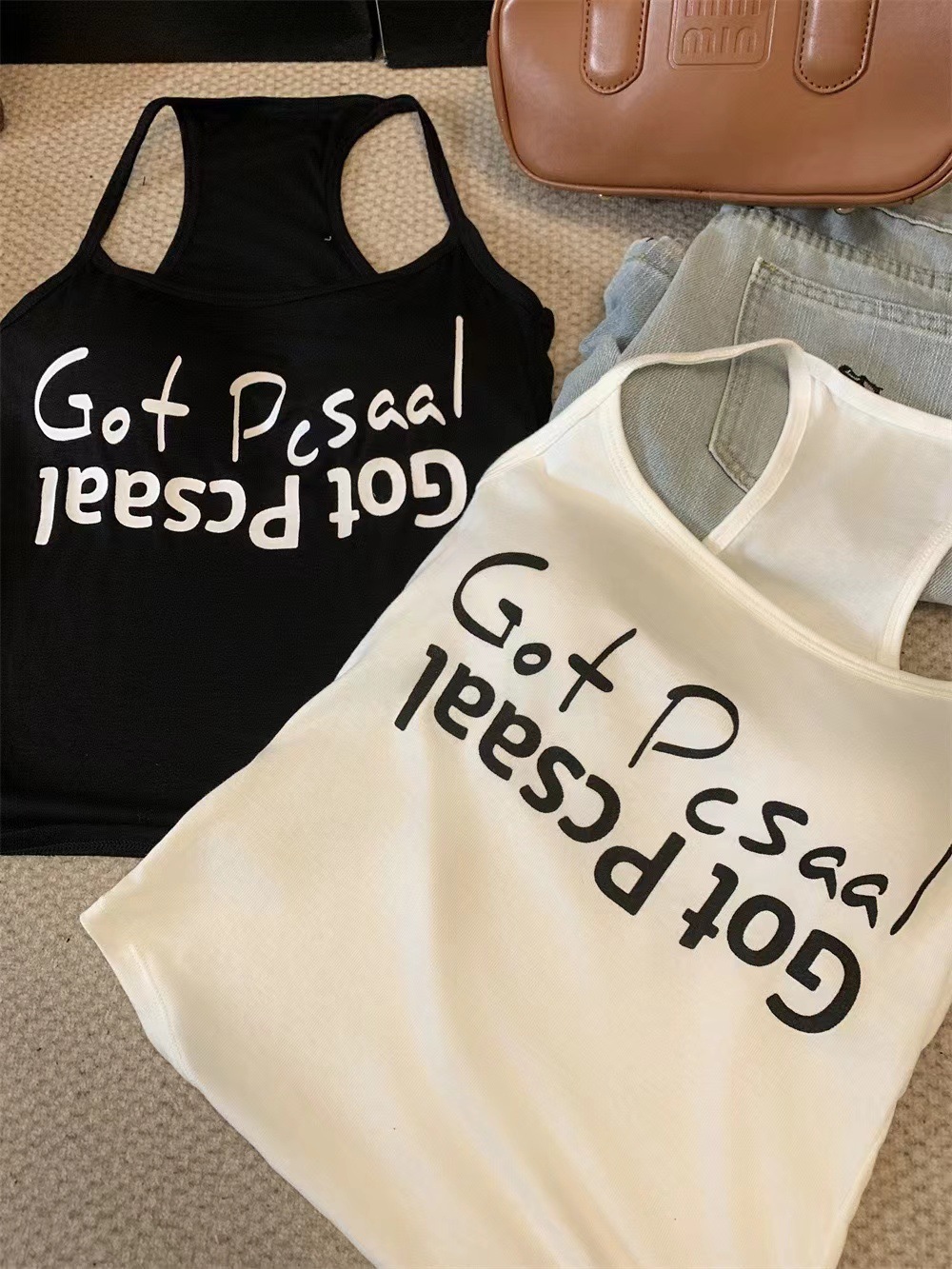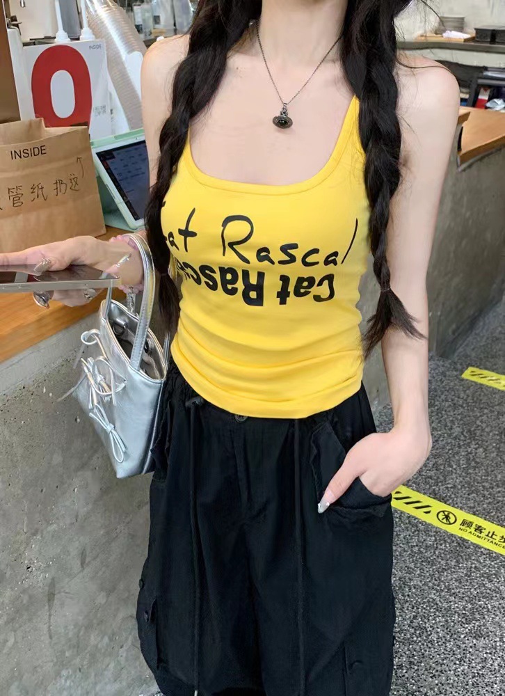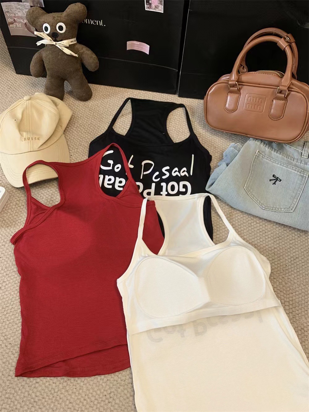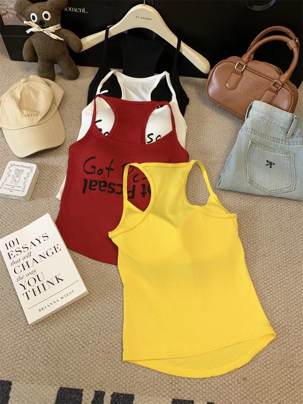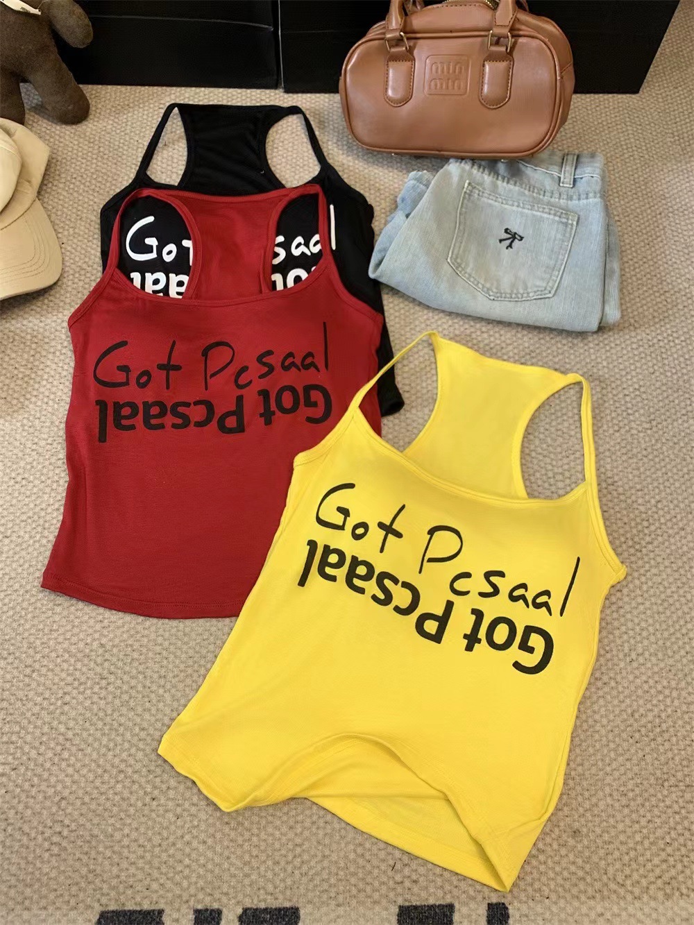도파민 아메리칸 스타일 핫 소녀 가슴 패드 편지 인쇄 카미 솔 여성의 여름 슬림 핏 내면베이스 탑 아우터웨어