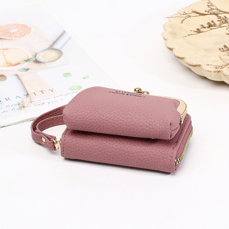 국경 새 여성 지갑 손목 밴드 짧은 동전 지갑 한국 동전 클램프 백 멀티 카드 오르간 카드 가방