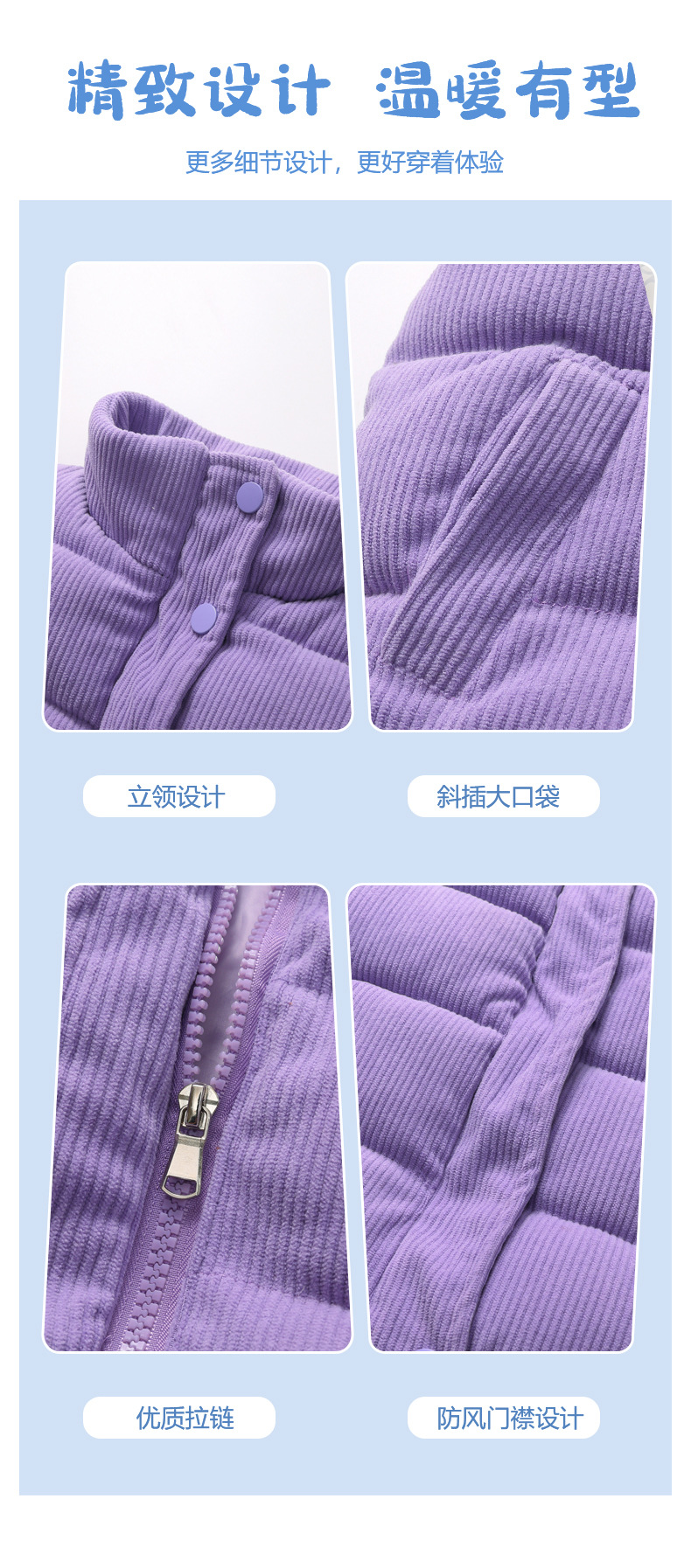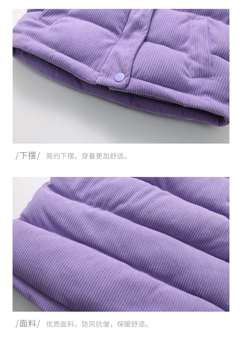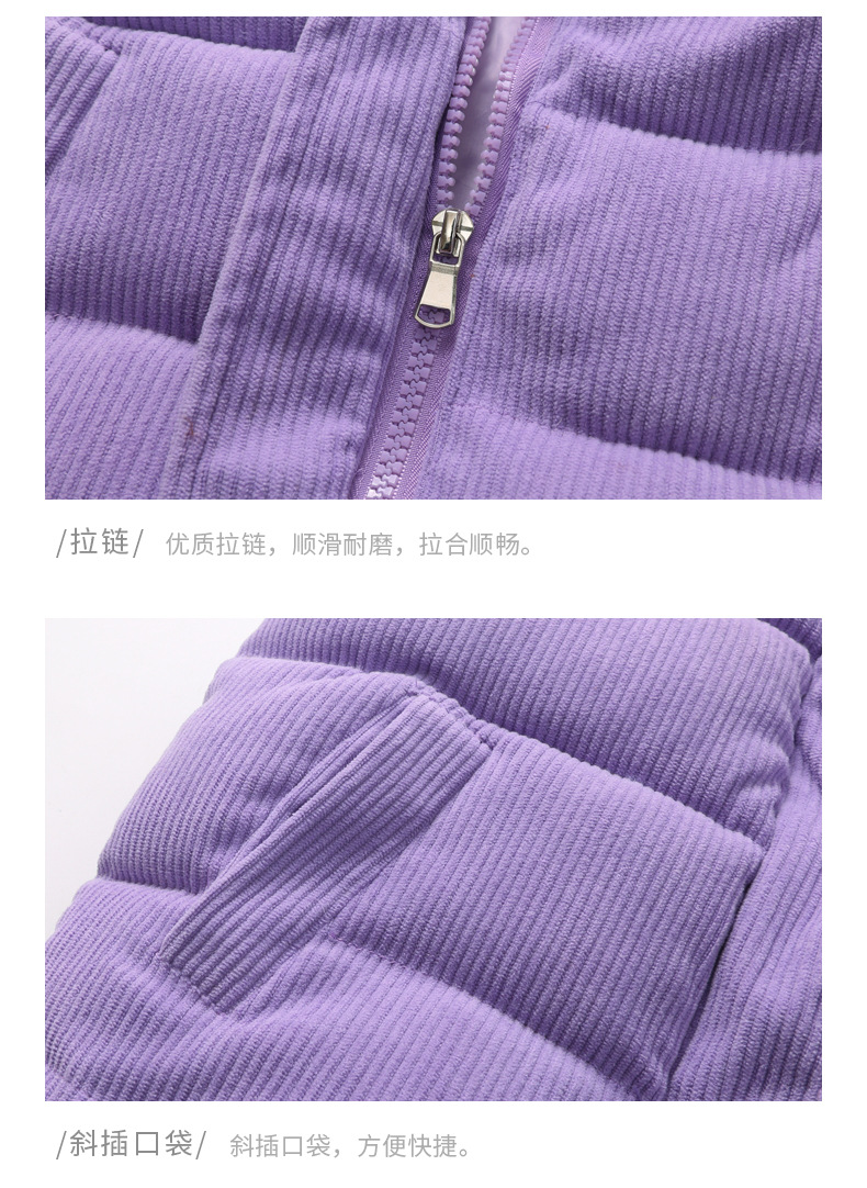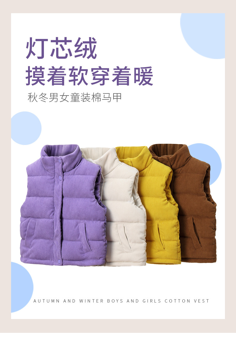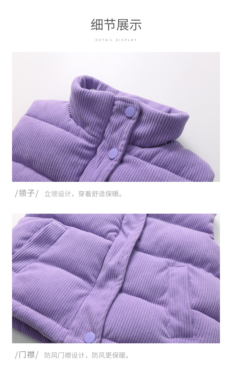 2025 새로운 가을, 겨울 아동 의류 아기 어린이 다운 코튼 코듀로이 조끼 소년과 소녀 스탠드 칼라 조끼스토어 가기