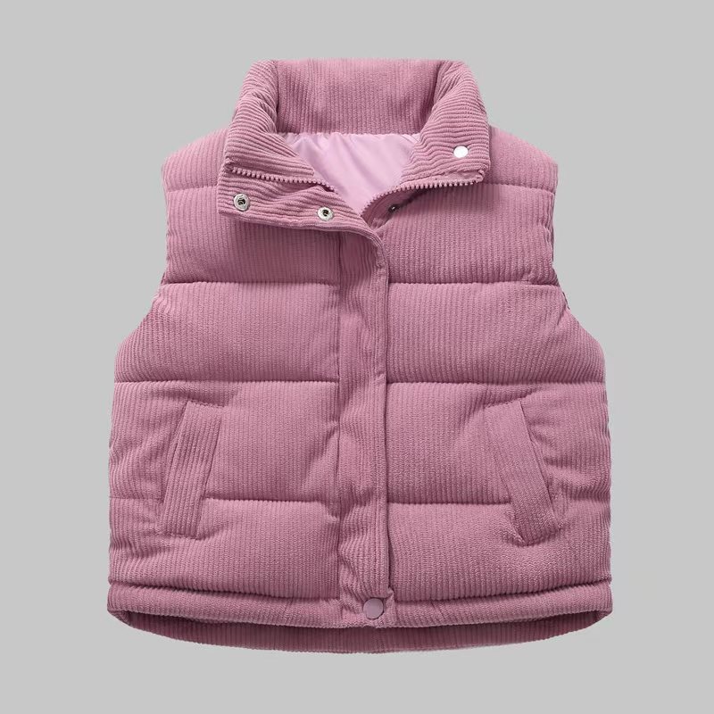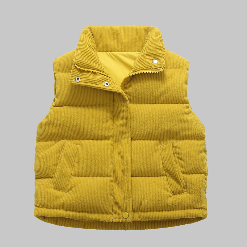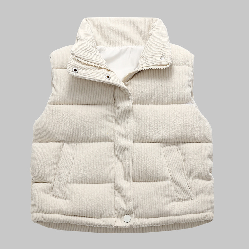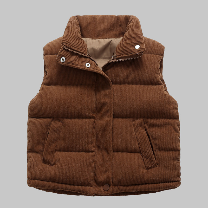 2025 새로운 가을, 겨울 아동 의류 아기 어린이 다운 코튼 코듀로이 조끼 소년과 소녀 스탠드 칼라 조끼