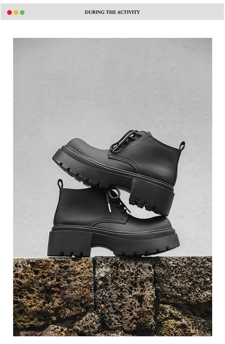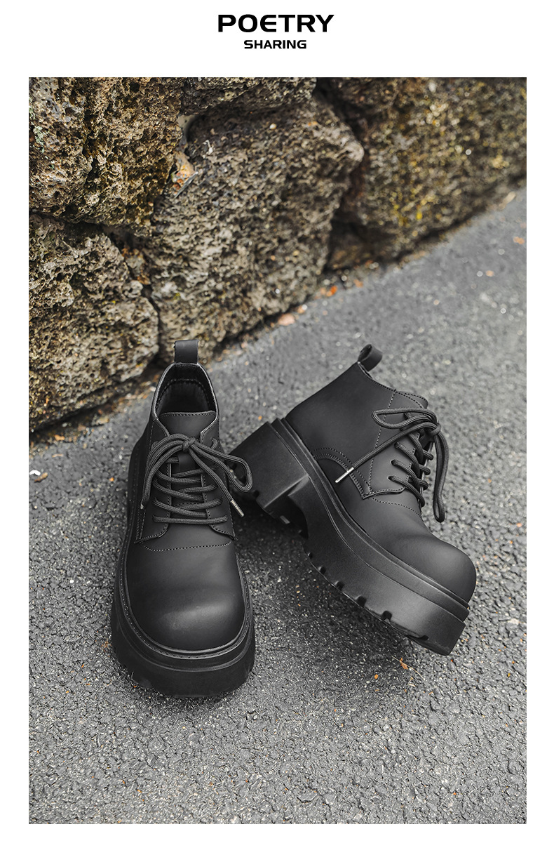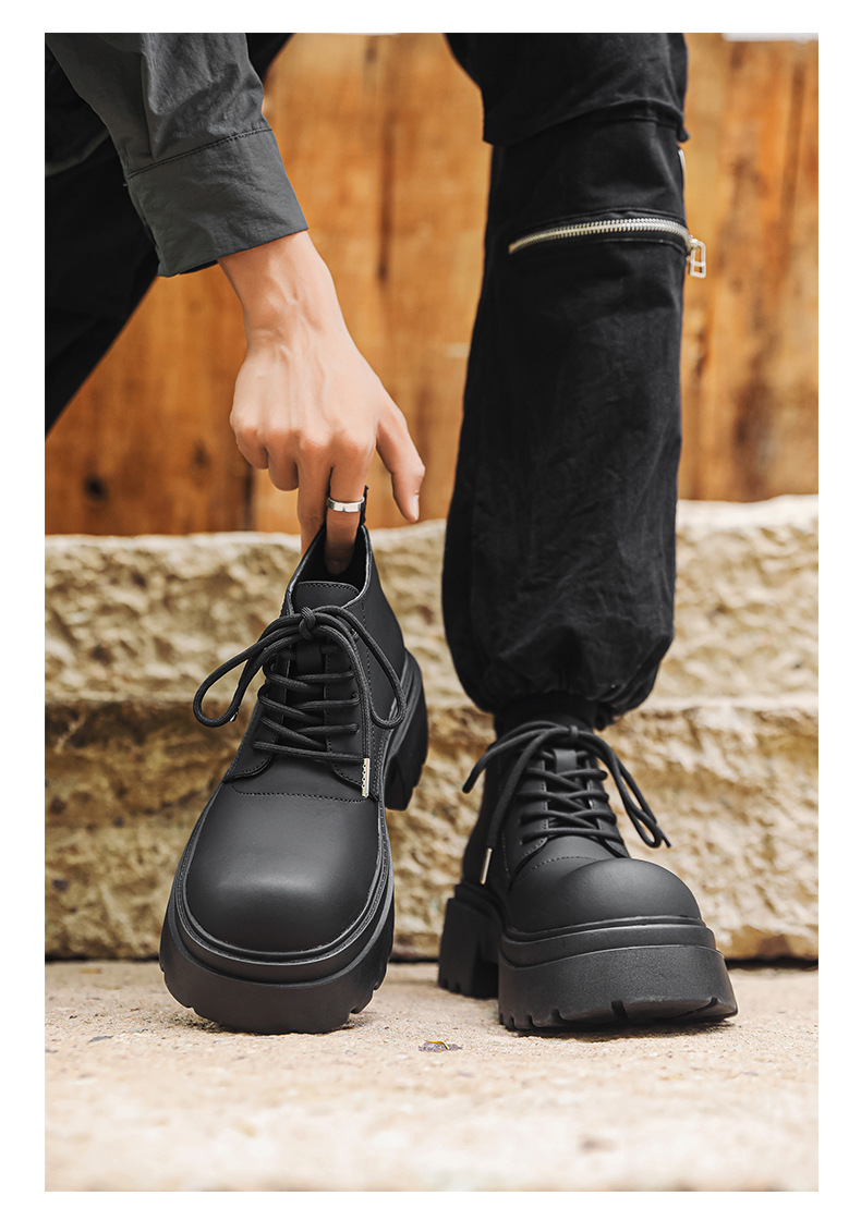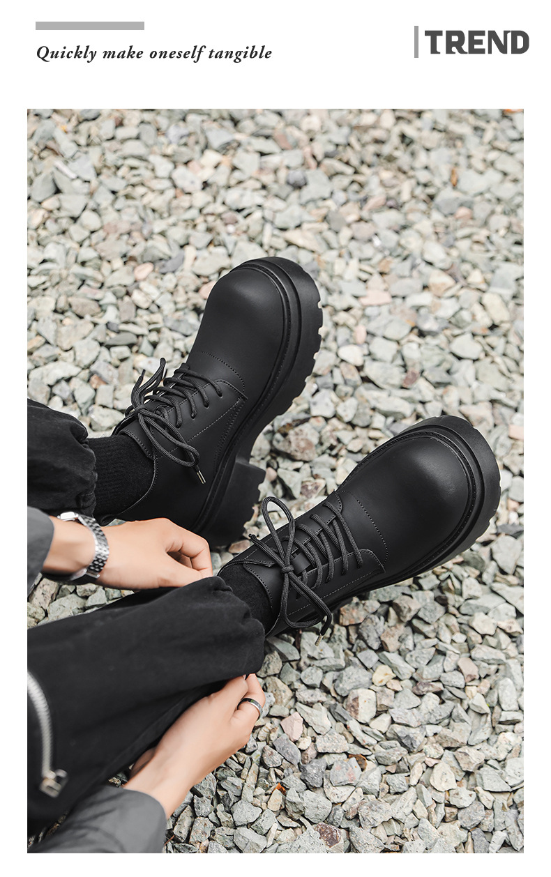 남자 2024 가을 새 도착 마틴 부츠 영국 스타일 레트로 두꺼운 단일 높이 증가 틈새 디자인 고급 라운드 발가락 남자 부츠스토어 가기