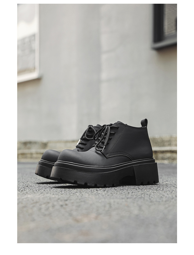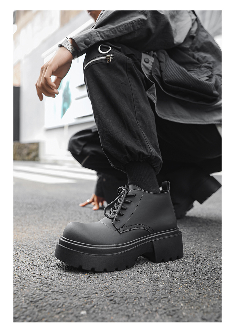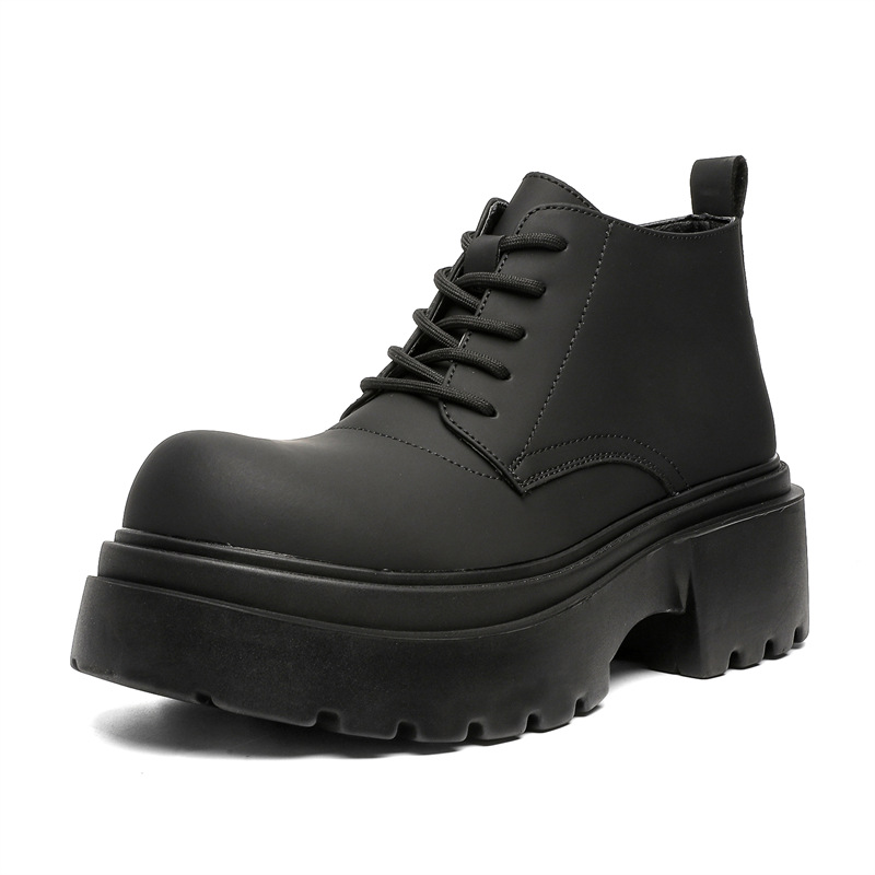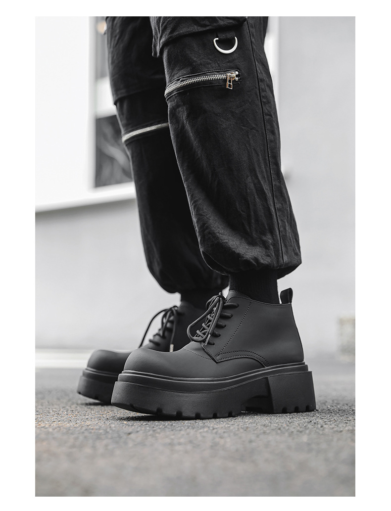 남자 2024 가을 새 도착 마틴 부츠 영국 스타일 레트로 두꺼운 단일 높이 증가 틈새 디자인 고급 라운드 발가락 남자 부츠스토어 가기