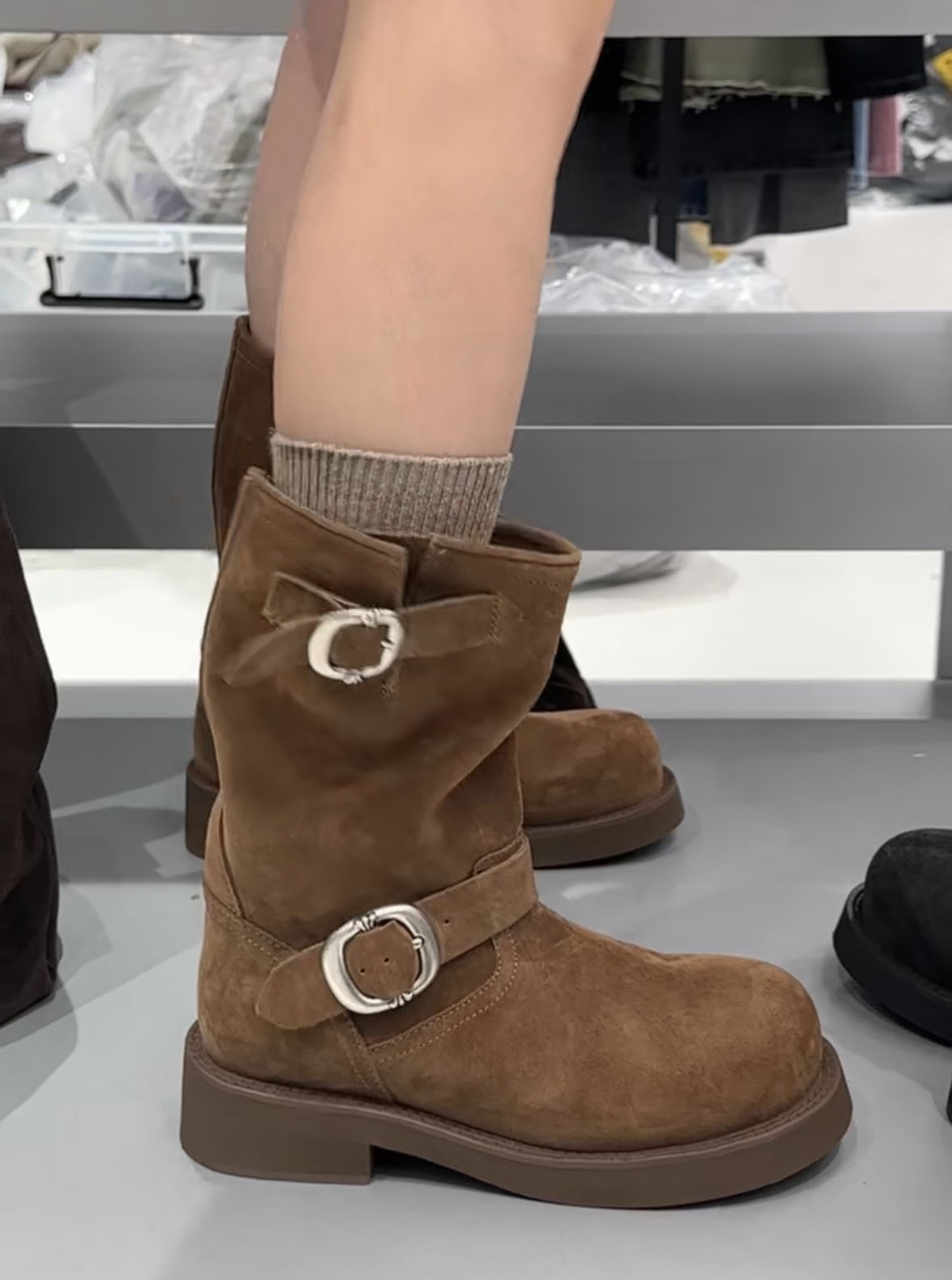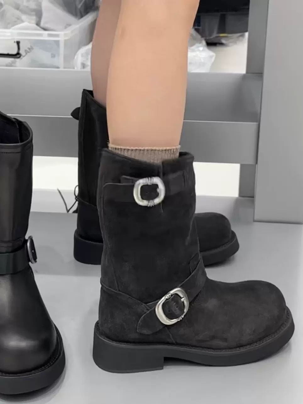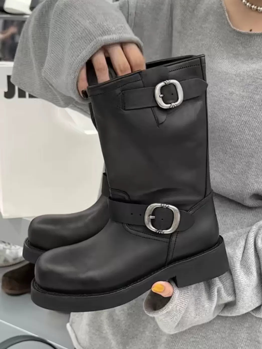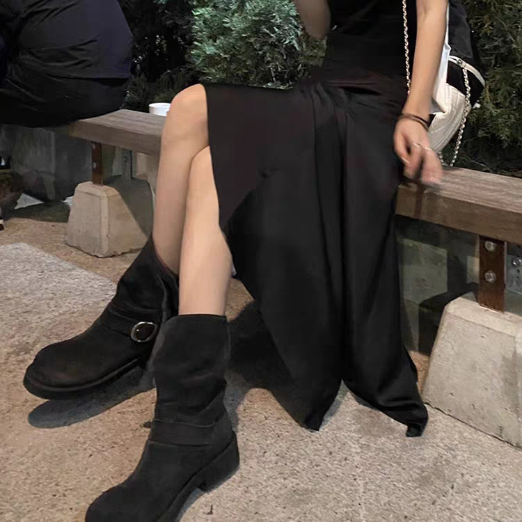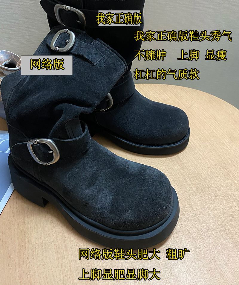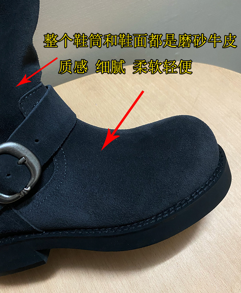Sogelan Middle Barrel Knight 부츠 여성용 2024 새로운 프로스트 Cowhide 웨스턴 부츠 두꺼운 하단 짧은 부츠 싱글 부츠 마틴 부츠