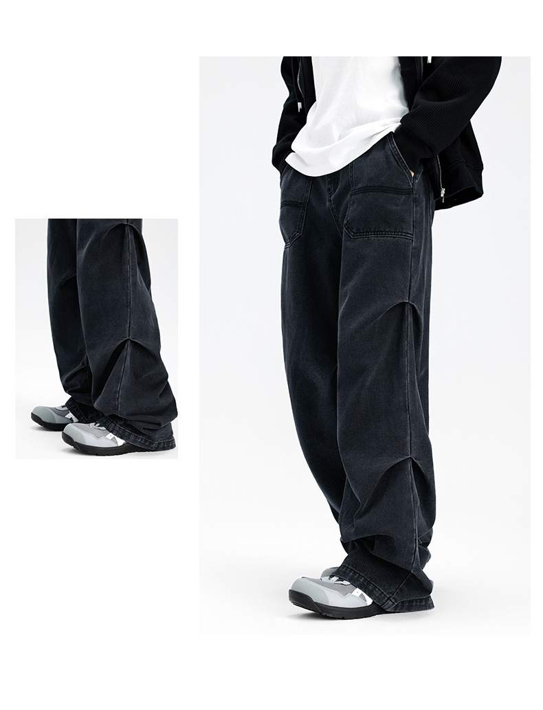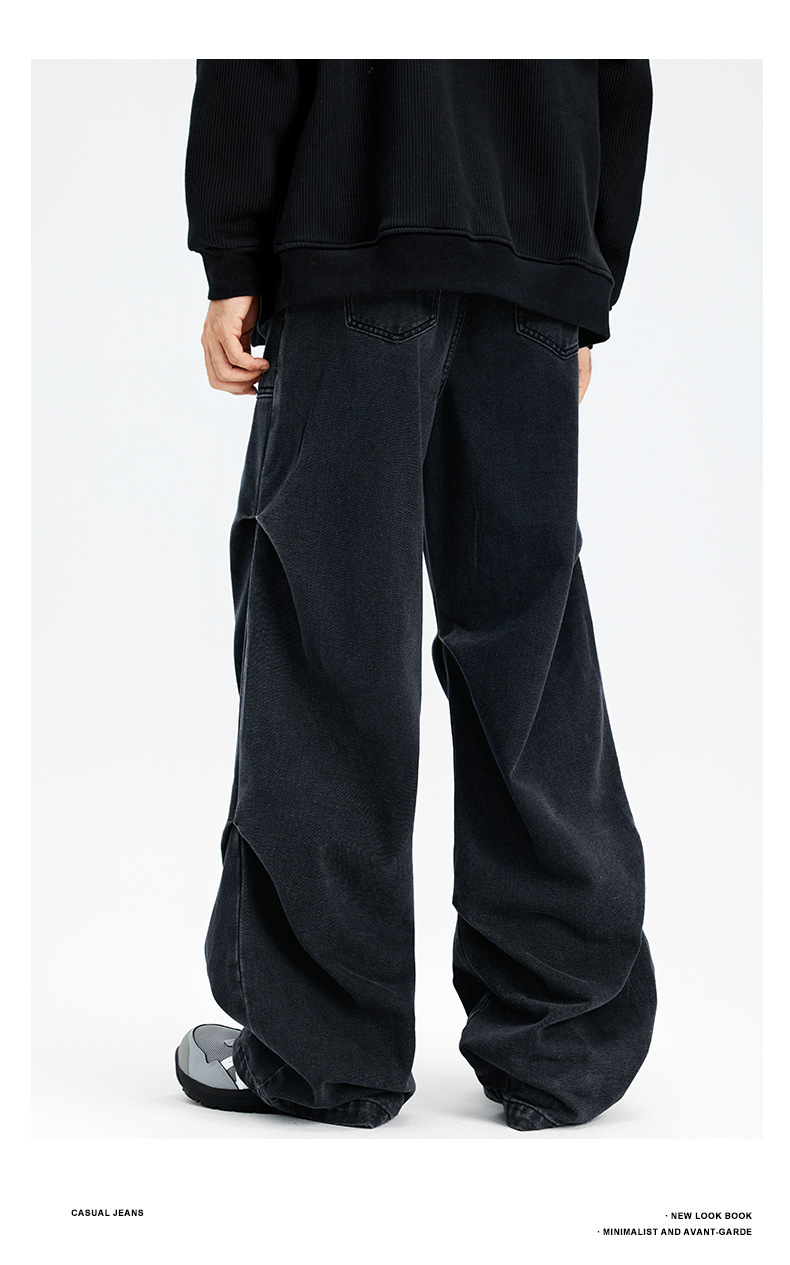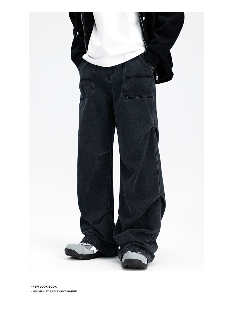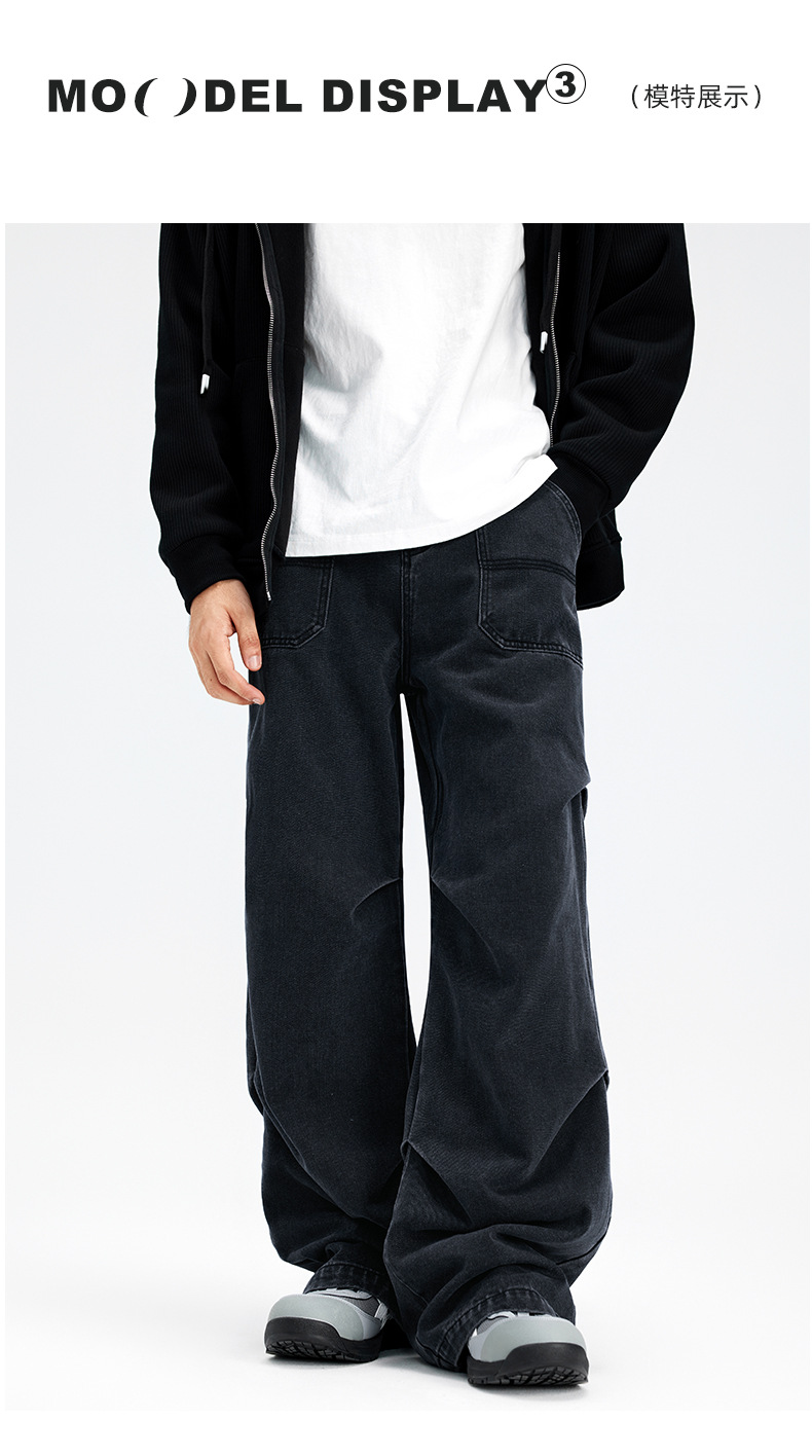 아메리칸 스타일 하이 스트리트 스트레이트 블랙 그레이 청바지 남성 하이 엔드 라이트 럭셔리 빈티지 세탁기 가을 및 겨울 남성복스토어 가기