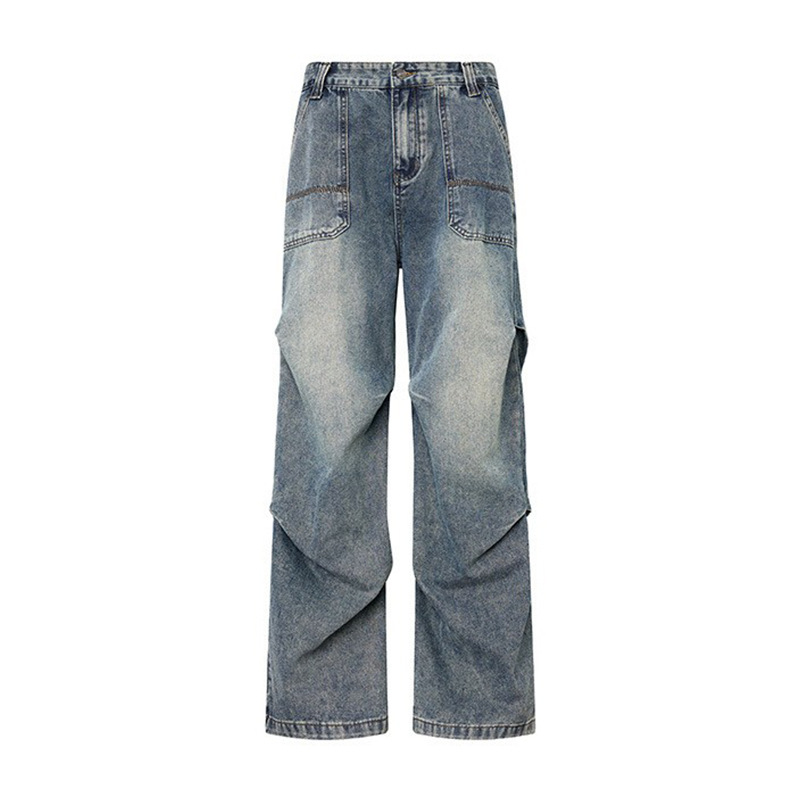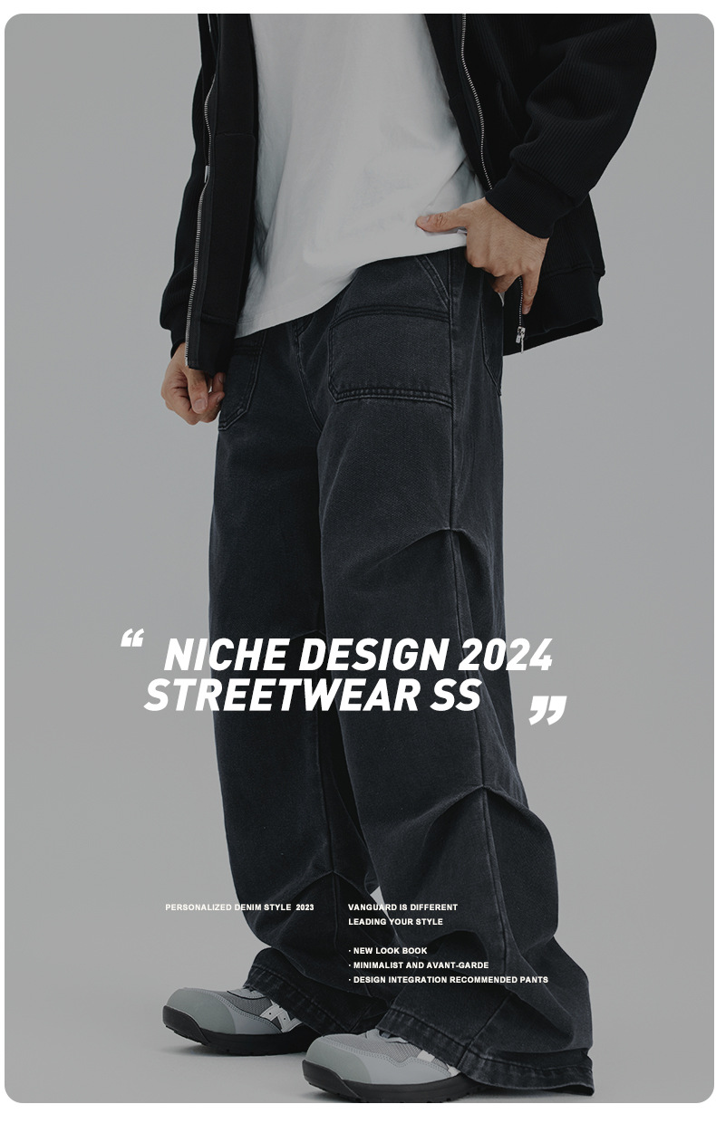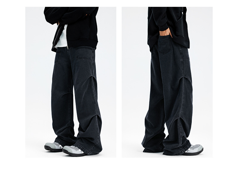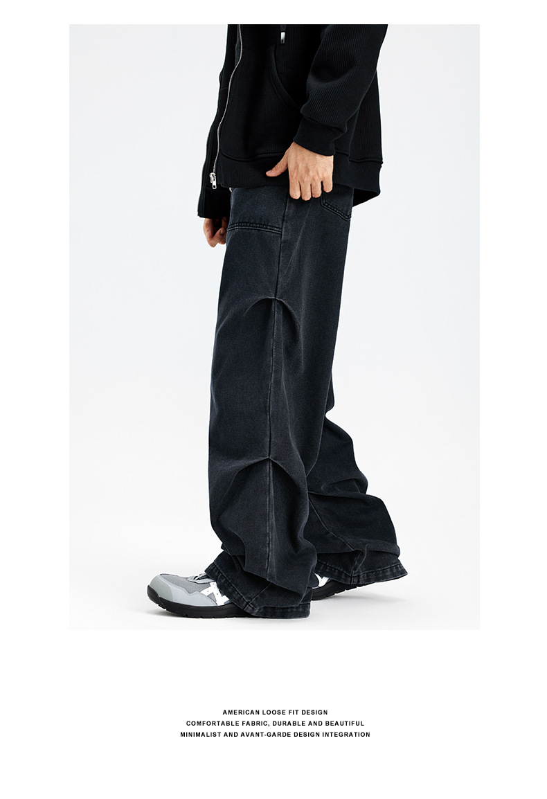 아메리칸 스타일 하이 스트리트 스트레이트 블랙 그레이 청바지 남성 하이 엔드 라이트 럭셔리 빈티지 세탁기 가을 및 겨울 남성복스토어 가기