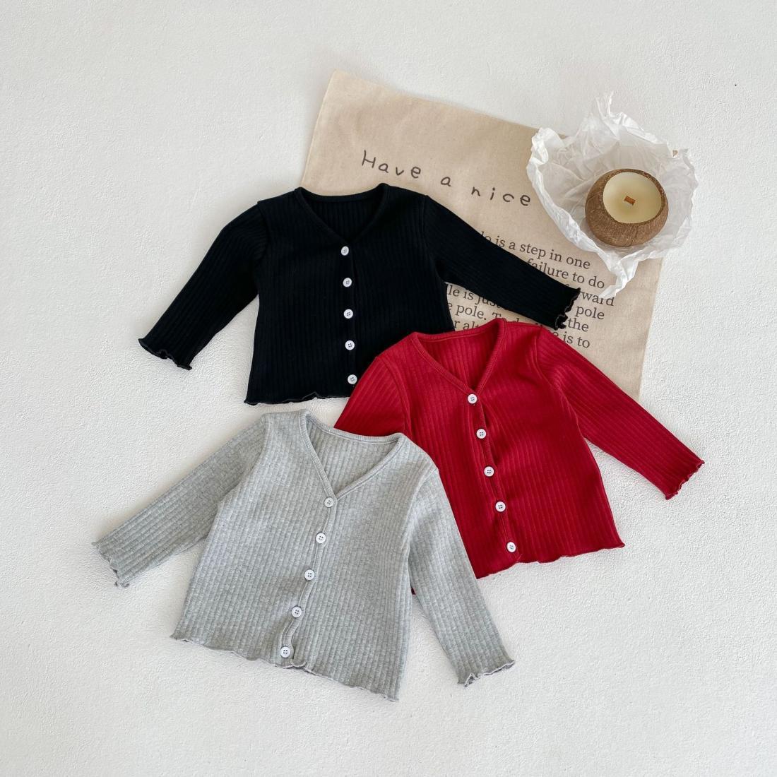 어린이 한국식 옷 가을 옷 구덩이 스트립 작은 카디건 아기 소녀 공주 봄과 가을 단색 탑 스타일 올 매치 재킷