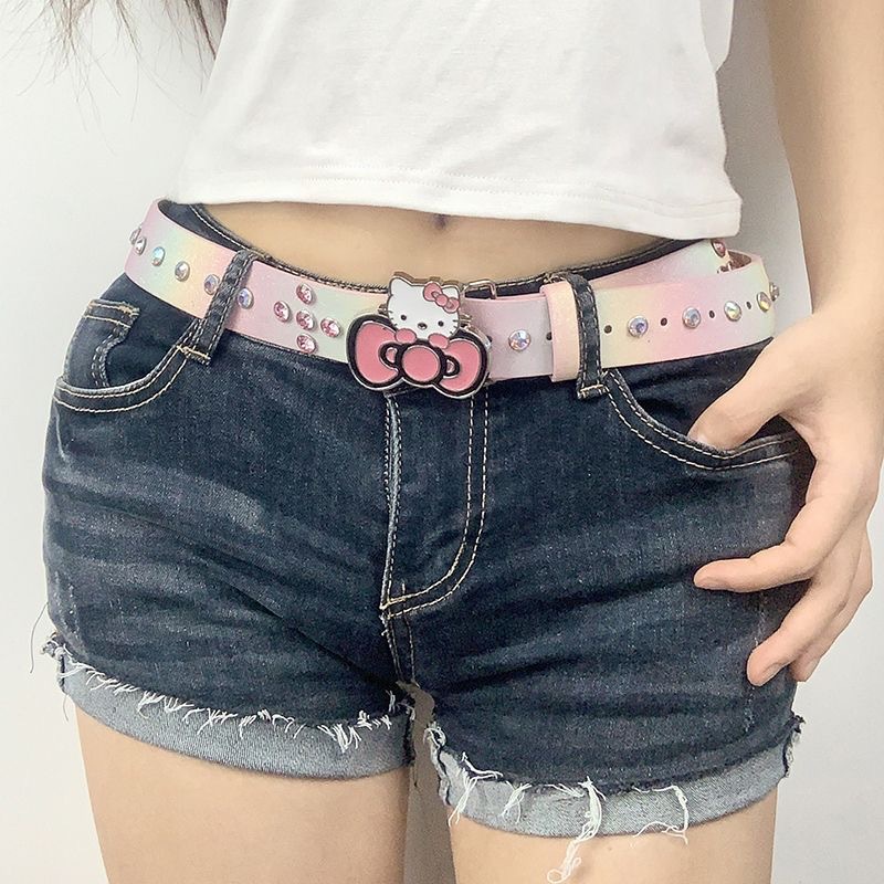 귀여운 KT 고양이 달콤한 쿨 스파이스 소녀 y2k 헤드 벨트 만화 하위 문화 다이아몬드 벨트 소녀 데님 액세서리 벨트