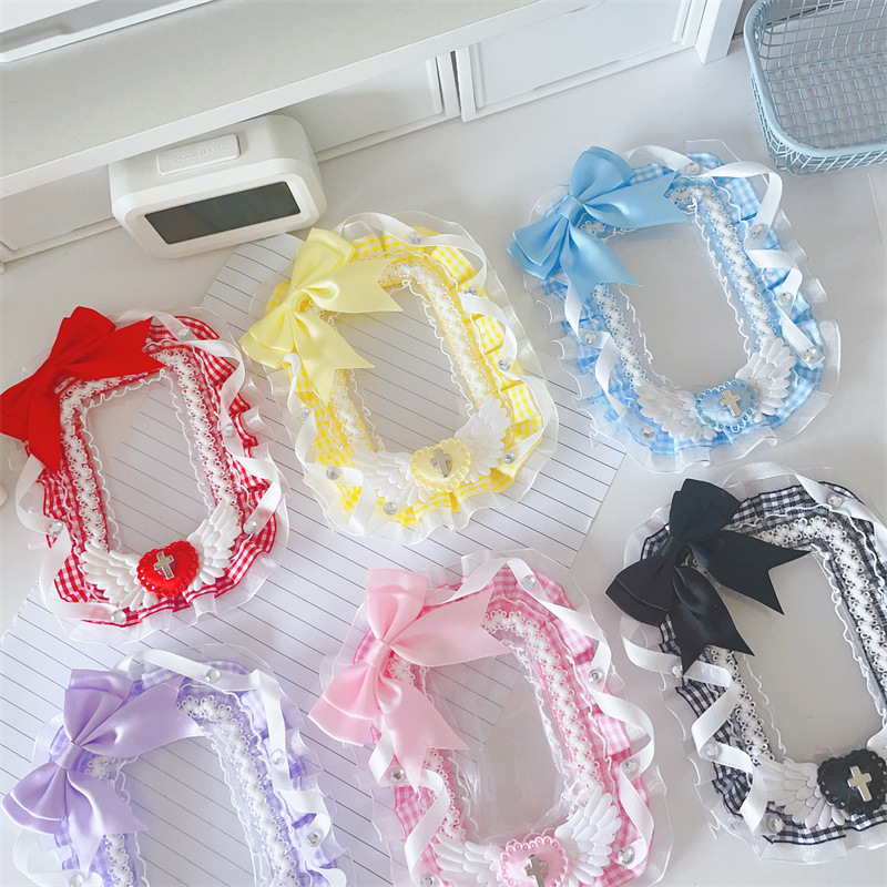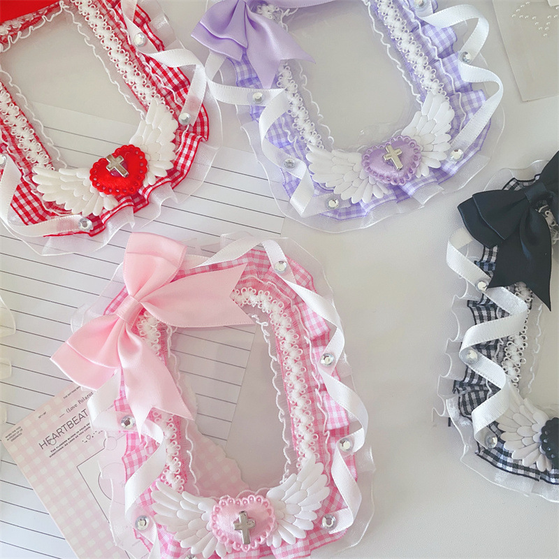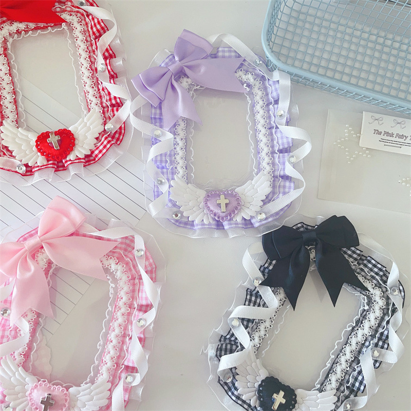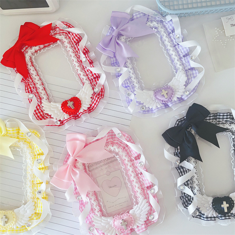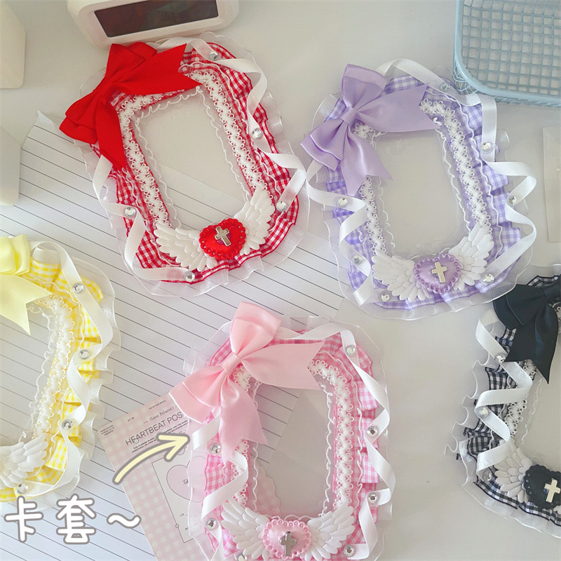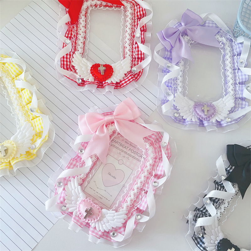 Ins 스타일 레이스 카드 세트 패브릭 작은 카드 펜던트 수제 완성 된 DIY 귀여운 소녀 하트 천사 날개 세트