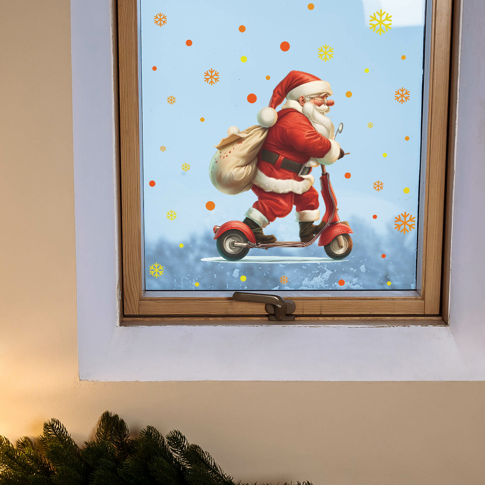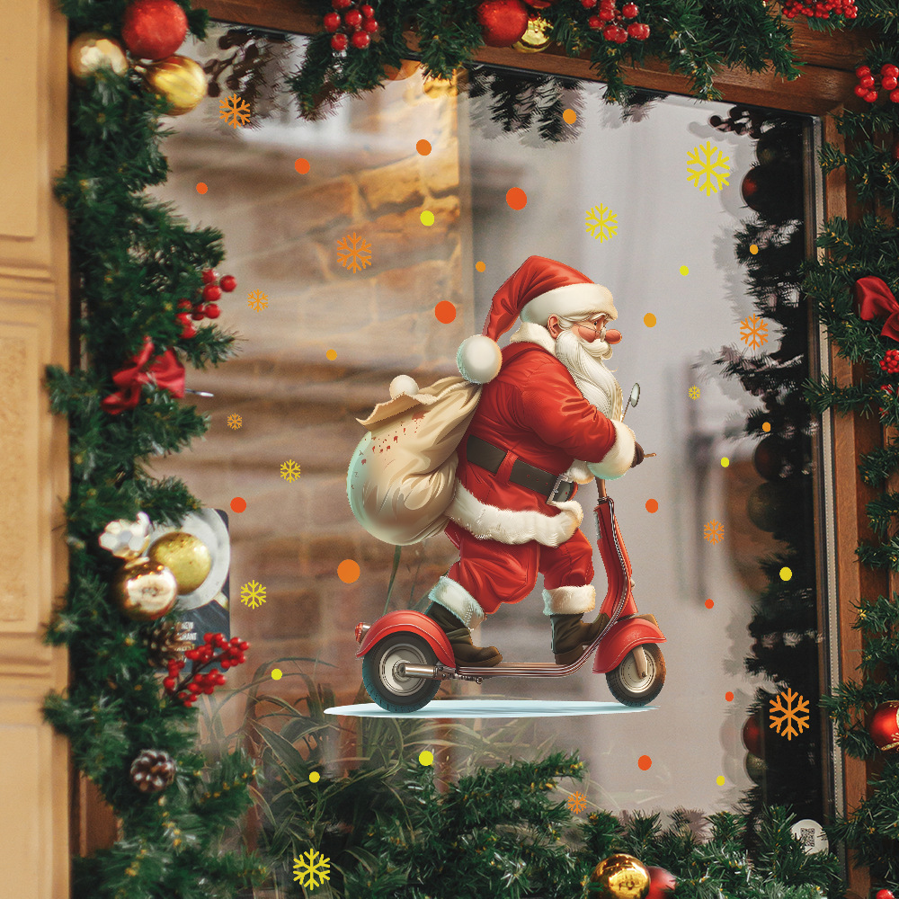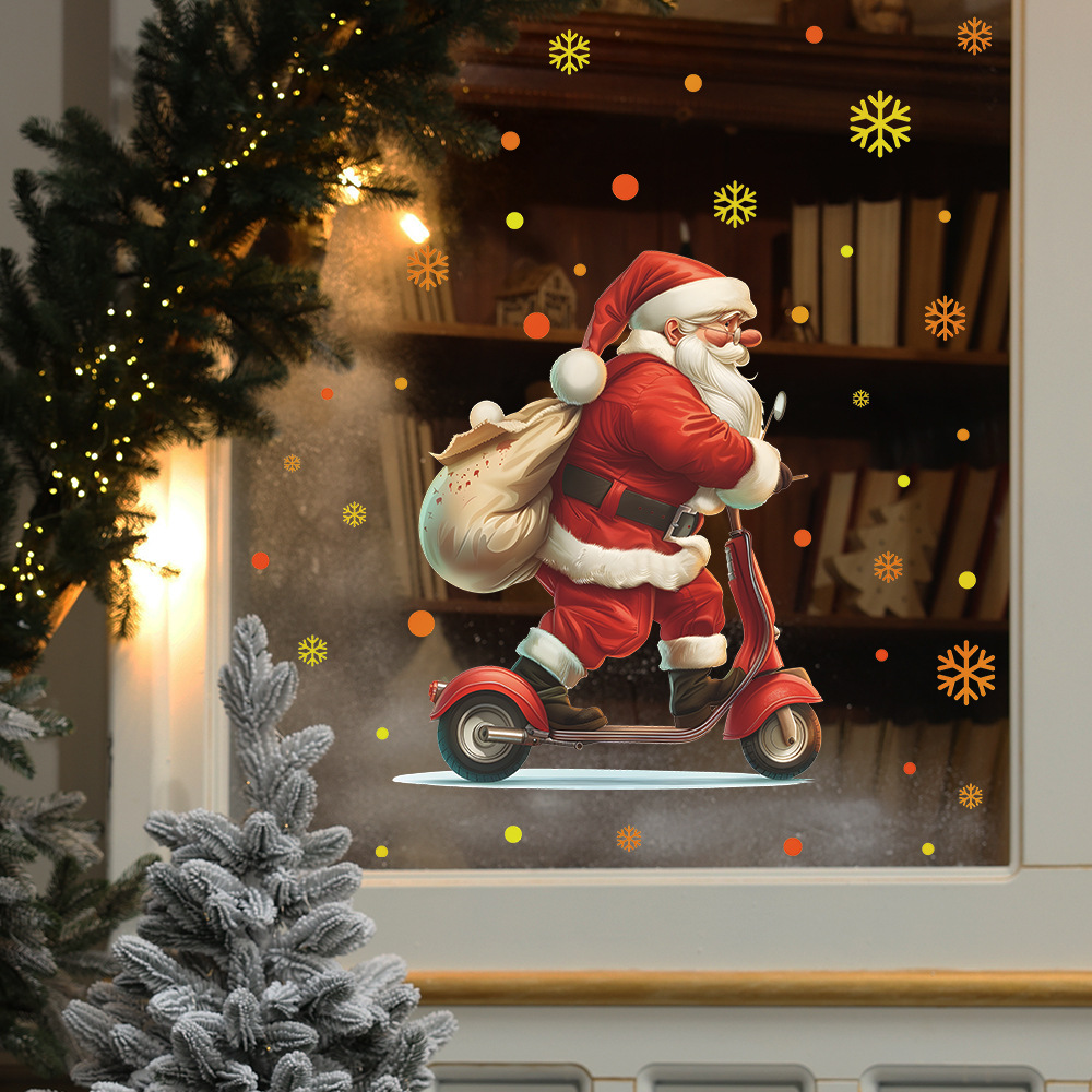 Fun-f268 대외 무역 크리스마스 타고 산타 클로스 눈송이 분위기 장식 유리문과 창문 스티커 도매스토어 가기