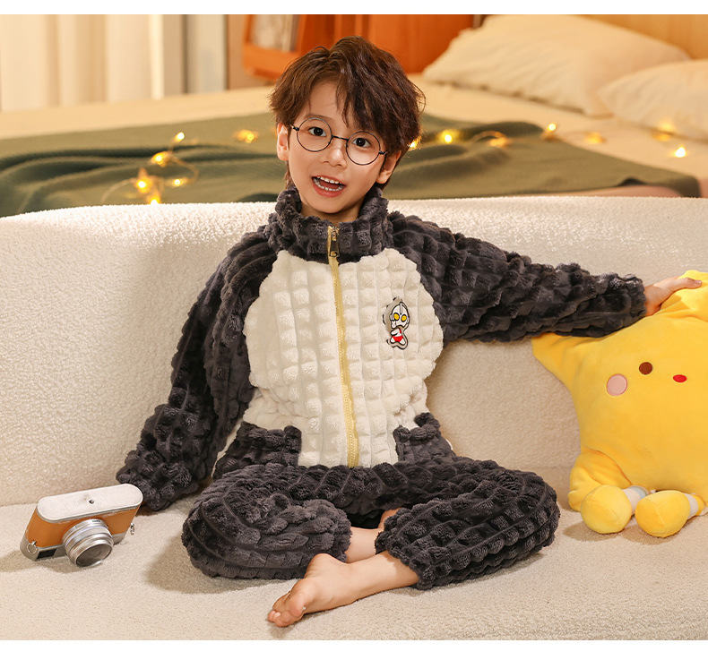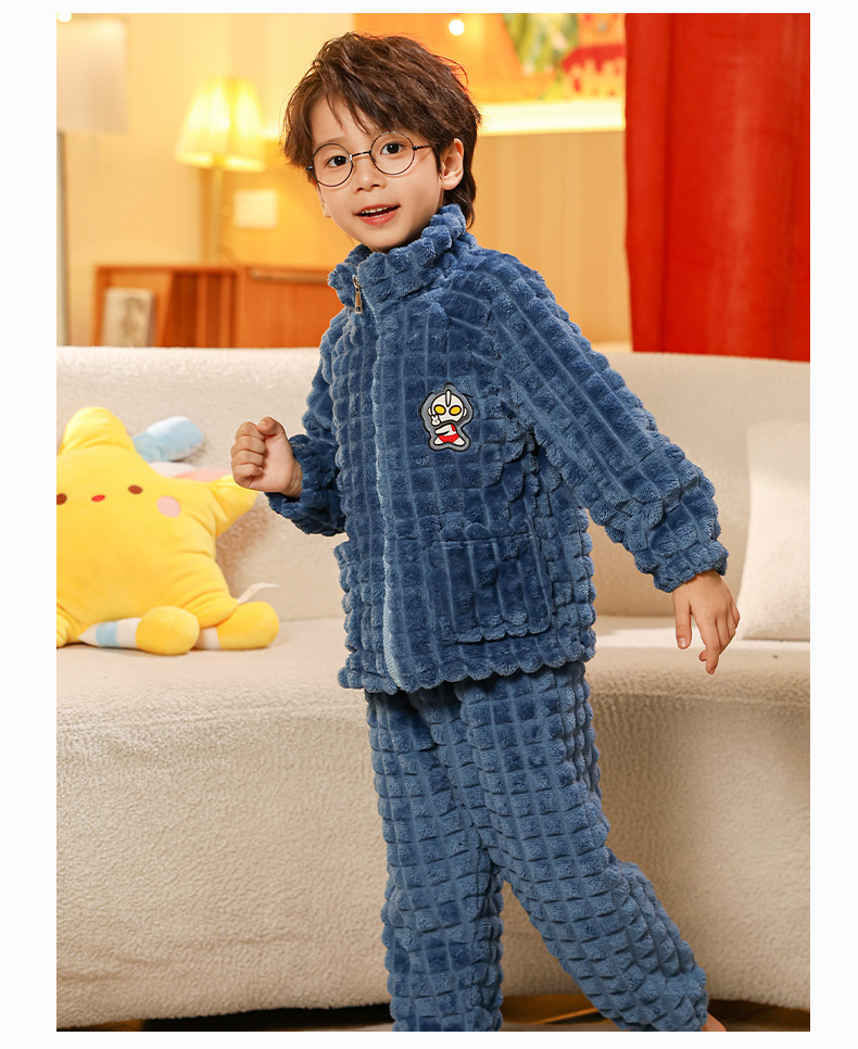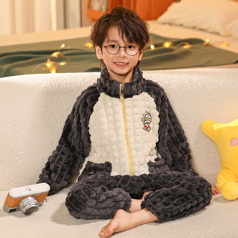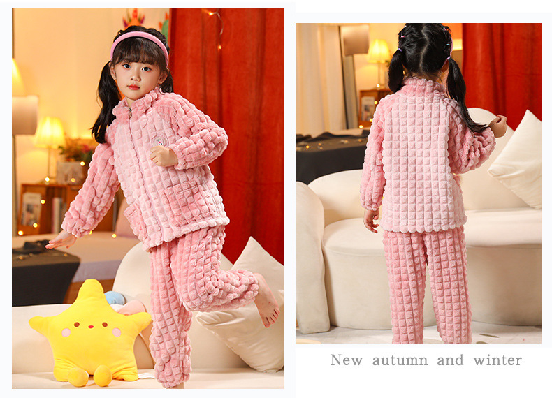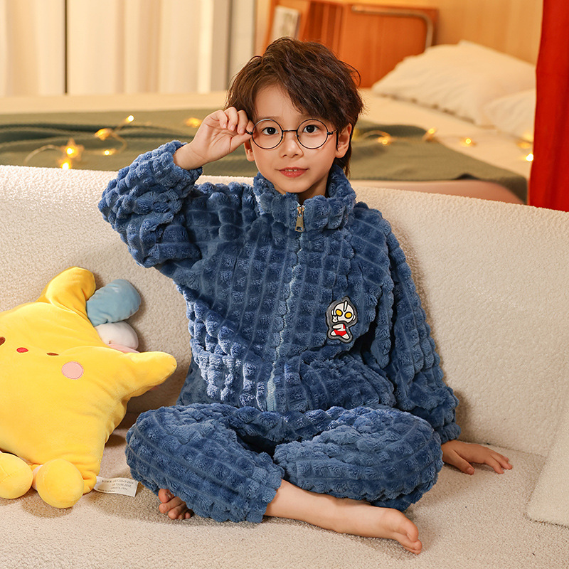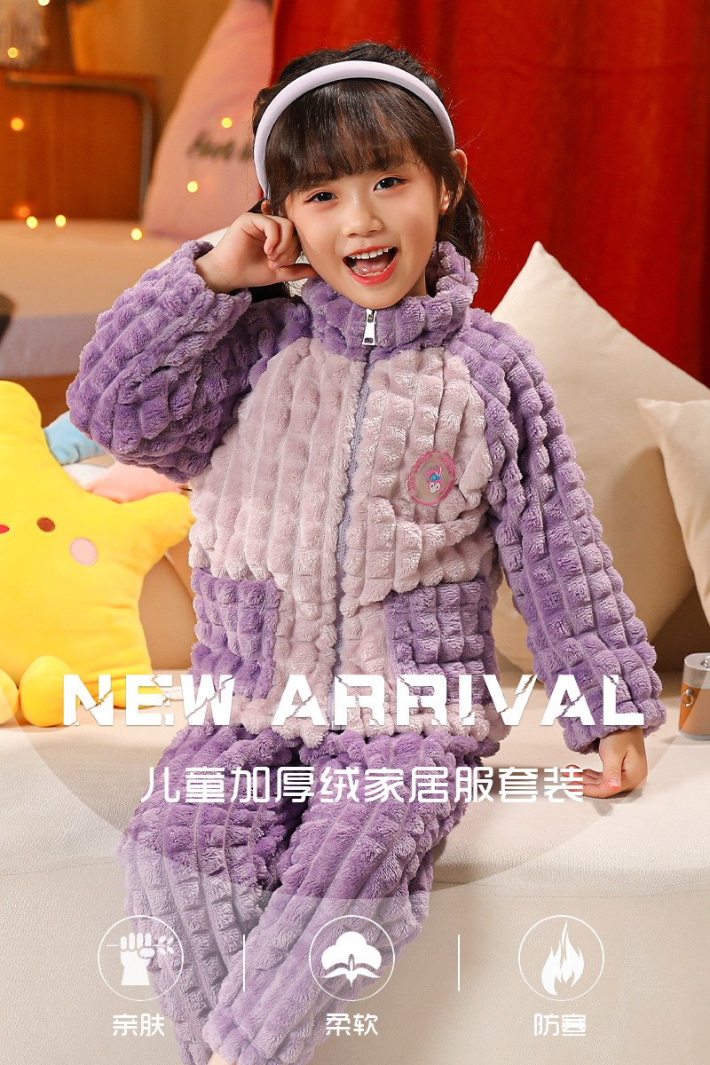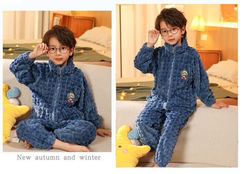 어린이 잠옷 가을과 겨울 두꺼운 플란넬 세트 소년과 소녀 지퍼 따뜻한 산호 양털 홈 옷스토어 가기