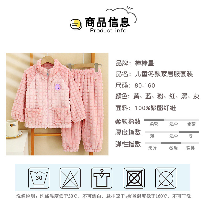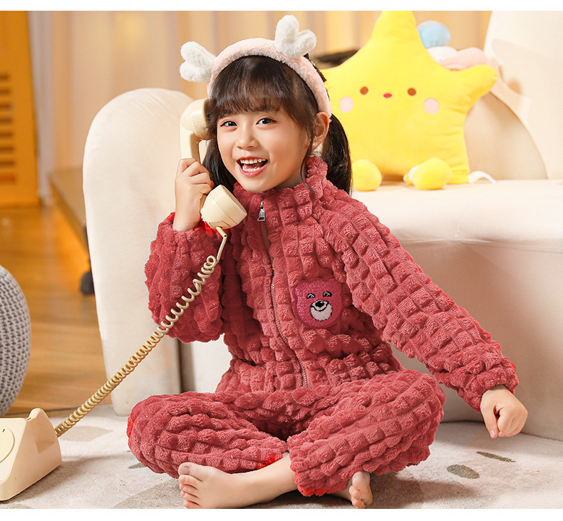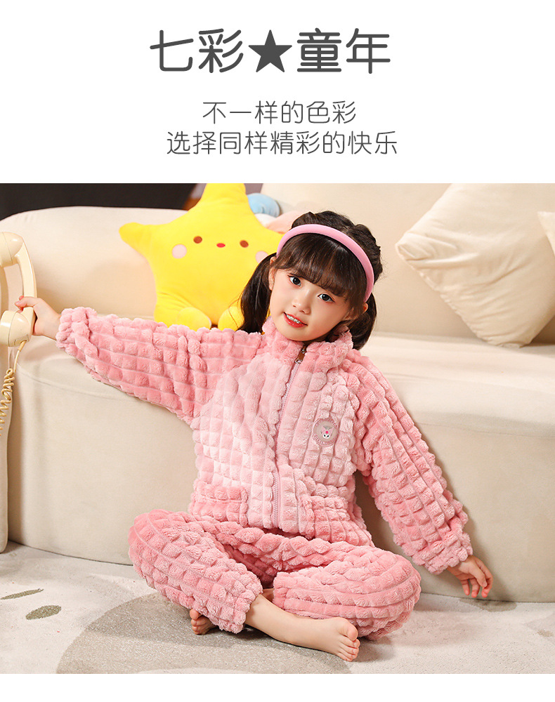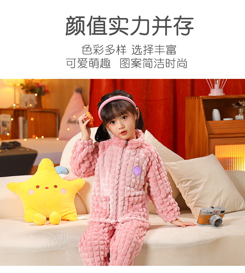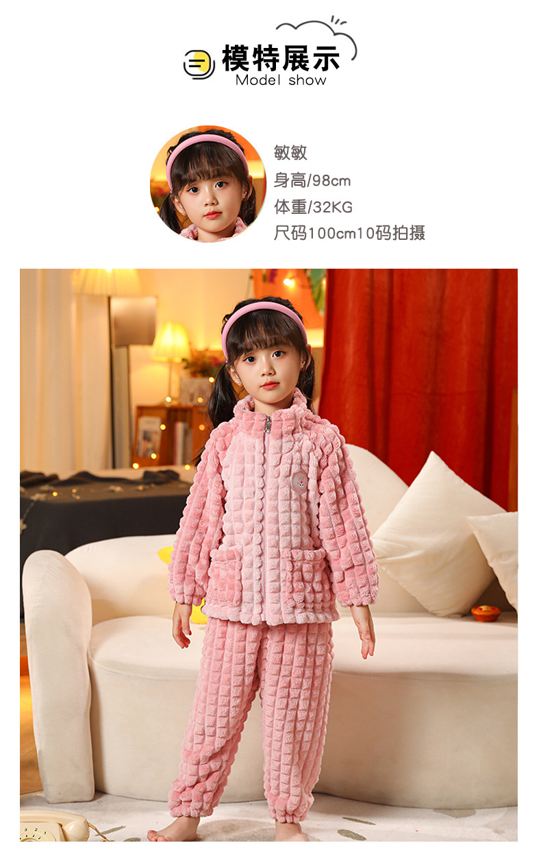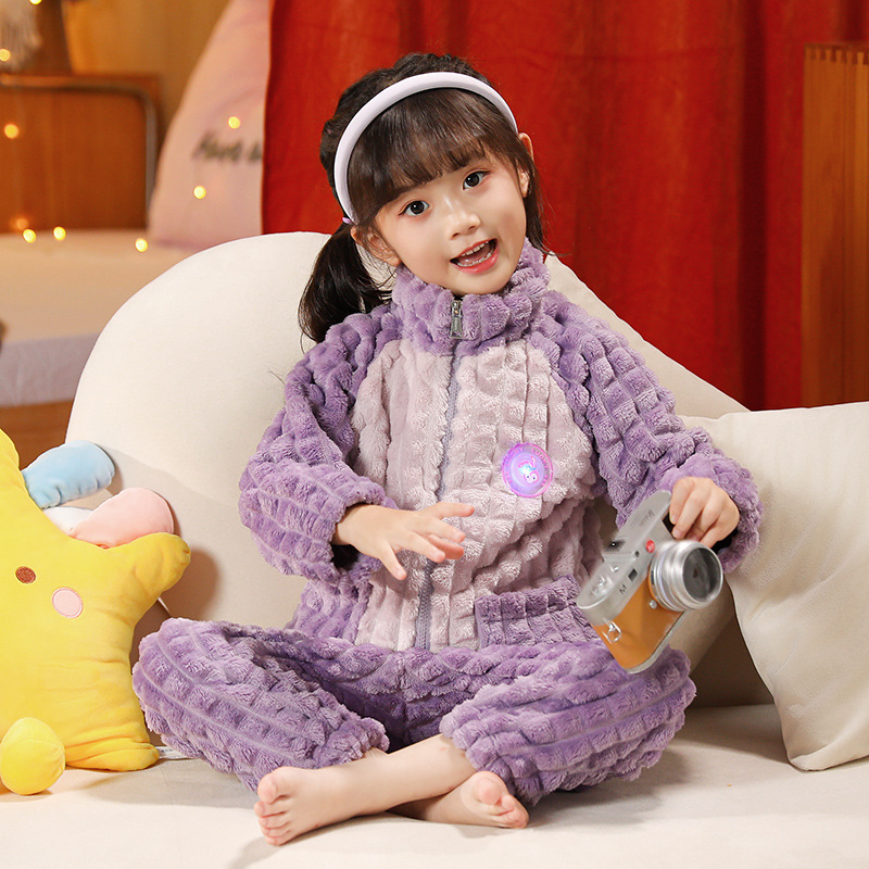 어린이 잠옷 가을과 겨울 두꺼운 플란넬 세트 소년과 소녀 지퍼 따뜻한 산호 양털 홈 옷스토어 가기