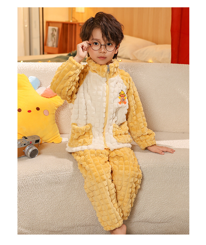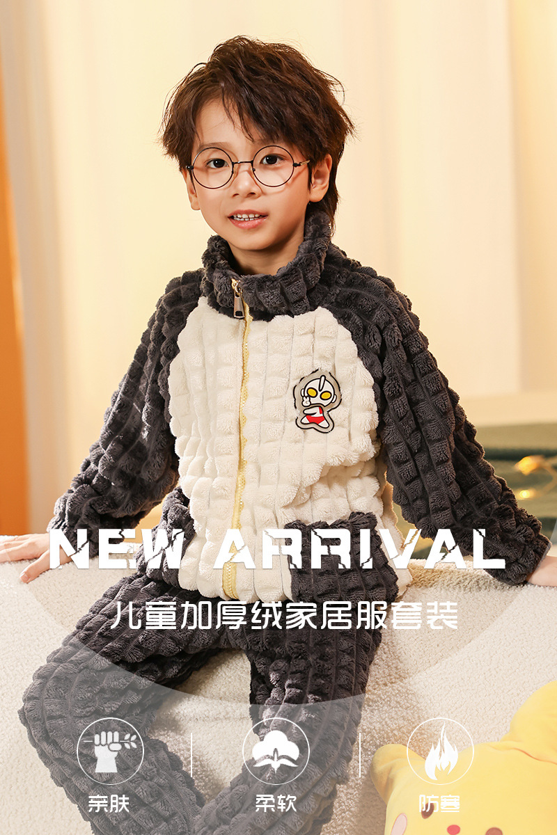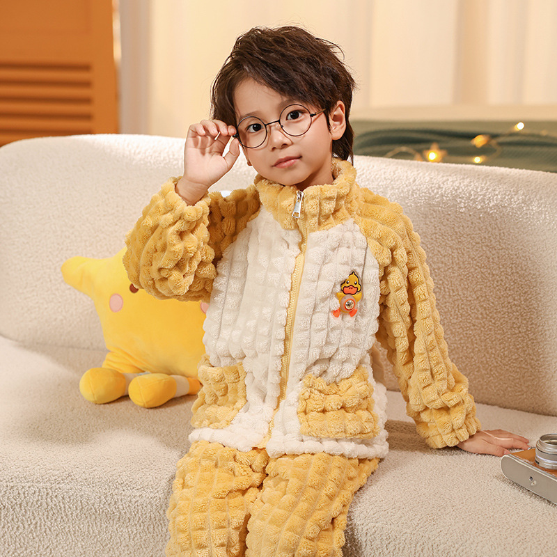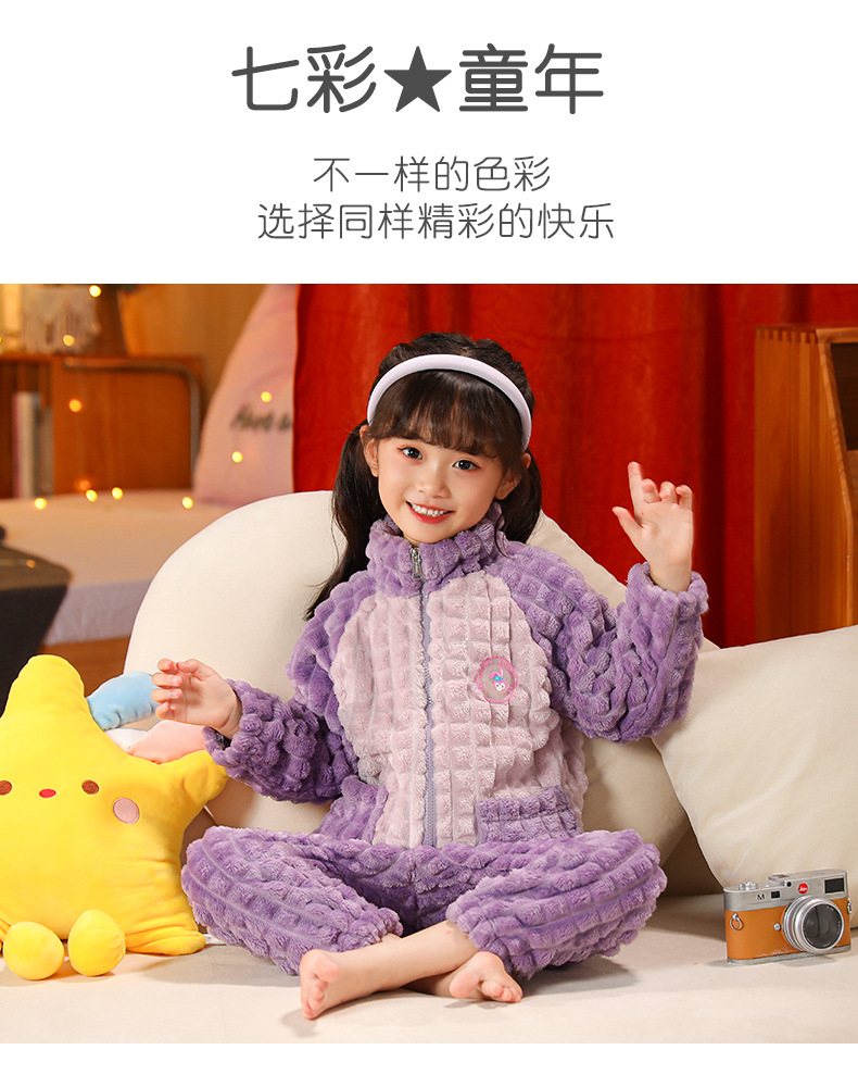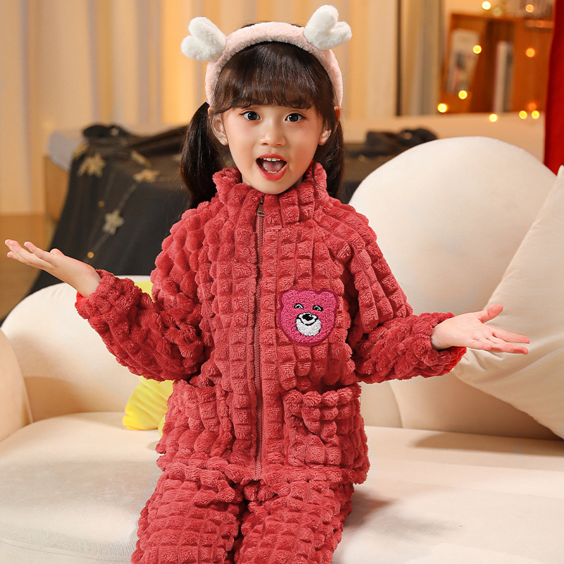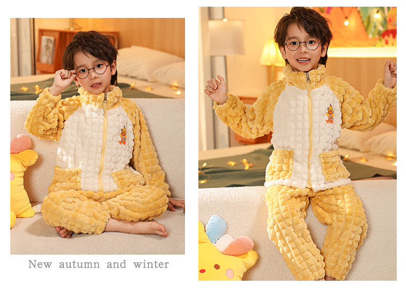 어린이 잠옷 가을과 겨울 두꺼운 플란넬 세트 소년과 소녀 지퍼 따뜻한 산호 양털 홈 옷스토어 가기
