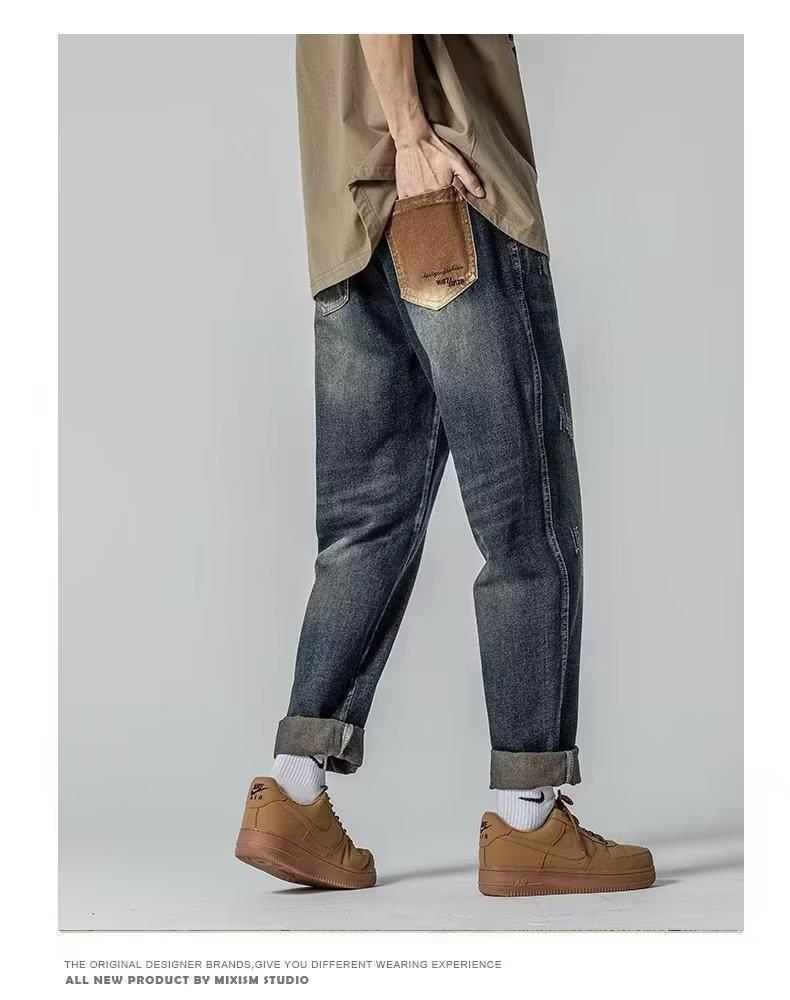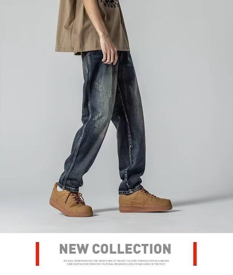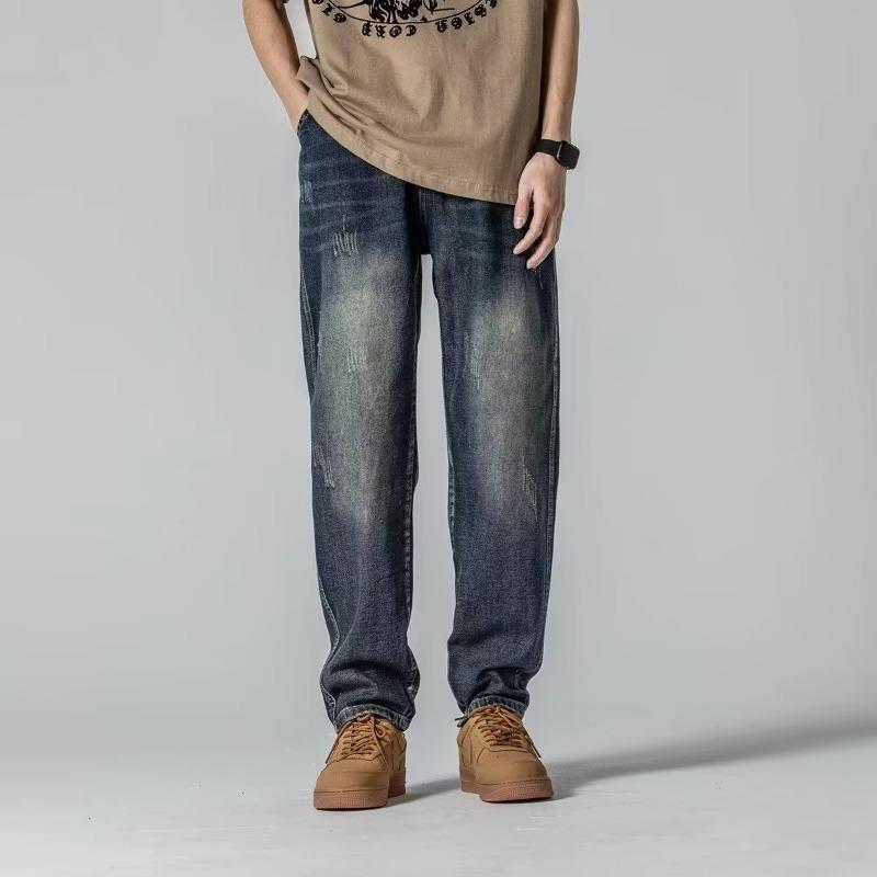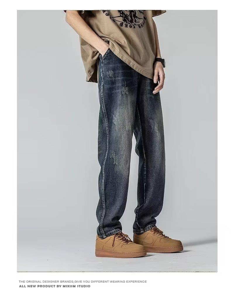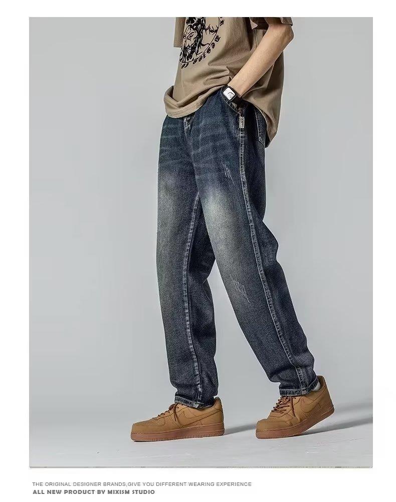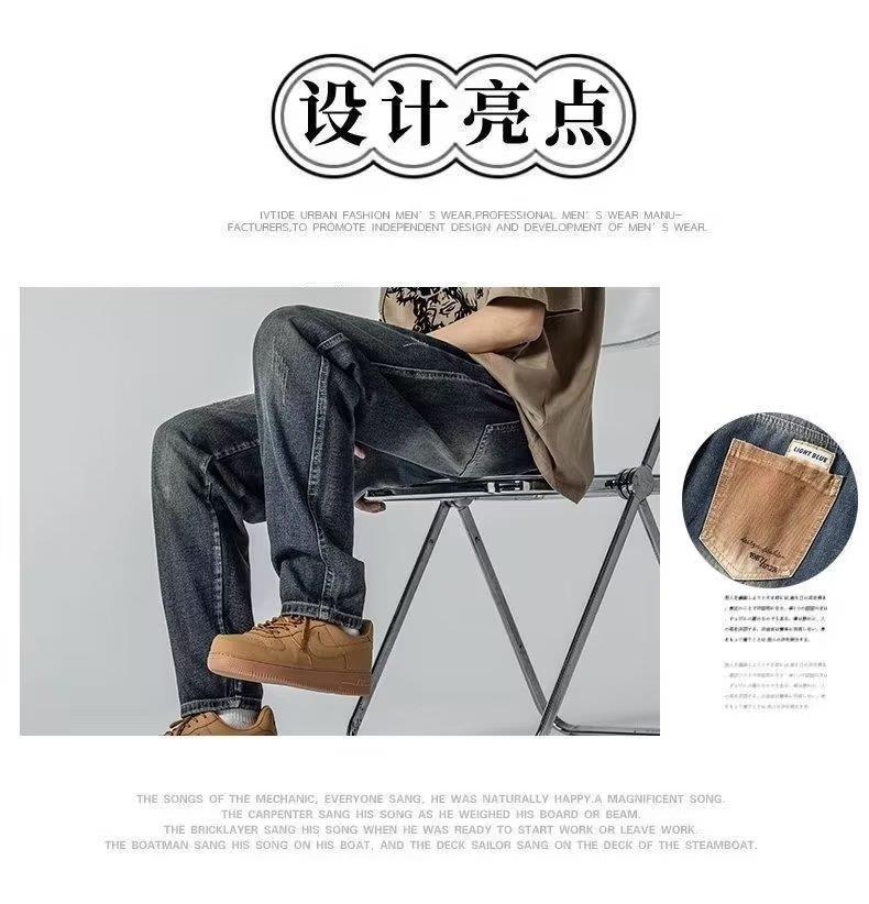 미국 가을 새로운 하이 스트리트 청바지 남성용 스트레이트 루즈 스키니 팬츠 트렌디 브랜드 올매치 와이드 레그 캐주얼 바지