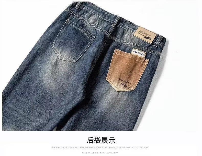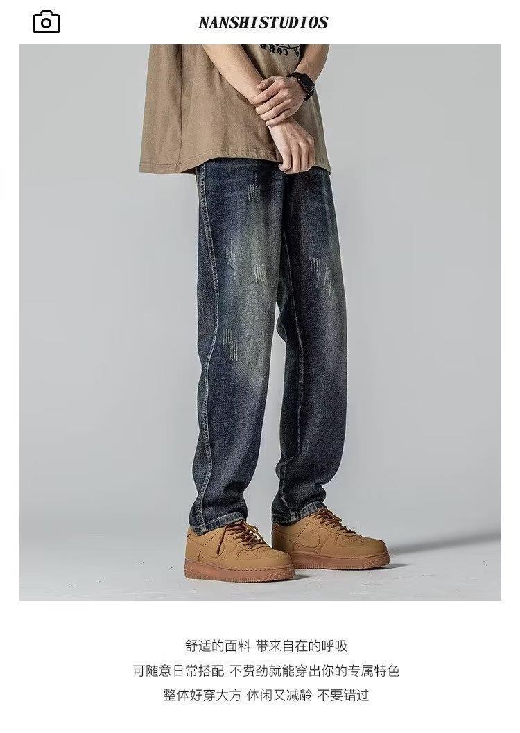 미국 가을 새로운 하이 스트리트 청바지 남성용 스트레이트 루즈 스키니 팬츠 트렌디 브랜드 올매치 와이드 레그 캐주얼 바지스토어 가기