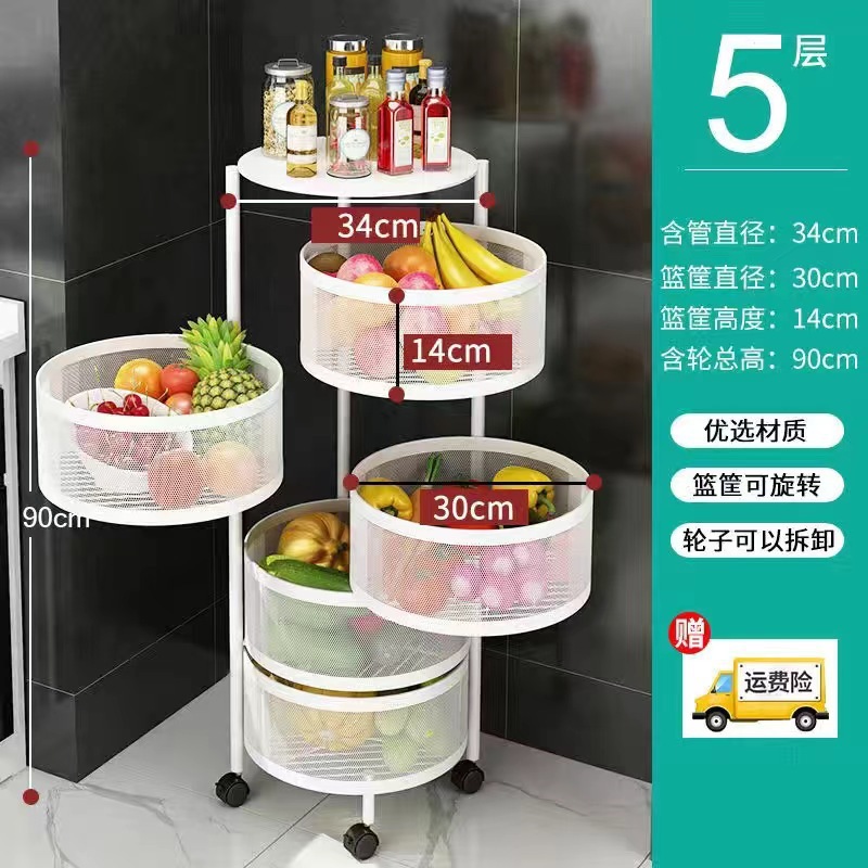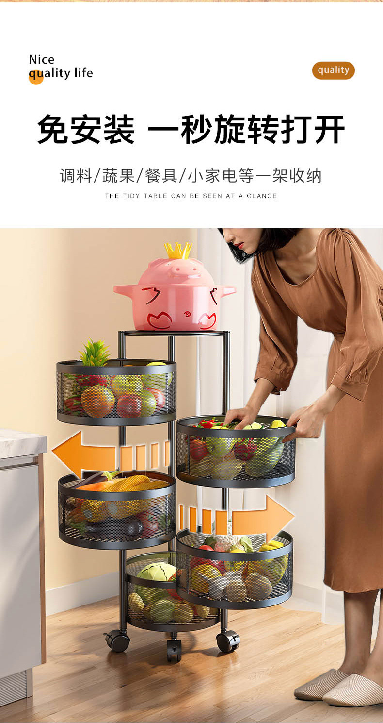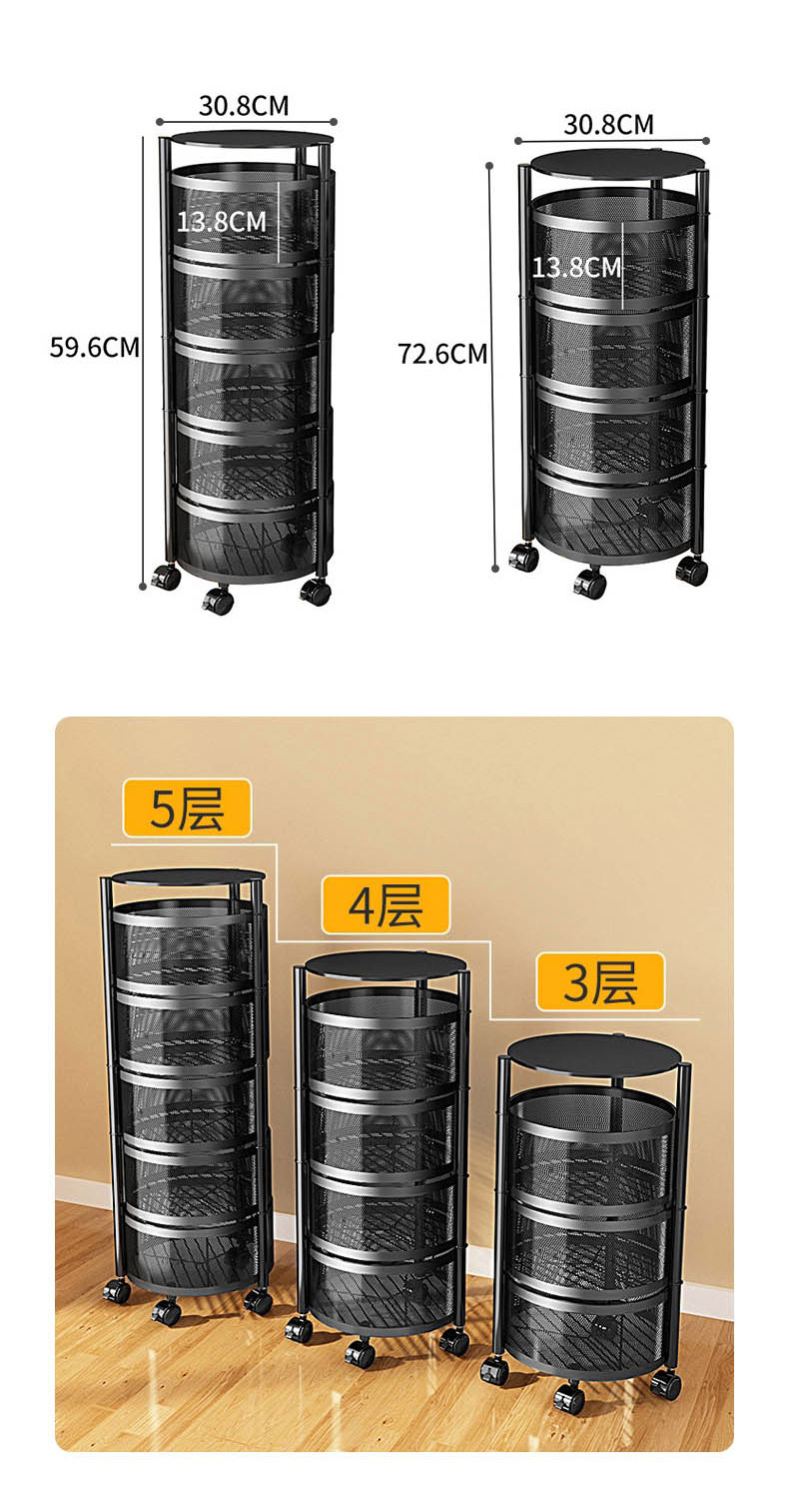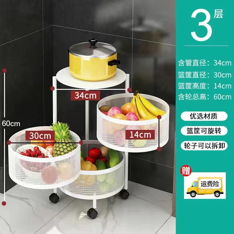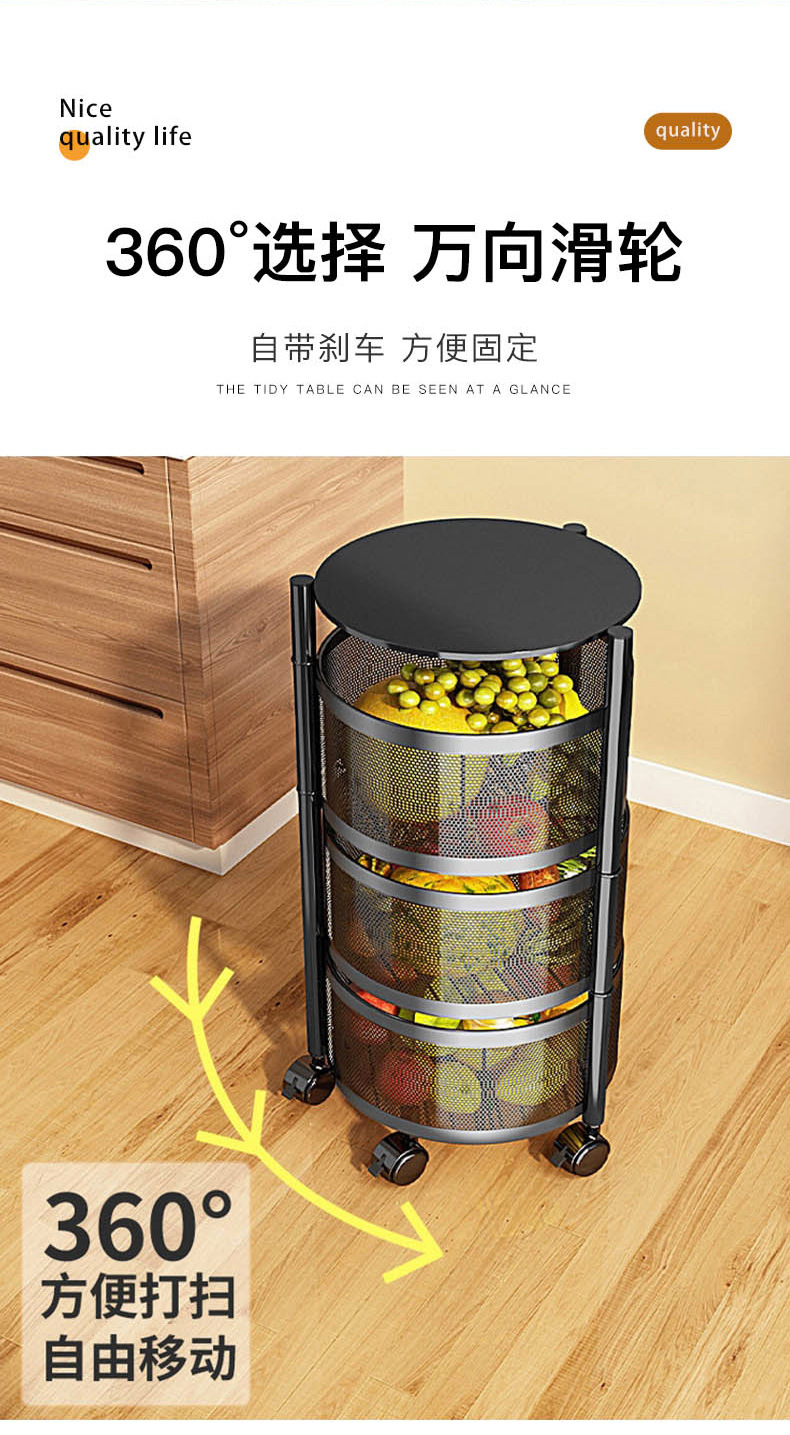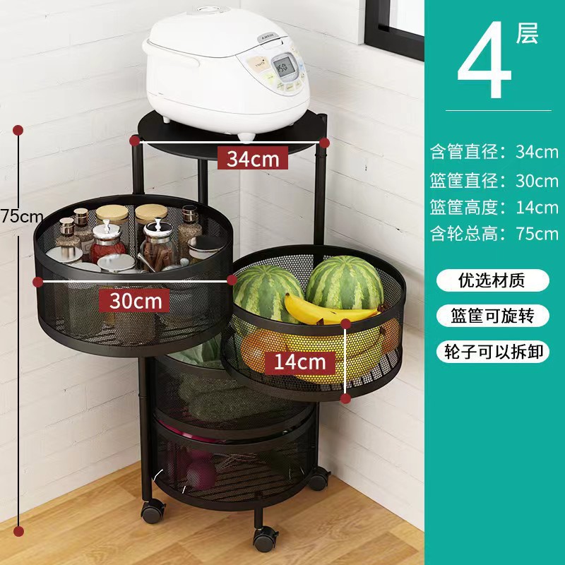 360 도 회전 야채 랙 주방 바닥 다층 가정용 원통형 과일 및 야채 바구니 보관 랙